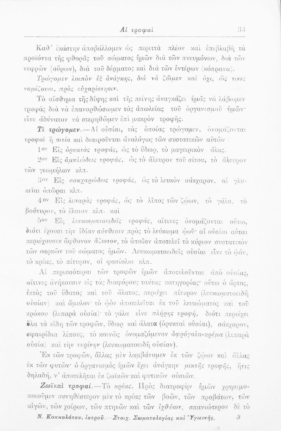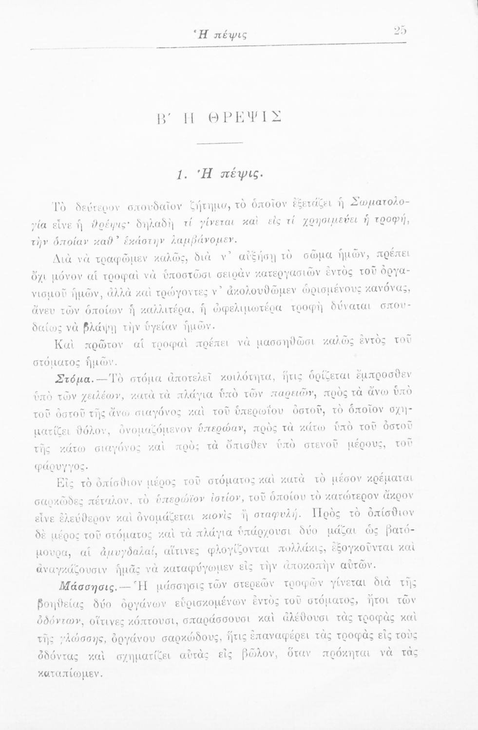 520 ## _aΣχολικό εγχειρίδιο για τις τάξεις του Δημοτικού και Ελληνικού σχολείου για το μάθημα της Υγιεινής. Το εγχειρίδιο περιλαμβάνει εισαγωγικά γενικές έννοιες και το αντικείμενο μελέτης της υγιεινής και της σωματολογίας. Ο κύριος κορμός του βιβλίου αναπτύσσει τις θεματικές της κίνησης των αρθρώσεων και των μυών, της διατροφής και της αναπνοής των οργανισμών και καταλήγει με το κεφάλαιο των αισθήσεων με τα αισθητήρια όργανα και το νευρικό σύστημα.