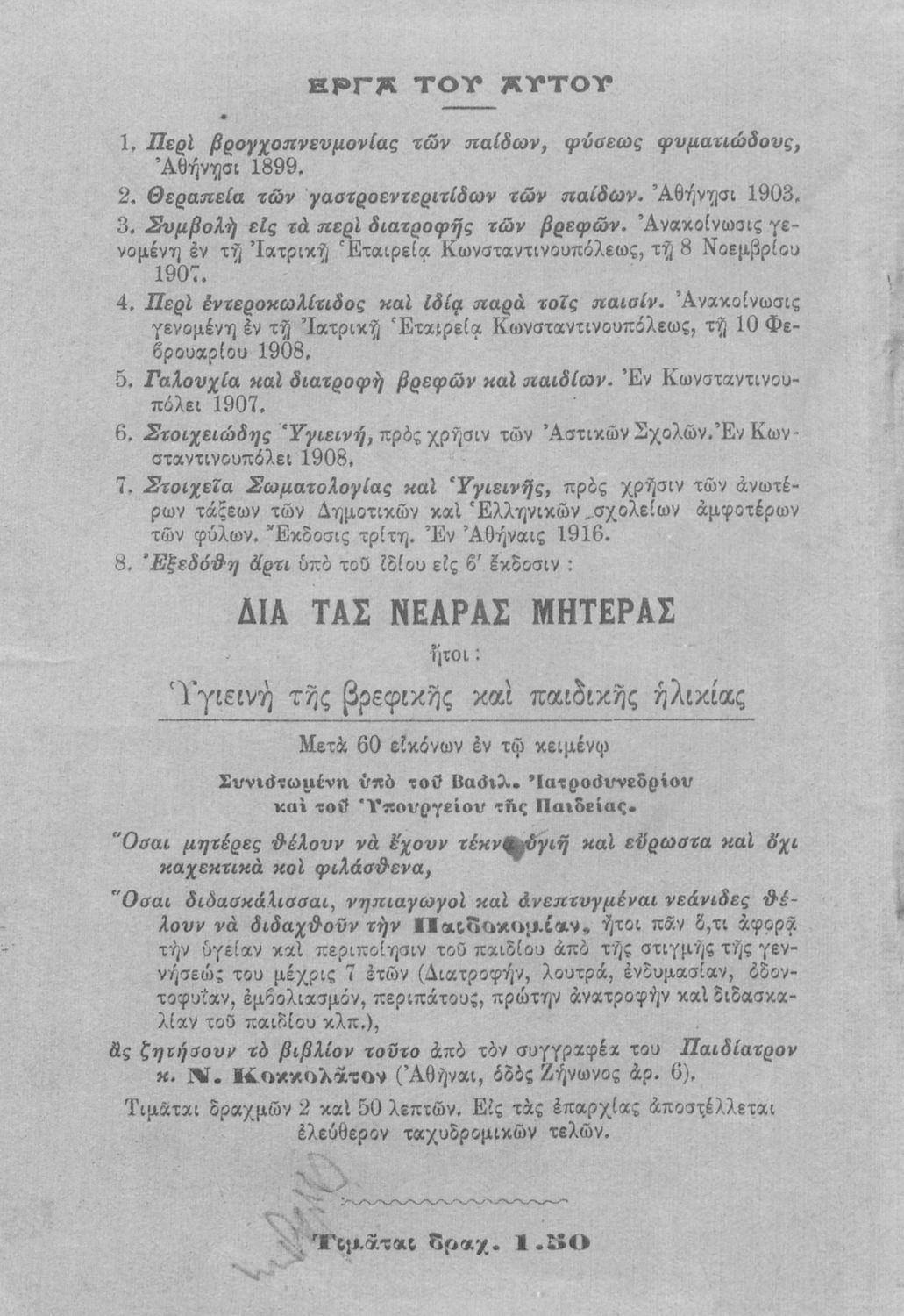 Εκδότης: Ιωάννης Ν. Σιδέρης Έτος έκδοσης: 1916 Τόπος έκδοσης: Αθήνα Έκδοση: 3η Υπουργική απόφαση / Σύμβαση: 31079/ 1-9-1916 Έτος έγκρισης: 1916 |