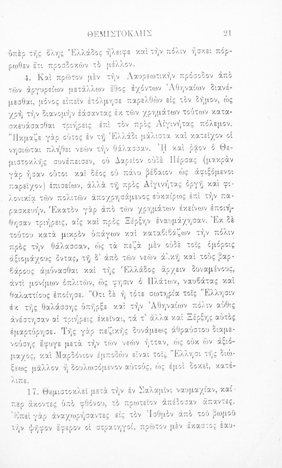 Σχολικό εγχειρίδιο Αρχαίων Ελληνικών Α΄ Γυμνασίου που περιλαμβάνει το έργο του Πλούταρχου Θεμιστοκλής, εισαγωγή στη ζωή και το έργο του, ερμηνευτικά και πραγματολογικά σχόλια, και αλφαβητικό πίνακα των ...