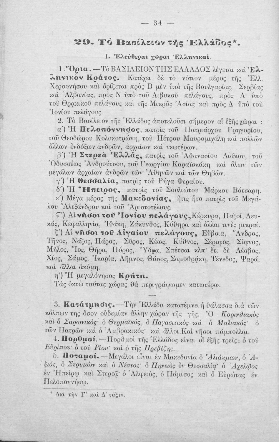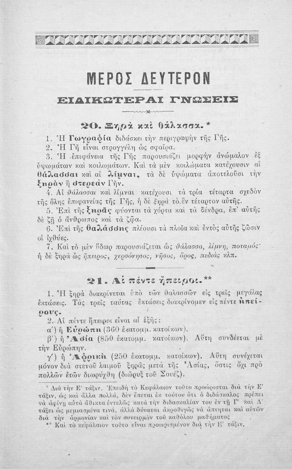 Βαθμίδα εκπαίδευσης: Πρωτοβάθμια Τάξη: Γ' Δημοτικού / Δ' Δημοτικού / Ε' Δημοτικού Μάθημα: Γεωγραφία Γλώσσα: Καθαρεύουσα Παρουσίαση περιεχομένου: Πρόκειται για μαθητικό βοήθημα, με πλούσια εικονογράφηση, ενισχυτικό της διδασκαλίας και κατανόησης του μαθήματος της γεωγραφίας της Ελλάδας στη Γ΄, Δ΄ και Ε΄ Δημοτικού. Φέρει λίγες προσωπικές σημειώσεις του μαθητή και σημειώνεται πως οι τελευταίες σελίδες εμφανίζονται μερικώς σχισμένες. |