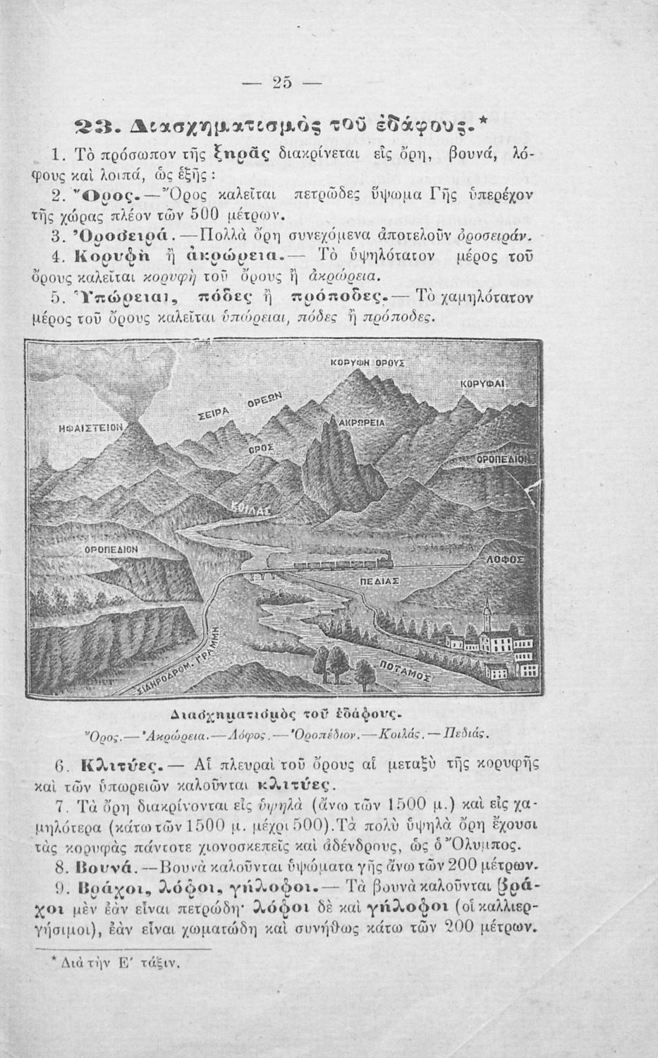 Πρόκειται για μαθητικό βοήθημα, με πλούσια εικονογράφηση, ενισχυτικό της διδασκαλίας και κατανόησης του μαθήματος της γεωγραφίας της Ελλάδας στη Γ΄, Δ΄ και Ε΄ Δημοτικού. Φέρει λίγες προσωπικές σημειώσεις του μαθητή και σημειώνεται πως οι τελευταίες σελίδες εμφανίζονται μερικώς σχισμένες.