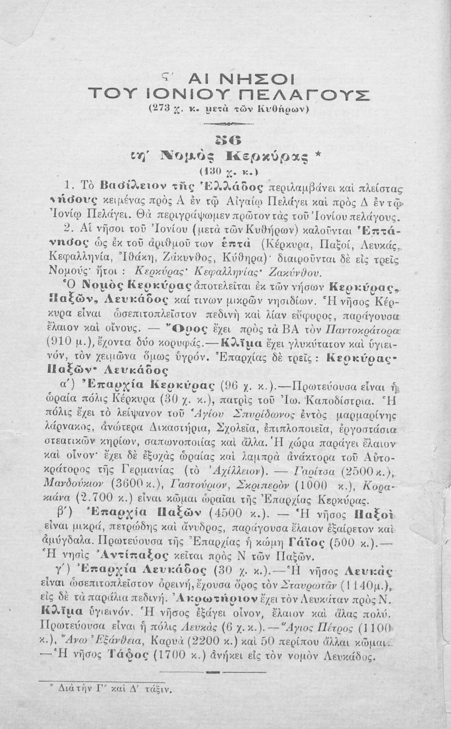 Βαθμίδα εκπαίδευσης: Πρωτοβάθμια Τάξη: Γ' Δημοτικού / Δ' Δημοτικού / Ε' Δημοτικού Μάθημα: Γεωγραφία Γλώσσα: Καθαρεύουσα Παρουσίαση περιεχομένου: Πρόκειται για μαθητικό βοήθημα, με πλούσια εικονογράφηση, ενισχυτικό της διδασκαλίας και κατανόησης του μαθήματος της γεωγραφίας της Ελλάδας στη Γ΄, Δ΄ και Ε΄ Δημοτικού. Φέρει λίγες προσωπικές σημειώσεις του μαθητή και σημειώνεται πως οι τελευταίες σελίδες εμφανίζονται μερικώς σχισμένες. |