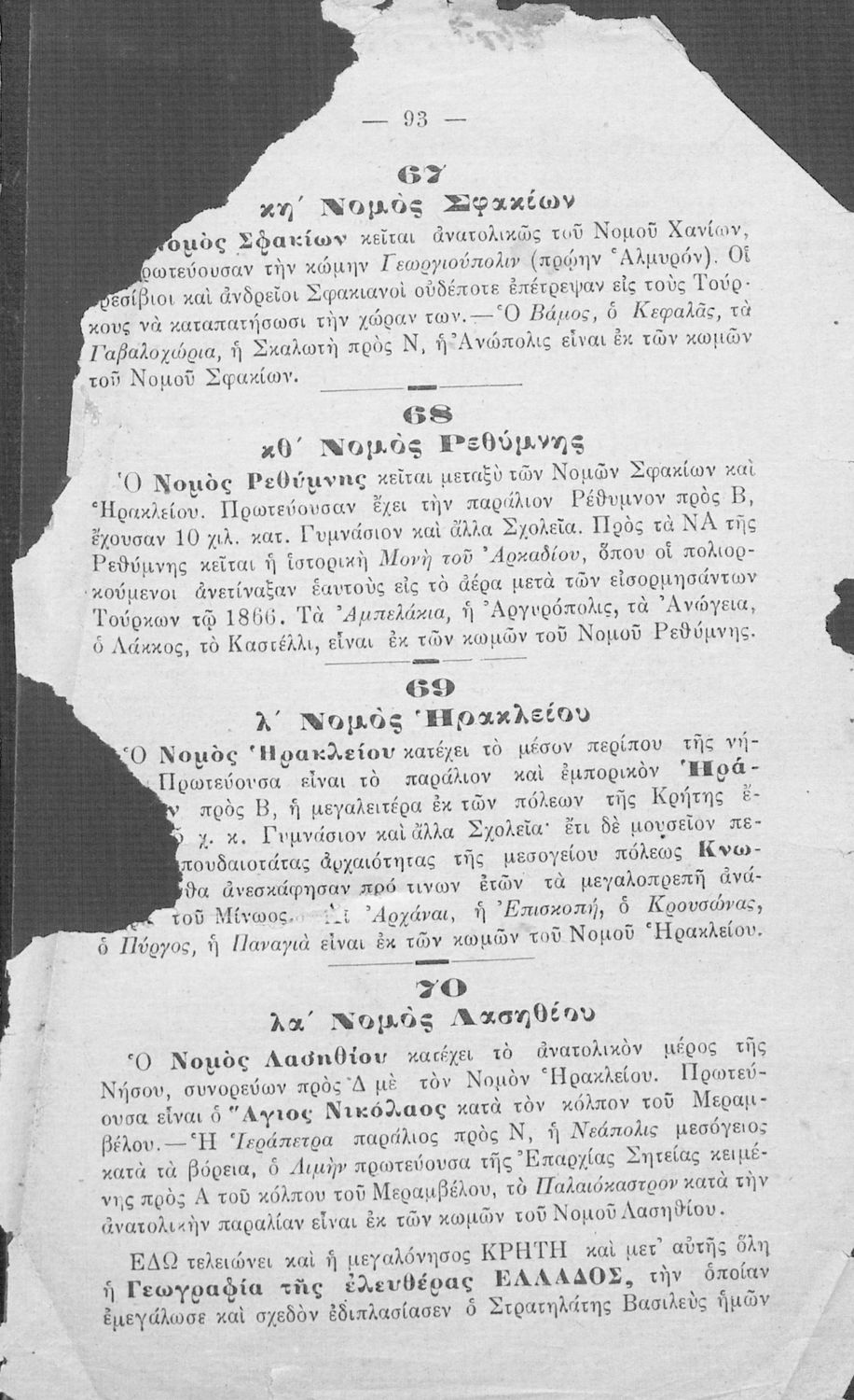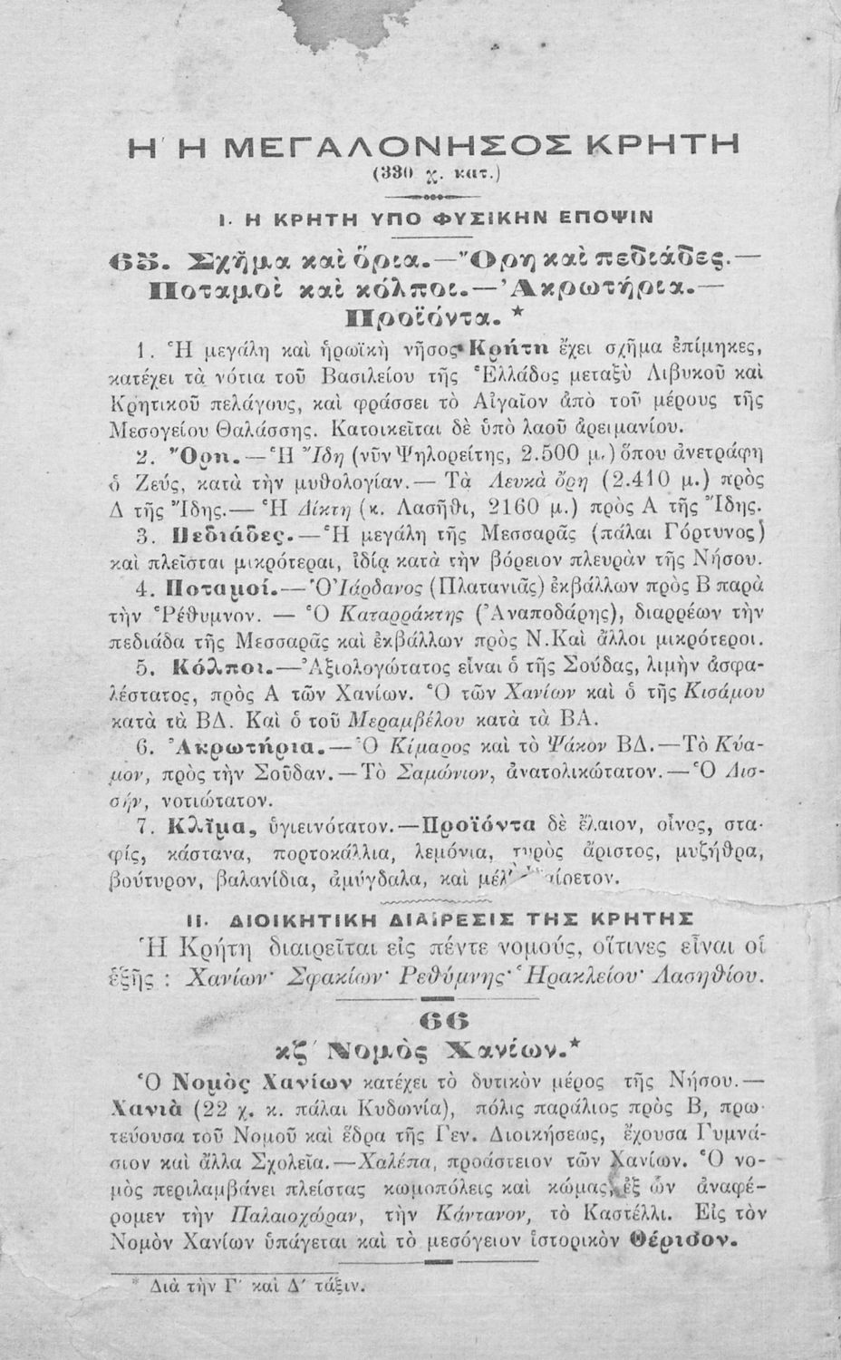 Πρόκειται για μαθητικό βοήθημα, με πλούσια εικονογράφηση, ενισχυτικό της διδασκαλίας και κατανόησης του μαθήματος της γεωγραφίας της Ελλάδας στη Γ΄, Δ΄ και Ε΄ Δημοτικού. Φέρει λίγες προσωπικές σημειώσεις του μαθητή και σημειώνεται πως οι τελευταίες σελίδες εμφανίζονται μερικώς σχισμένες.