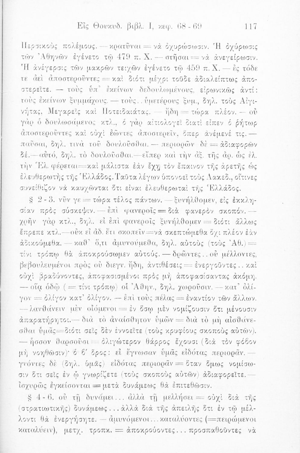 Σχολικό εγχειρίδιο Αρχαίων Ελληνικών Β΄ και Γ΄ Γυμνασίου που περιλαμβάνει εισαγωγή στη ζωή και το έργο του Θουκυδίδη, αποσπάσματα από το πρώτο βιβλίο της Ιστορίας, και ερμηνευτικά, πραγματολογικά και γλωσσικά ...