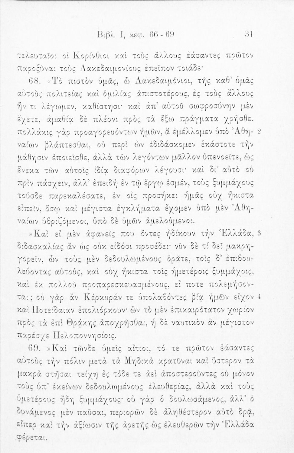 Σχολικό εγχειρίδιο Αρχαίων Ελληνικών Β΄ και Γ΄ Γυμνασίου που περιλαμβάνει εισαγωγή στη ζωή και το έργο του Θουκυδίδη, αποσπάσματα από το πρώτο βιβλίο της Ιστορίας, και ερμηνευτικά, πραγματολογικά και γλωσσικά σχόλια.