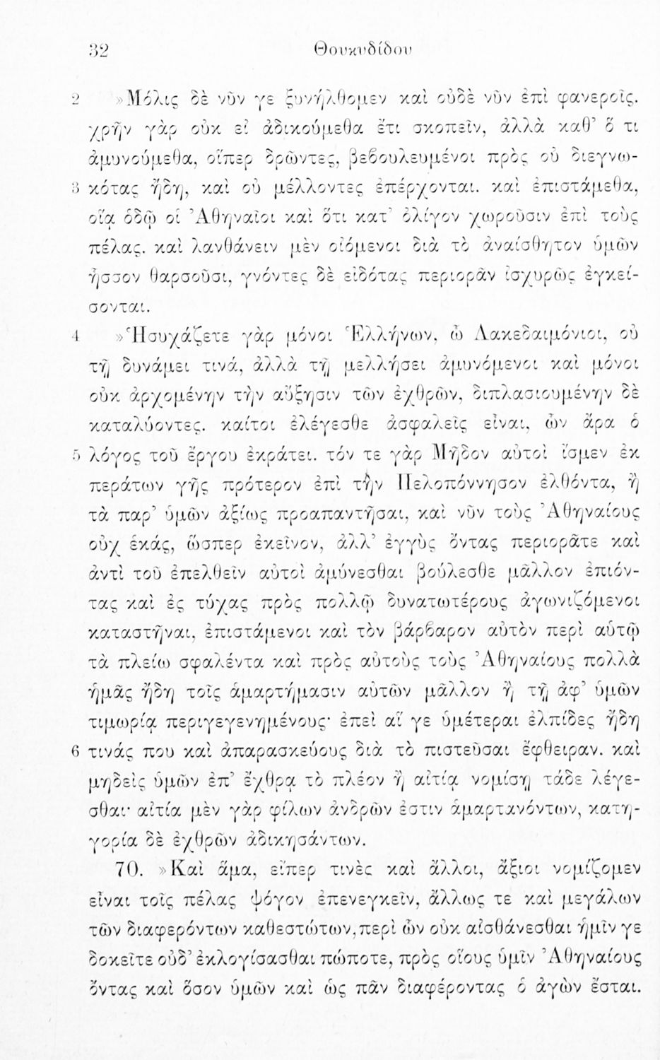 Σχολικό εγχειρίδιο Αρχαίων Ελληνικών Δ΄, Ε΄ και ΣΤ΄ Γυμνασίου που περιέχει αποσπάσματα από το έργο του Θουκυδίδη Ιστορία, ερμηνευτικά και πραγματολογικά σχόλια, και γραμματικές παρατηρήσεις.