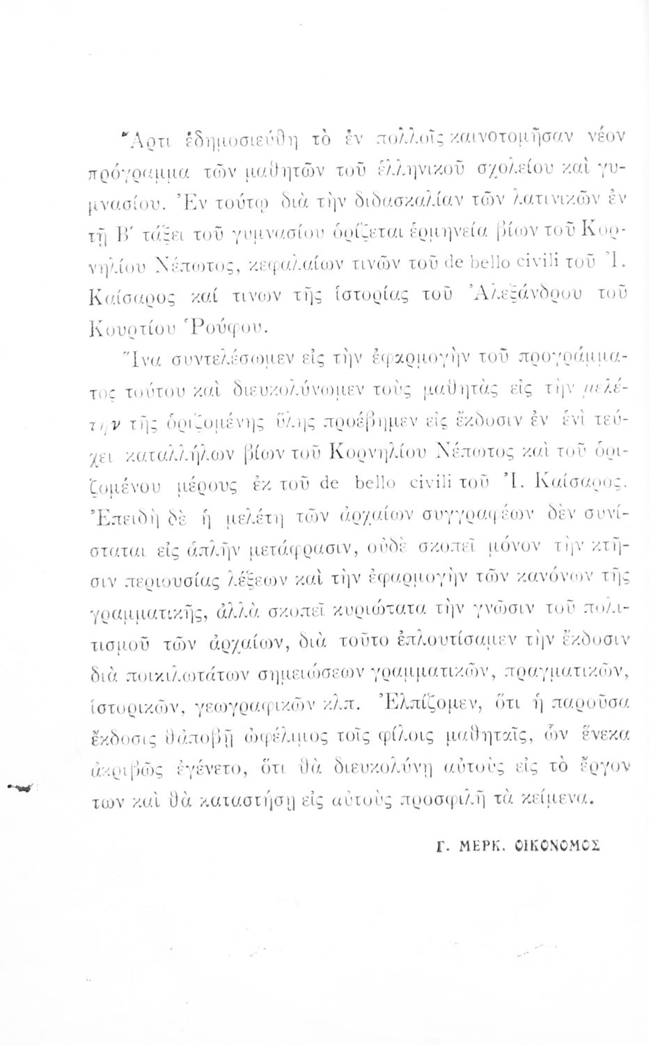 LDR 01702 2200193 4500 035 ## _a02-02096 040 ## _aΕλληνικό Λογοτεχνικό και Ιστορικό Αρχείο 041 ## _ael 100 ## _aΚορνήλιος Νέπως (Cornelius Nepos) _aΓεώργιος Μερκ. Οικονόμου (σχόλια) 110 ## _a1915 ΝΕΠ ΒΙΟ 245 0# _aΚορνηλίου Νέπωτος Βίοι επιφανών ανδρών, Γ. Ιουλίου Καίσαρος Απομνημονεύματα περί του εμφυλίου πολέμου (Βιβλ. ΙΙΙ, Κεφ. 82-104), Κ. Κούρτιου Ρούφου Περί των κατορθωμάτων του Μ. Αλεξάνδρου μετά πλείστων σημειώσεων, γραμματικών, πραγματικών, ιστορικών, γεωγραφικών κ. λ. π. προς χρήσιν των μαθητών της Β΄ τάξεως του Γυμνασίου κατά το τελευταίο πρόγραμμα του Υπουργείου Παιδείας 260 ## _aΑθήνα _bΜιχαήλ Μαντζαβελάκης _c1915 300 ## _a81 520 ## _aΜαθητικό βοήθημα Λατινικών Β΄ Γυμνασίου που περιλαμβάνει σύντονο βιογραφικό σημείωμα του Νέπωτα, αποσπάσματα από το έργο του Βίοι Επιφανών Ανδρών, και ερμηνευτικές σημειώσεις. 521 ## _aΒ' Γυμνασίου 522 ## _aΕλλάδα 546 ## _aΚαθαρεύουσα 563 ## _aΣκληρό Εξώφυλλο 650 #4 _aΑγησίλαος _aΑννίβας _aΑττικός _aΚάτων _aΜιλτιάδης