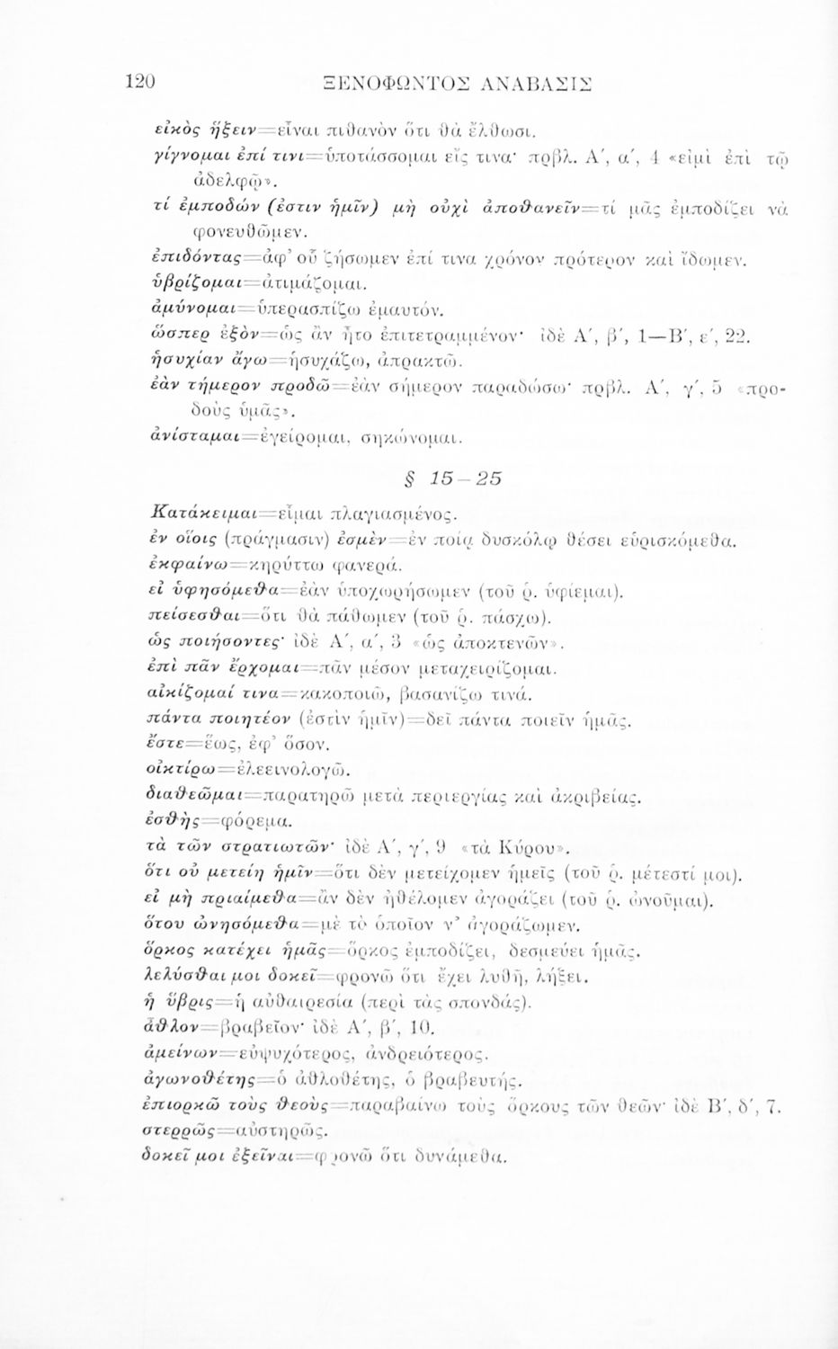 Σχολικό εγχειρίδιο Αρχαίων Ελληνικών για τα Ελληνικά Σχολεία και Παρθεναγωγεία που περιλαμβάνει αποσπάσματα από το έργο του Ξενοφώντα Κύρου Ανάβασις, και λεξικογραφικές παρατηρήσεις.