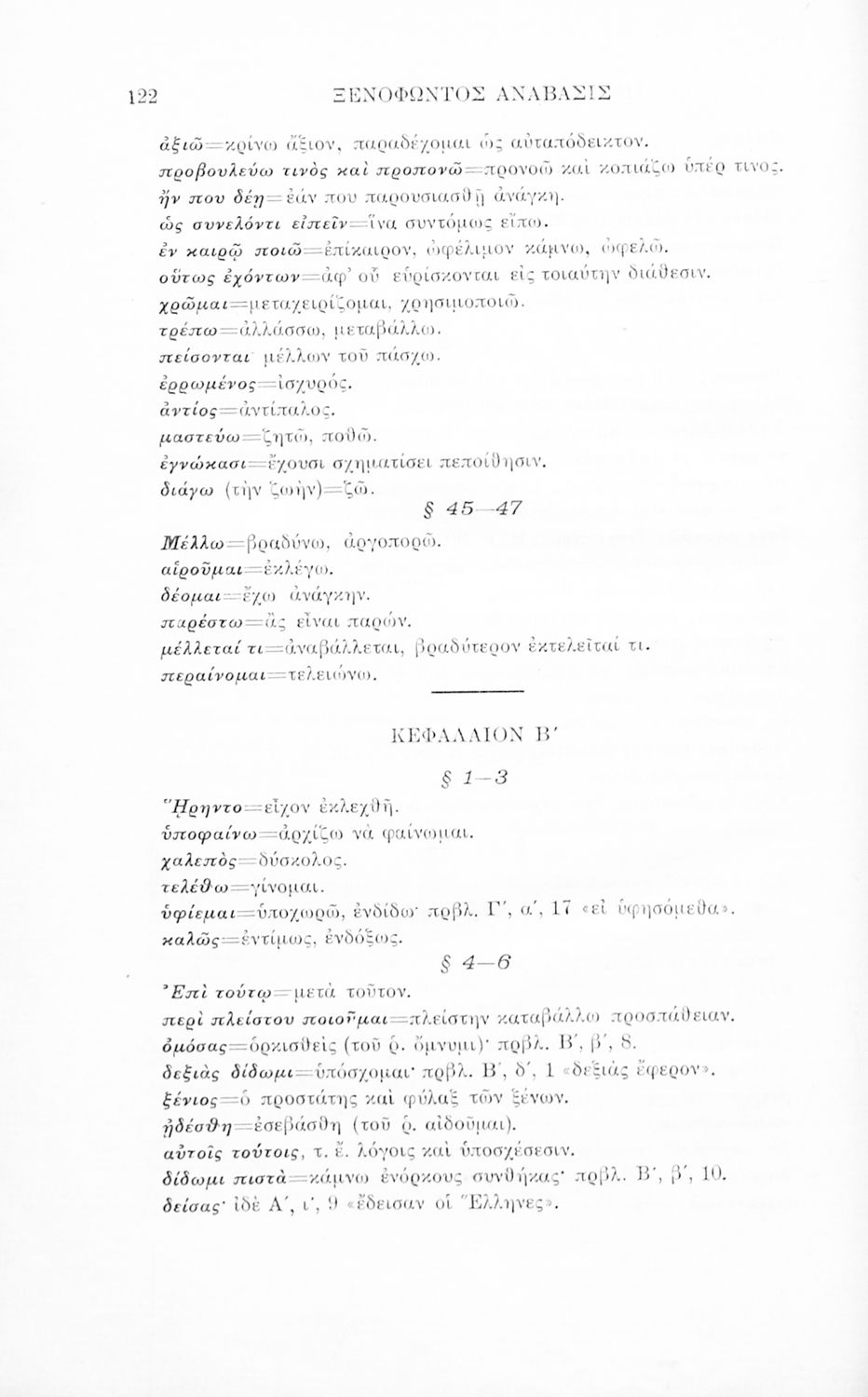 Σχολικό εγχειρίδιο Αρχαίων Ελληνικών Β' Ελληνικού Σχολείου που περιλαμβάνει αποσπάσματα από το έργο του Ξενοφώντα Κύρου Ανάβασις, ερμηνευτικές, γλωσσικές, γραμματικές και συντακτικές παρατηρήσεις, και ασκήσεις