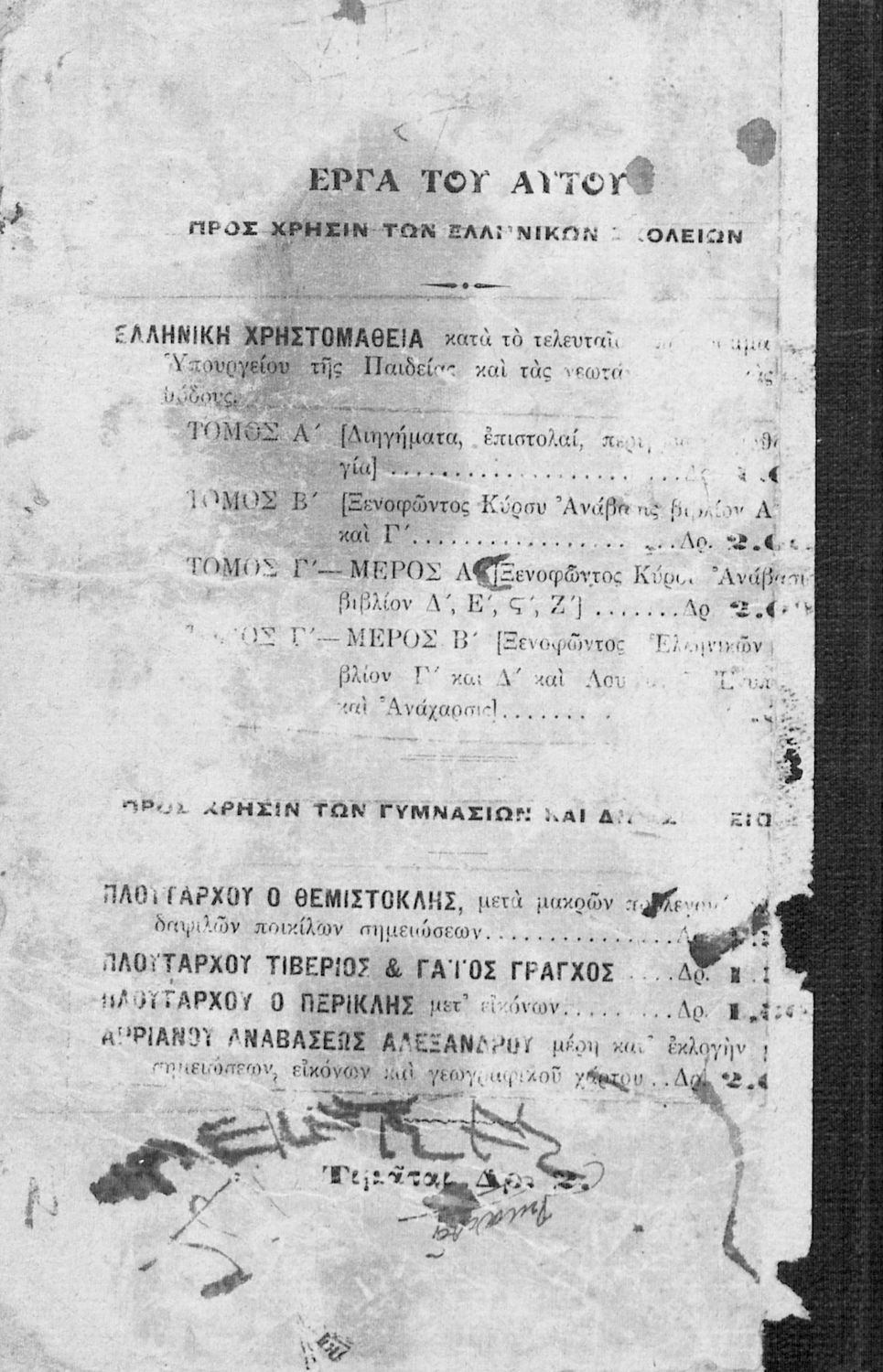Ελληνική χρηστομάθεια κατά τας νεωτάτας διδακτικάς μεθόδους τόμος Β΄ Ξενοφώντος Κύρου Ανάβασις βιβλίον Α΄, Β΄, Γ΄ κατά το νέον πρόγραμμα του Υπουργείου της Παιδείας