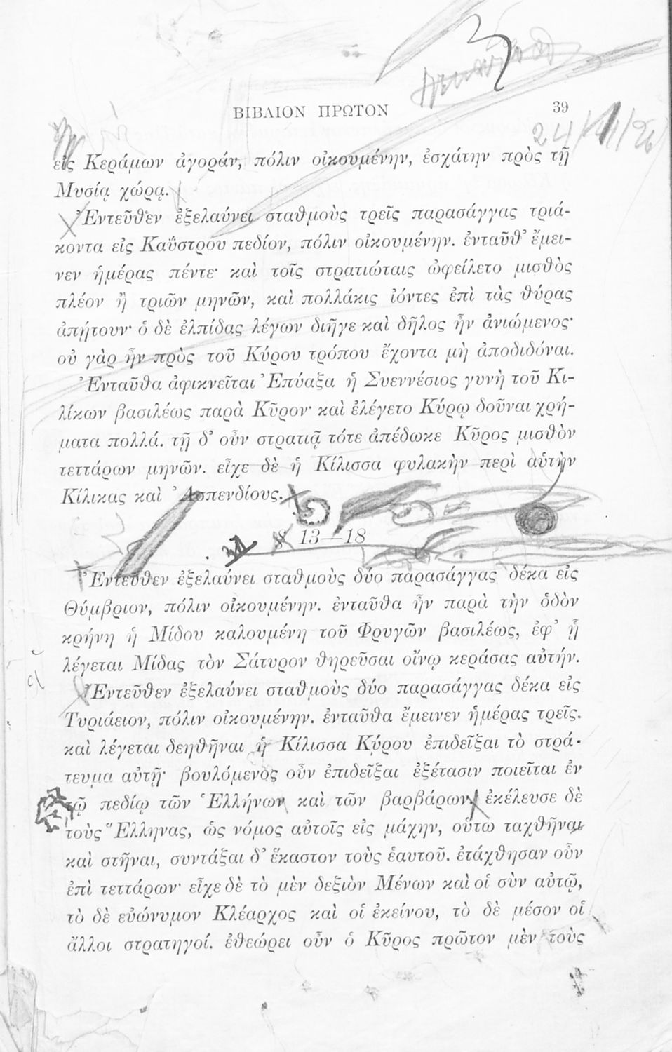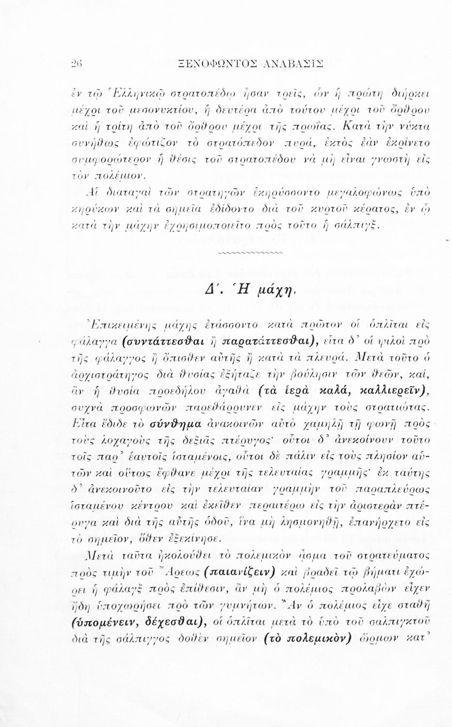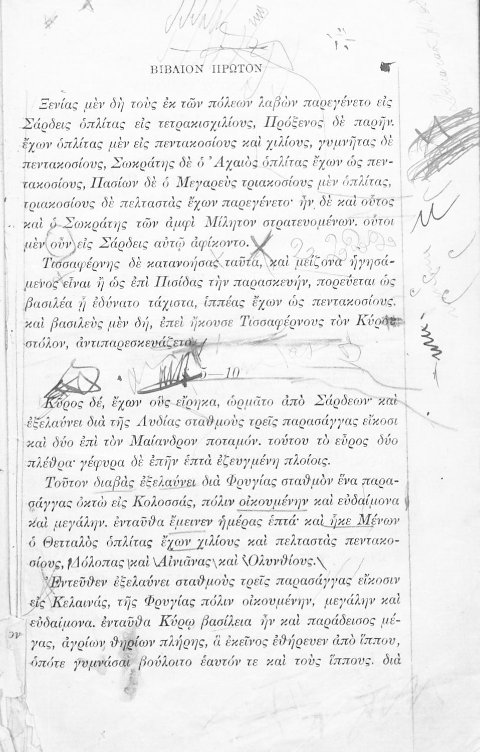 Σχολικό εγχειρίδιο Αρχαίων Ελληνικών για τα Ελληνικά Σχολεία και Παρθεναγωγεία που περιλαμβάνει αποσπάσματα από το έργο του Ξενοφώντα Κύρου Ανάβασις, και λεξικογραφικές παρατηρήσεις.