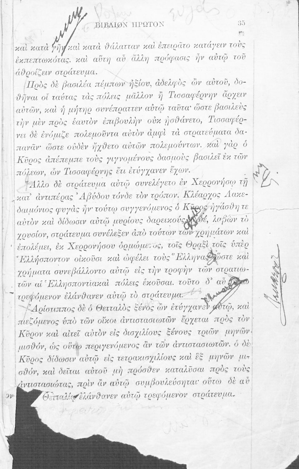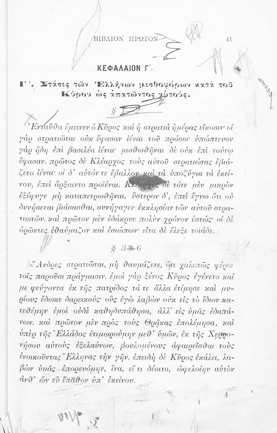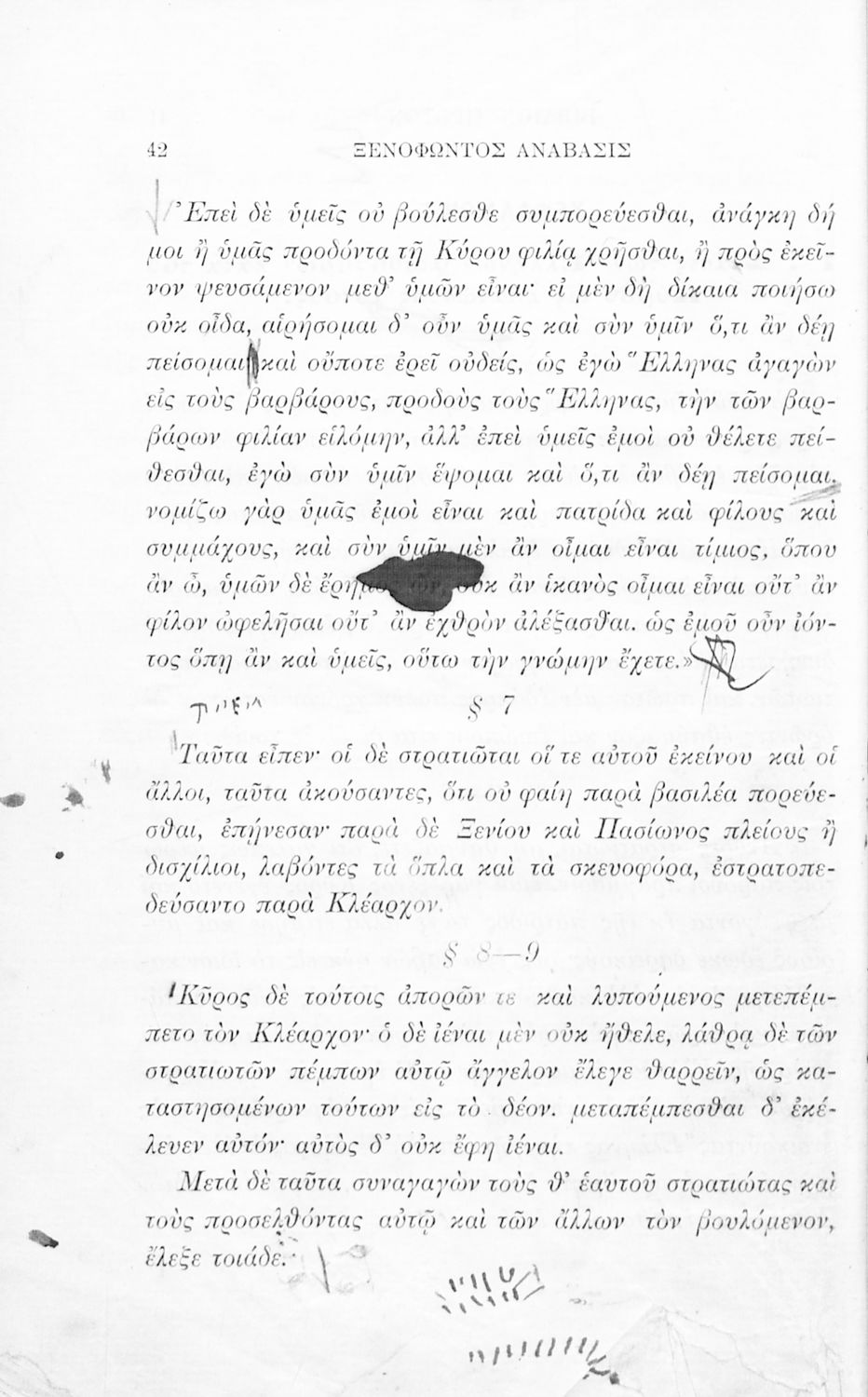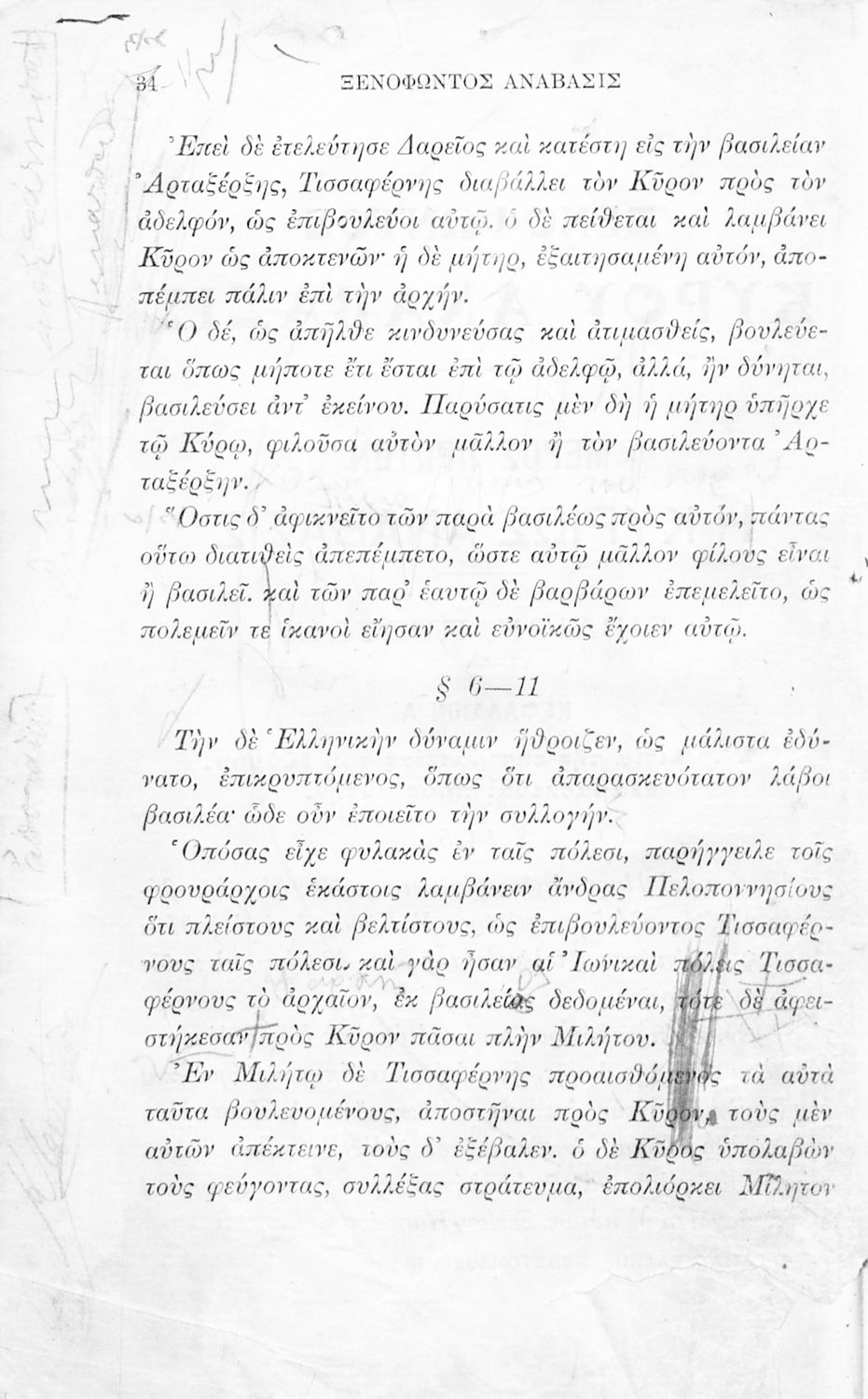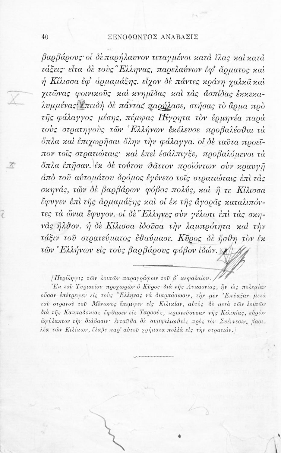 Σχολικό εγχειρίδιο Αρχαίων Ελληνικών που περιλαμβάνει αποσπάσματα από το έργο του Ξενοφώντα Κύρου Ανάβασις, εισαγωγικά σχόλια για τη ζωή και το έργο του, ερμηνευτικές και γραμματικές παρατηρήσεις, λεξικολογικά