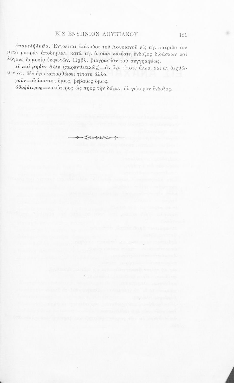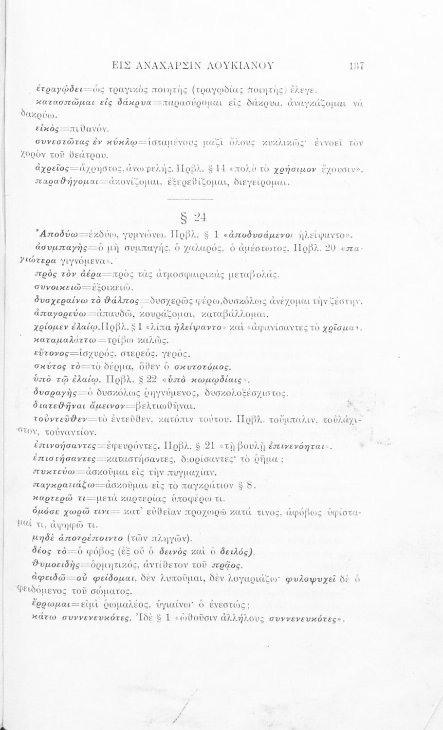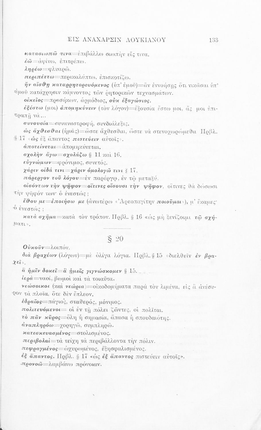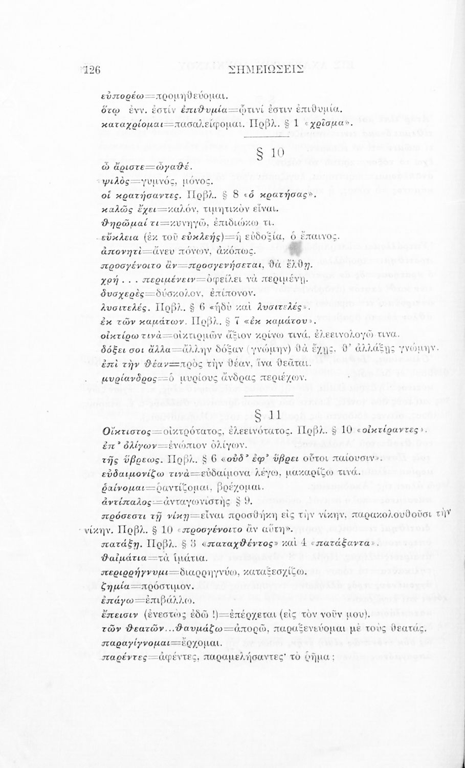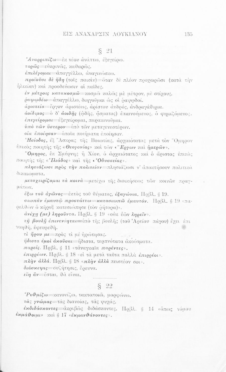 Σχολικό εγχειρίδιο Αρχαίων Ελληνικών Γ' Ελληνικού Σχολείου που περιλαμβάνει αποσπάσματα από το έργο του Ξενοφώντα Ελληνικά και τα έργα του Λουκιανού Ενύπνιον και Ανάχαρσις, βιογραφικά σημειώματα των συγγραφέων, ερμηνευτικές και πραγματολογικές σημειώσεις.