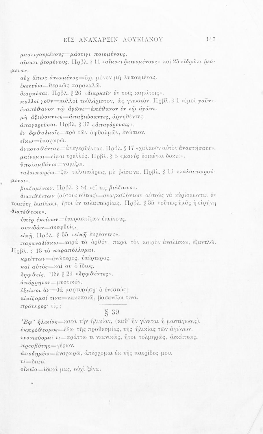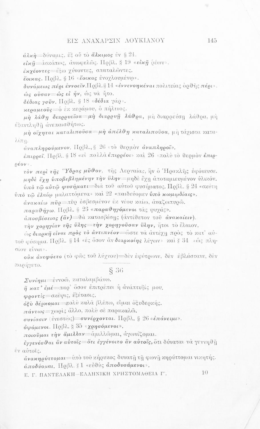 Σχολικό εγχειρίδιο Αρχαίων Ελληνικών Γ' Ελληνικού Σχολείου που περιλαμβάνει αποσπάσματα από το έργο του Ξενοφώντα Ελληνικά και τα έργα του Λουκιανού Ενύπνιον και Ανάχαρσις, βιογραφικά σημειώματα των συγγραφέων, ερμηνευτικές και πραγματολογικές σημειώσεις.