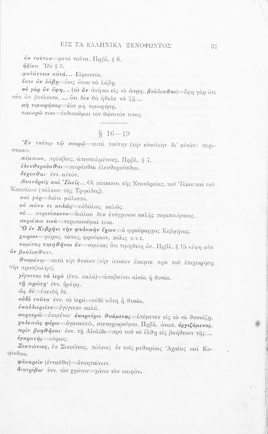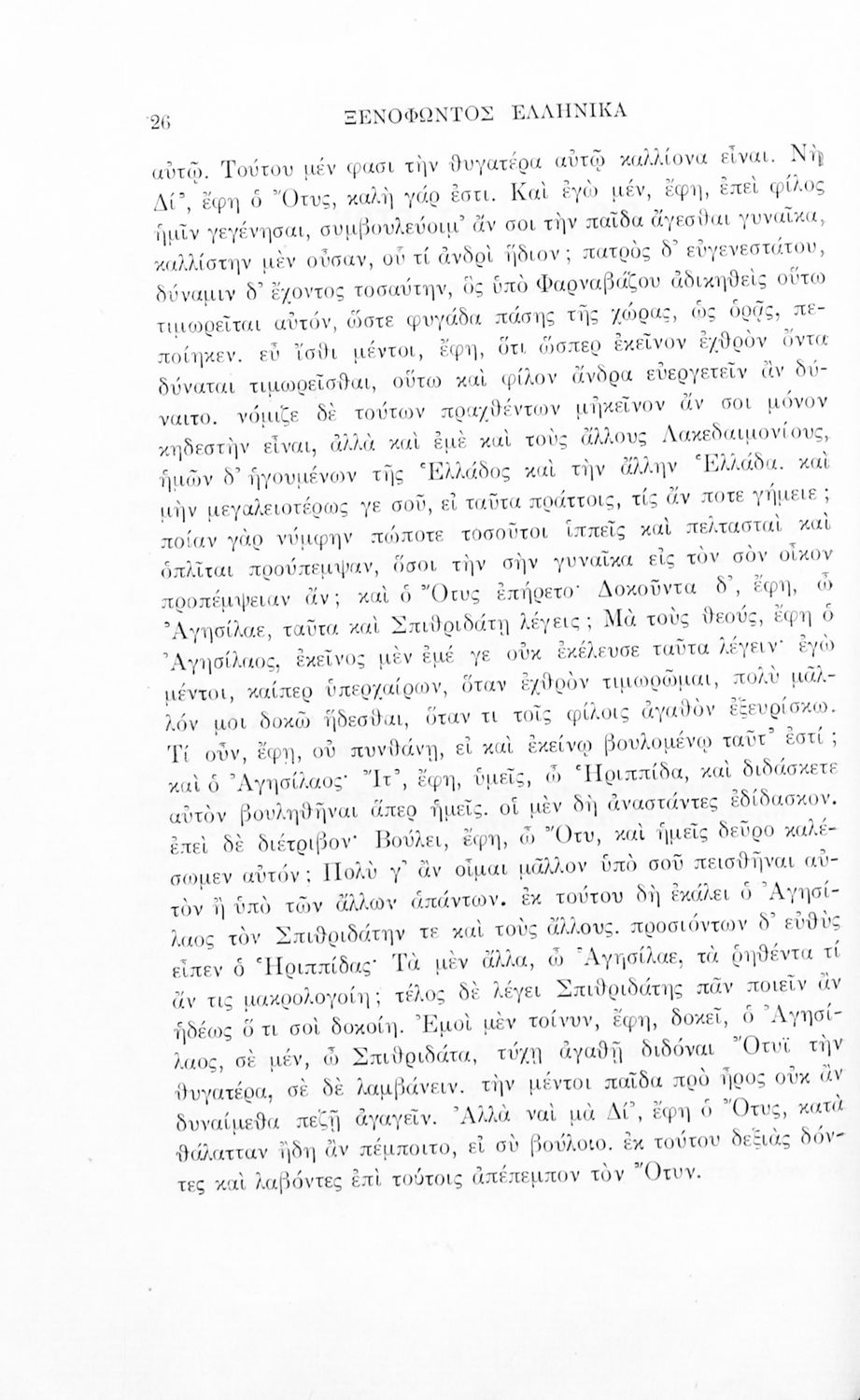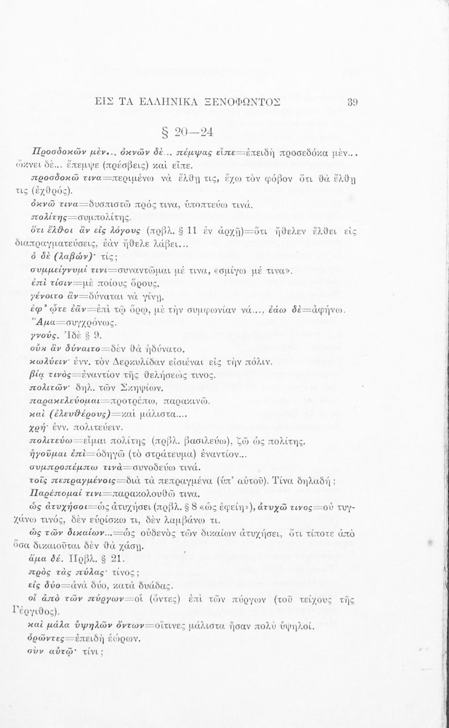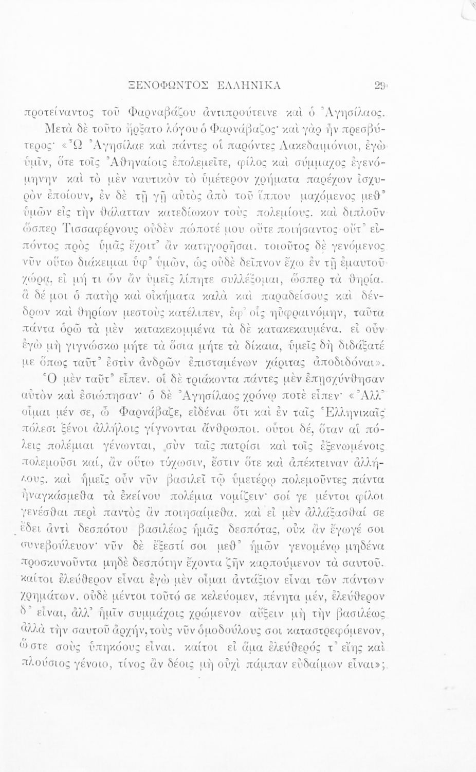 Σχολικό εγχειρίδιο Αρχαίων Ελληνικών Γ' Ελληνικού Σχολείου που περιλαμβάνει αποσπάσματα από το έργο του Ξενοφώντα Ελληνικά και τα έργα του Λουκιανού Ενύπνιον και Ανάχαρσις, βιογραφικά σημειώματα των συγγραφέων, ερμηνευτικές και πραγματολογικές σημειώσεις.