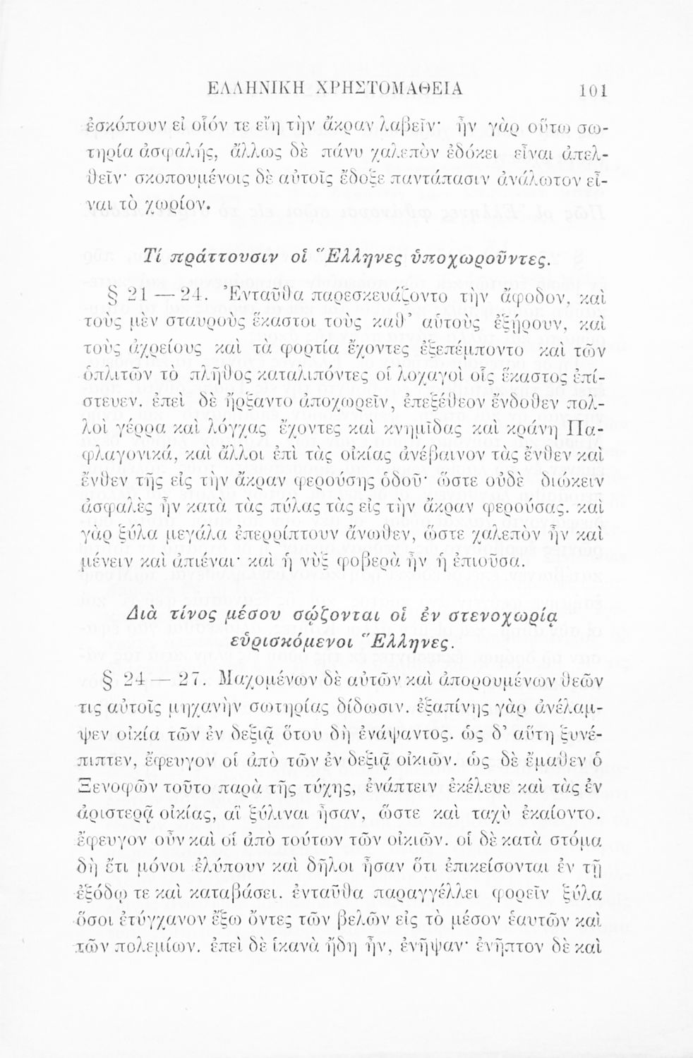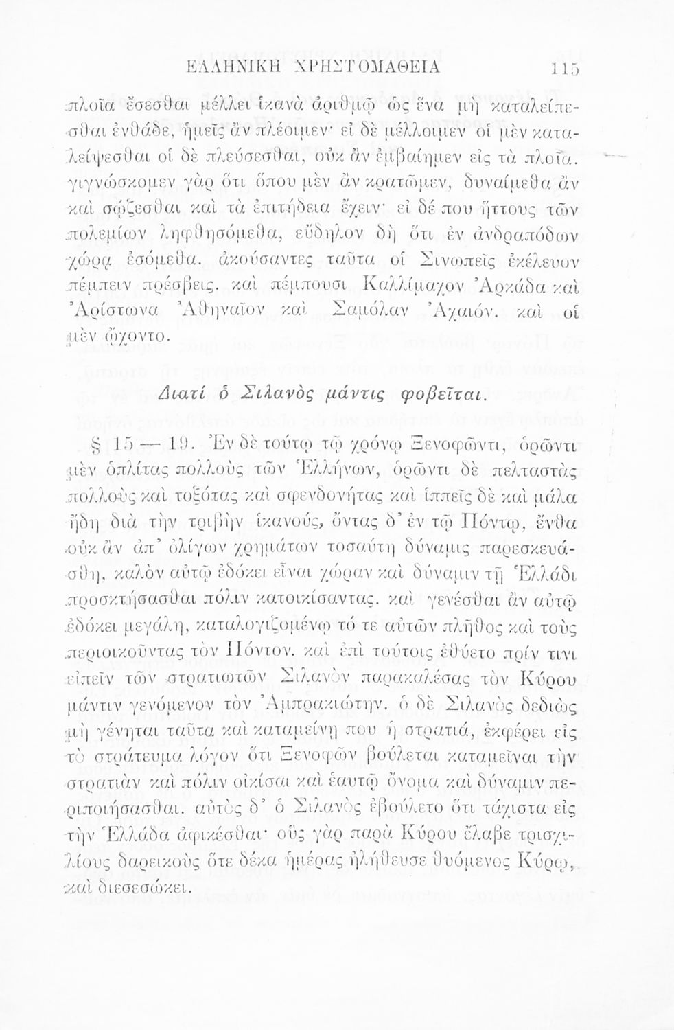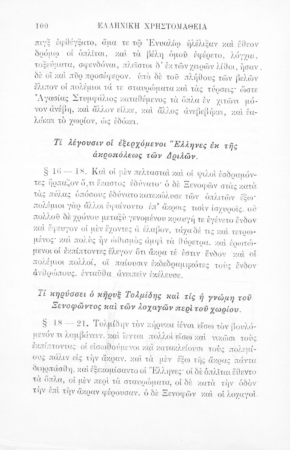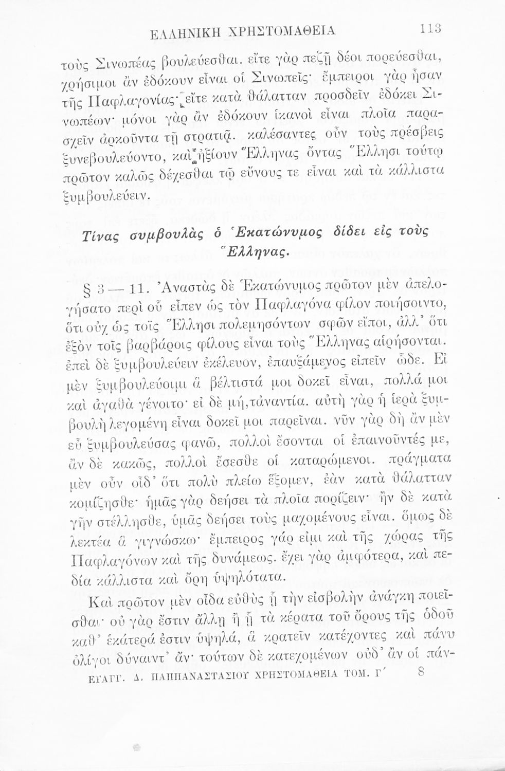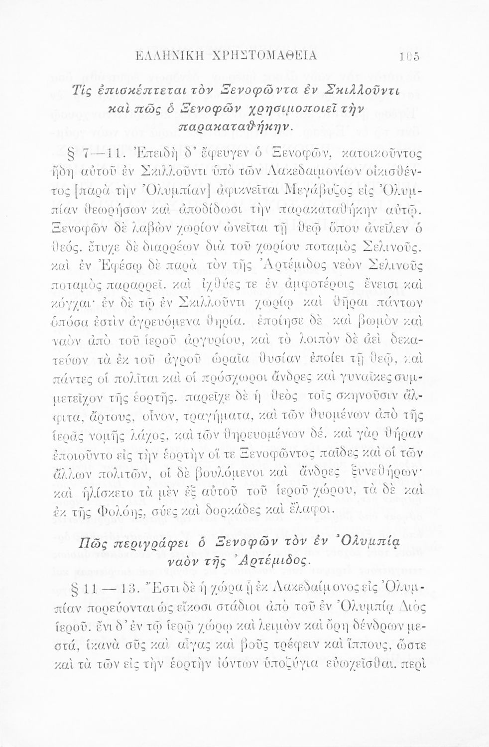 Ελληνική χρηστομάθεια τόμος Γ΄ εκλογαί εκ των τεσσάρων τελευταίων βιβλίων της Κύρου Αναβάσεως του Ξενοφώντος, εκ του Γ΄ και Δ΄ βιβλίου των Ελληνικών του αυτού και εκ του Λουκιανού το Ενύπνιον και Ανάχαρσιν προς χρήσιν των μαθητών της Γ΄ τάξεως του Ελληνικού Σχολείου