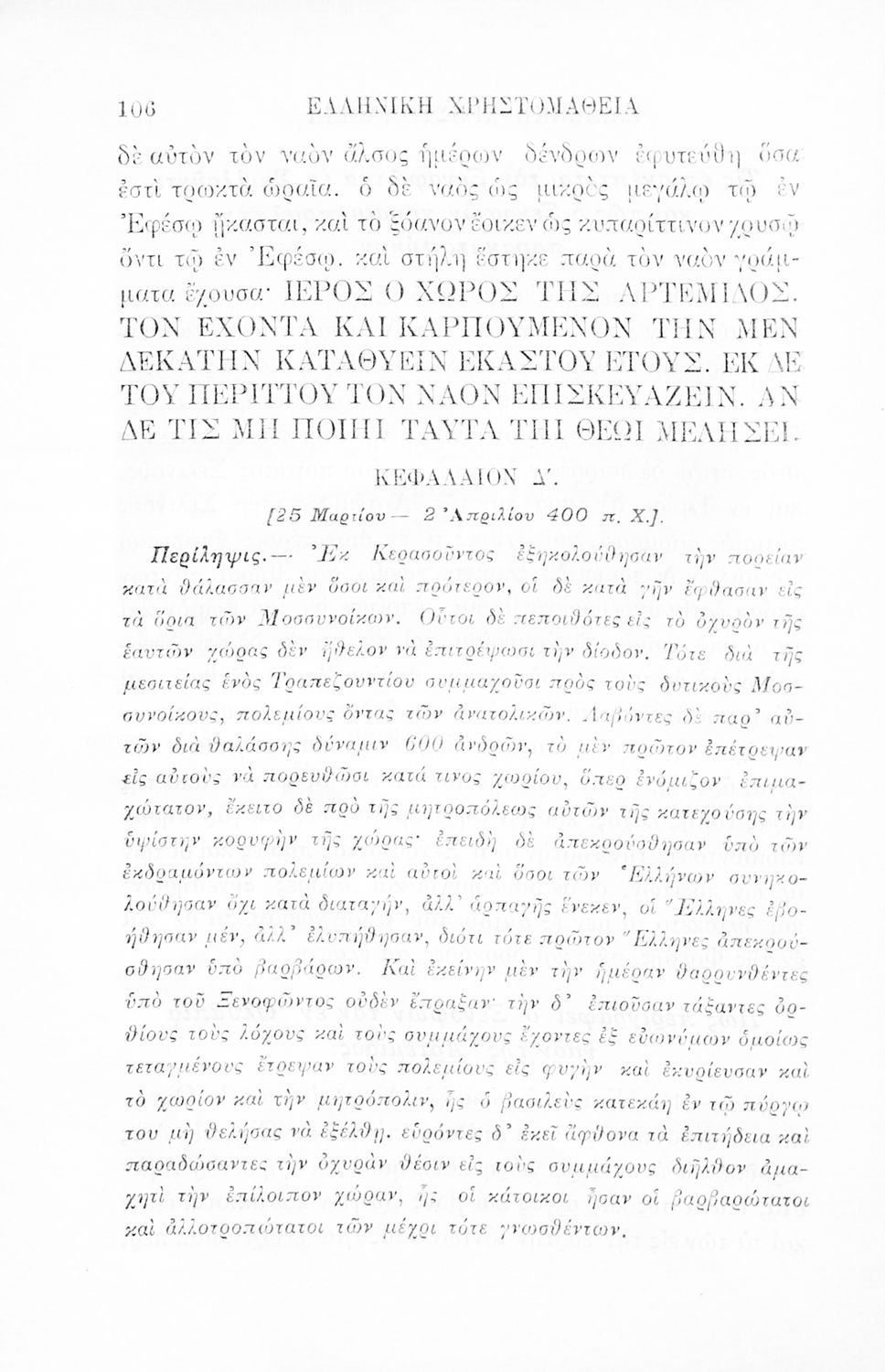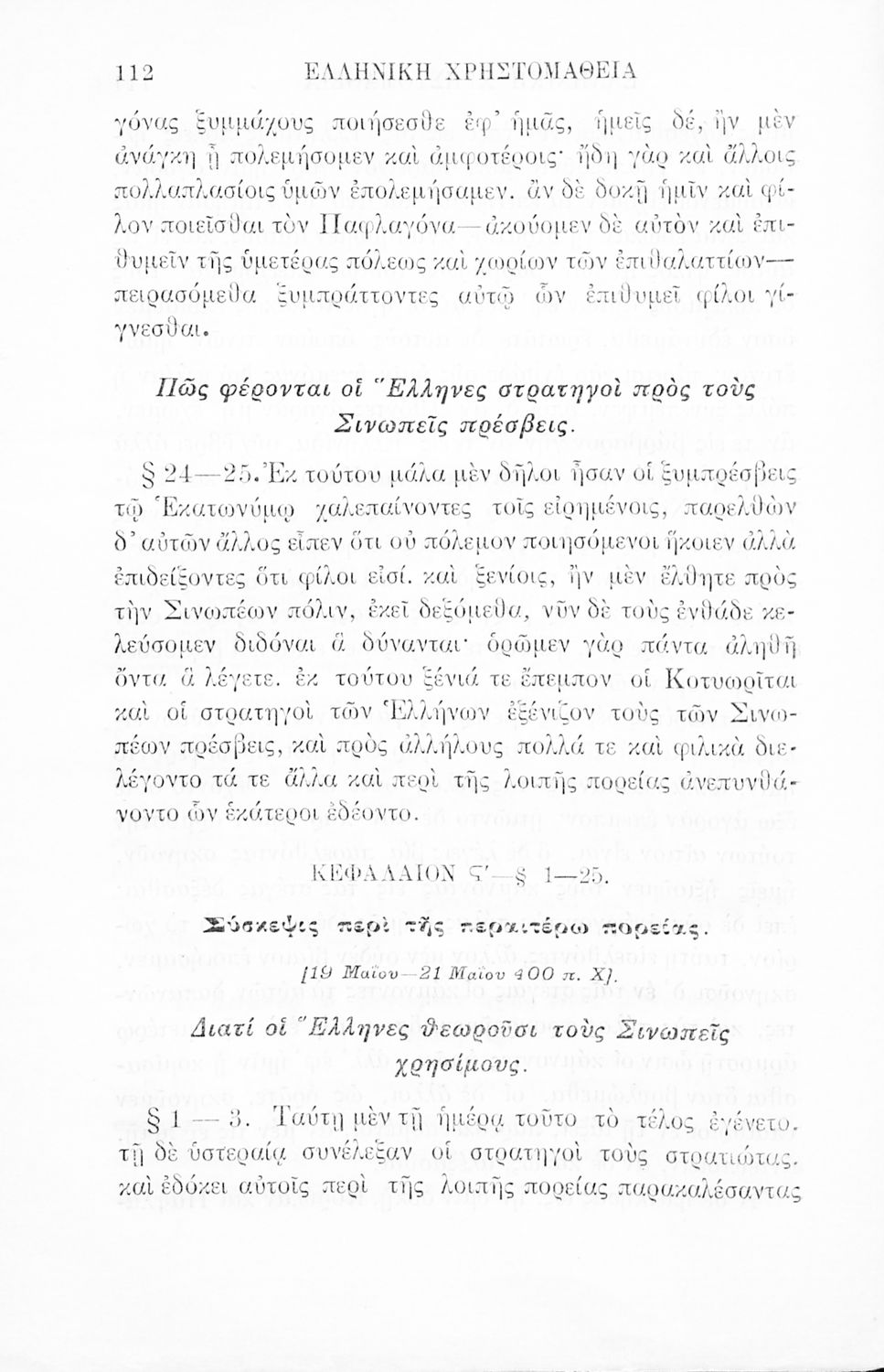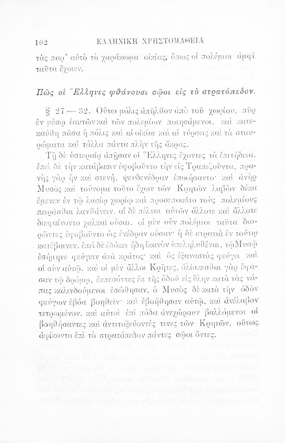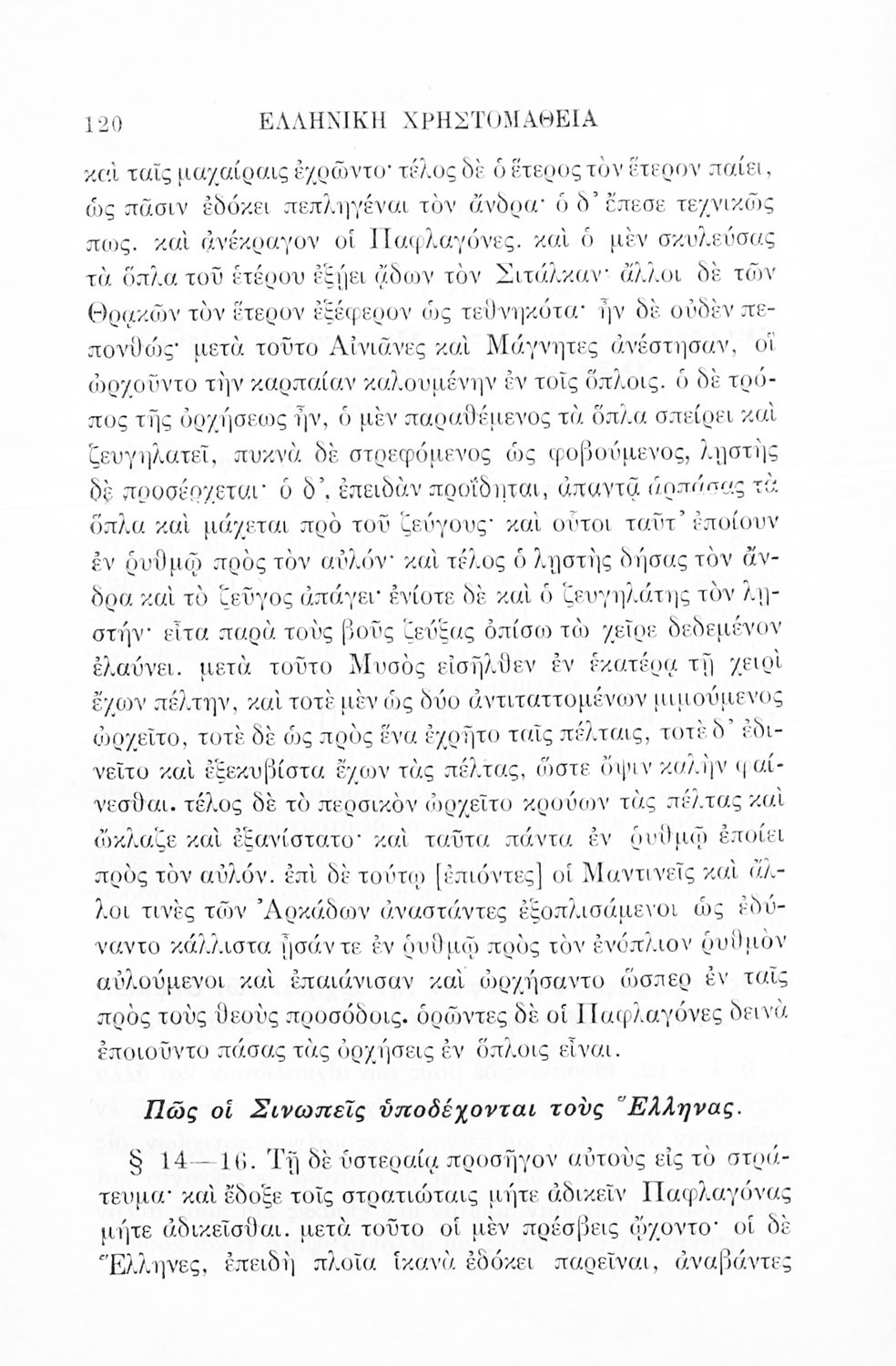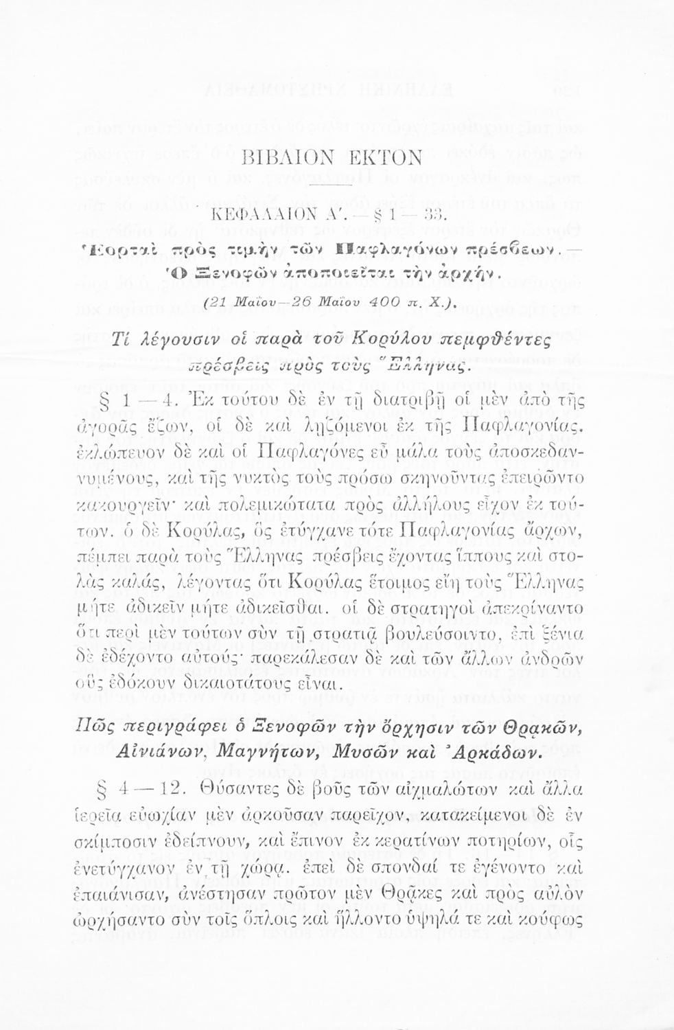 Ελληνική χρηστομάθεια τόμος Γ΄ εκλογαί εκ των τεσσάρων τελευταίων βιβλίων της Κύρου Αναβάσεως του Ξενοφώντος, εκ του Γ΄ και Δ΄ βιβλίου των Ελληνικών του αυτού και εκ του Λουκιανού το Ενύπνιον και Ανάχαρσιν προς χρήσιν των μαθητών της Γ΄ τάξεως του Ελληνικού Σχολείου