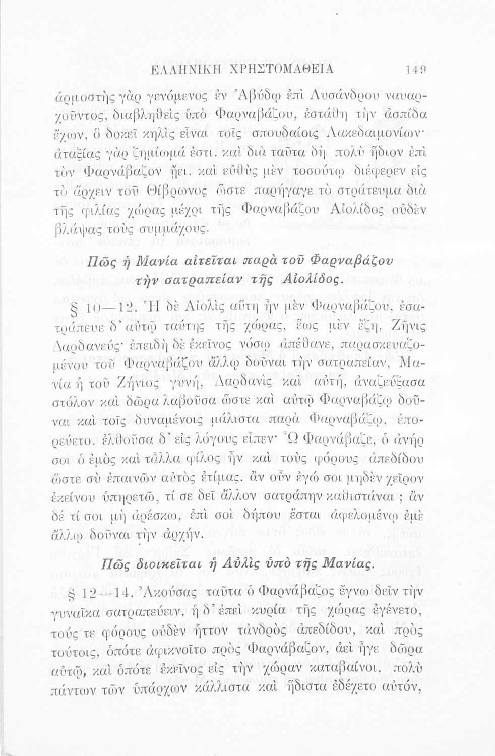 LDR 01883 2200205 4500 035 ## _a02-02099 040 ## _aΕλληνικό Λογοτεχνικό και Ιστορικό Αρχείο 041 ## _ael 100 ## _aΞενοφών _aΛουκιανός _aΕυάγγελος Παπαναστασίου (σχόλια) 110 ## _a1915 ΠΑΠ 245 0# _aΕλληνική χρηστομάθεια τόμος Γ΄ εκλογαί εκ των τεσσάρων τελευταίων βιβλίων της Κύρου Αναβάσεως του Ξενοφώντος, εκ του Γ΄ και Δ΄ βιβλίου των Ελληνικών του αυτού και εκ του Λουκιανού το Ενύπνιον και Ανάχαρσιν προς χρήσιν των μαθητών της Γ΄ τάξεως του Ελληνικού Σχολείου 260 ## _aΑθήνα _bΒιβλιοπωλείο Ιωάννη Ν. Σιδέρη _c1915 300 ## _a232 _bΧάρτης (έγχρωμος), Σκίτσα (ασπρόμαυρα) 520 ## _aΣχολικό εγχειρίδιο Αρχαίων Ελληνικών Γ' Ελληνικού Σχολείου που περιλαμβάνει γραμματική της αρχαίας ελληνικής, αποσπάσματα από το έργο του Ξενοφώντα Ελληνικά και τα έργα του Λουκιανού Ενύπνιον και Ανάχαρσις, βιογραφικά σημειώματα των συγγραφέων, ερμηνευτικές και πραγματολογικές σημειώσεις. 521 ## _aΓ' Ελληνικού Σχολείου 522 ## _aΕλλάδα 546 ## _aΚαθαρεύουσα 563 ## _aΜαλακό Εξώφυλλο 583 ## _c1914 650 #4 _aΑγωγή του πολίτη _aΠελοποννησιακός πόλεμος _aΡητορική _aΣόλωνας _aΦιλοσοφία