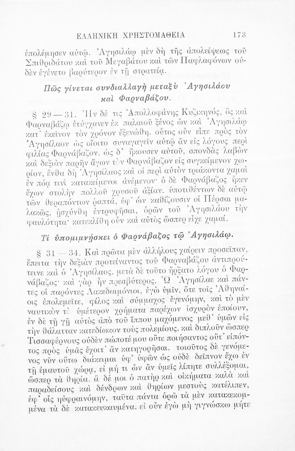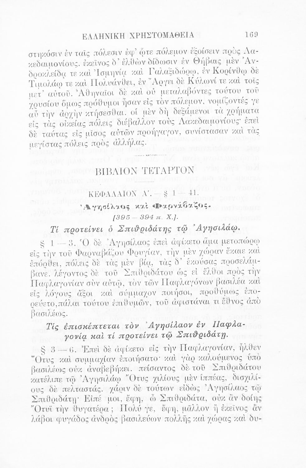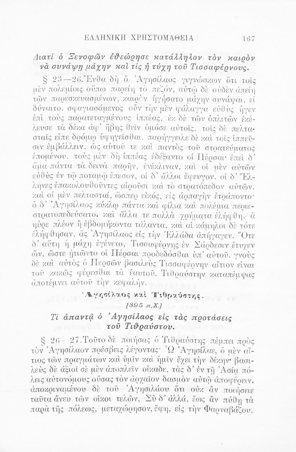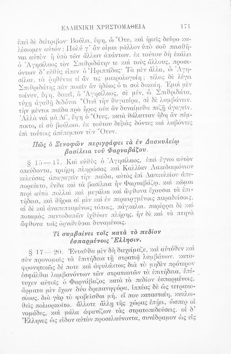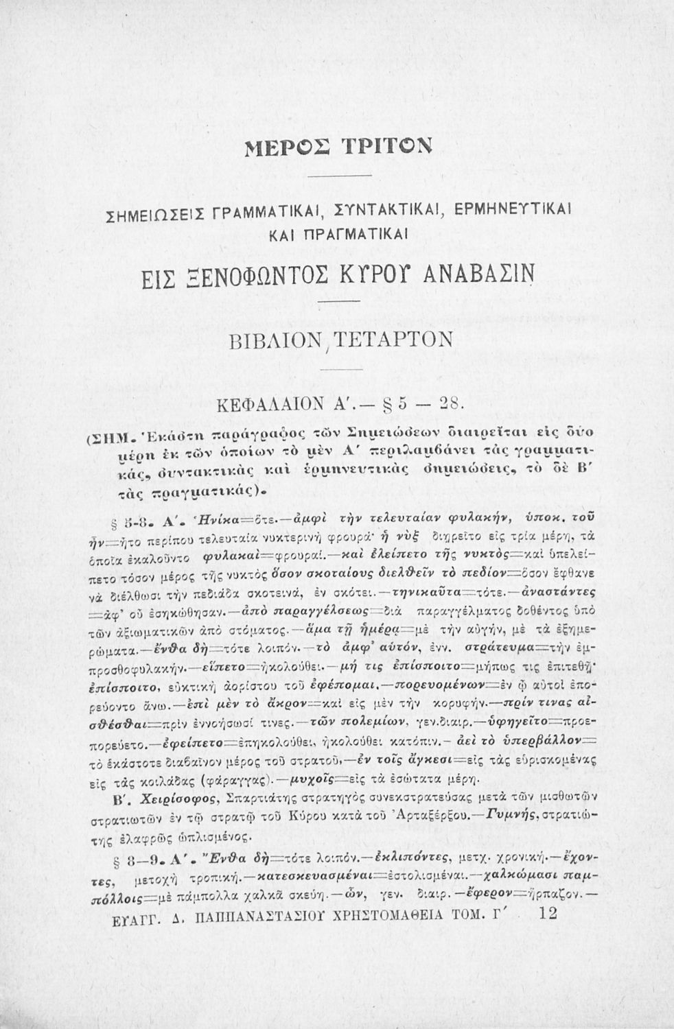 Ελληνική χρηστομάθεια τόμος Γ΄ εκλογαί εκ των τεσσάρων τελευταίων βιβλίων της Κύρου Αναβάσεως του Ξενοφώντος, εκ του Γ΄ και Δ΄ βιβλίου των Ελληνικών του αυτού και εκ του Λουκιανού το Ενύπνιον και Ανάχαρσιν προς χρήσιν των μαθητών της Γ΄ τάξεως του Ελληνικού Σχολείου