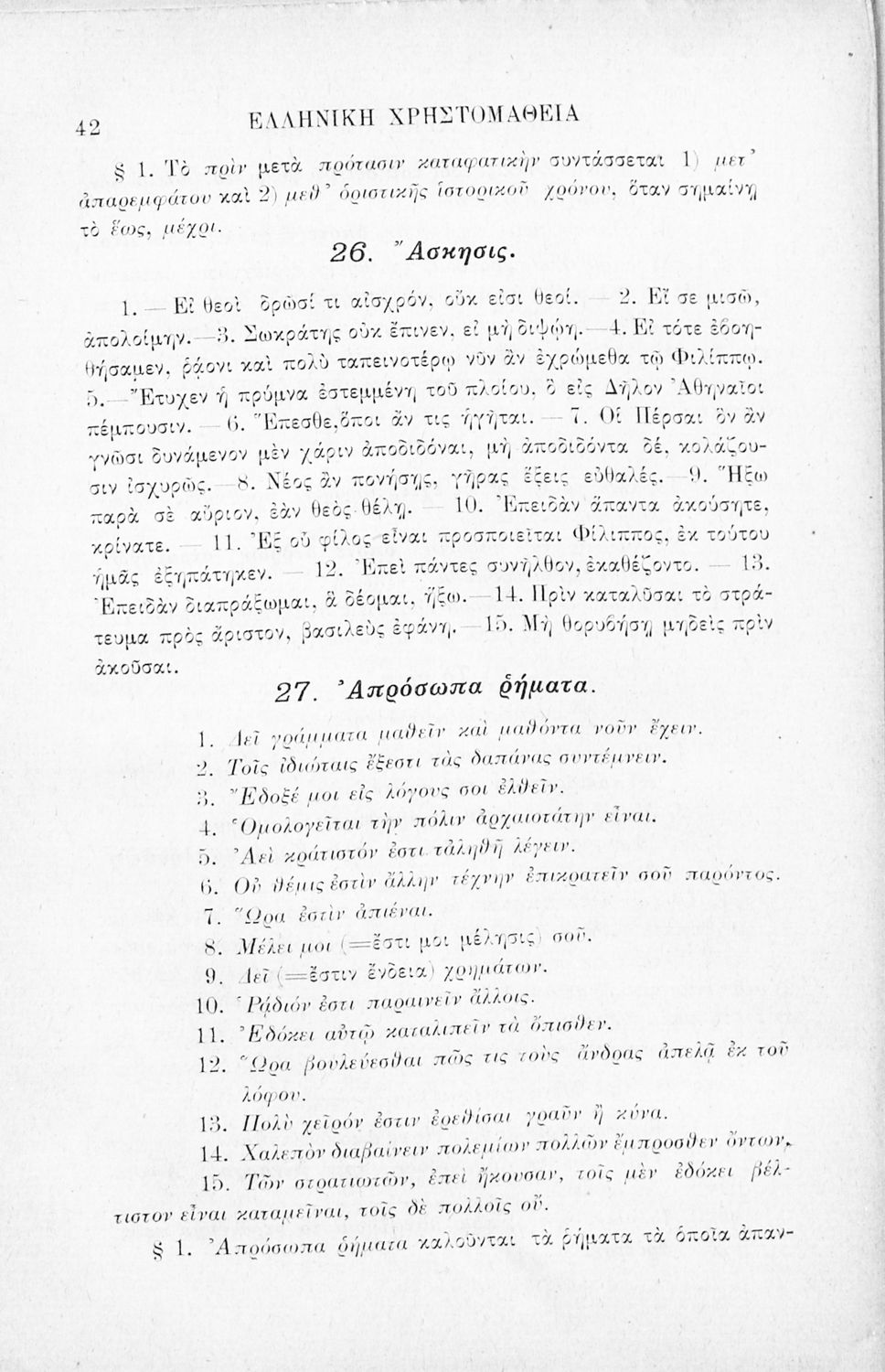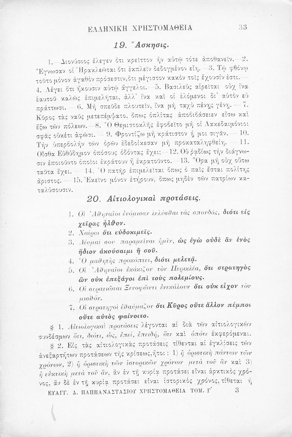 Ελληνική χρηστομάθεια τόμος Γ΄ εκλογαί εκ των τεσσάρων τελευταίων βιβλίων της Κύρου Αναβάσεως του Ξενοφώντος, εκ του Γ΄ και Δ΄ βιβλίου των Ελληνικών του αυτού και εκ του Λουκιανού το Ενύπνιον και Ανάχαρσιν προς χρήσιν των μαθητών της Γ΄ τάξεως του Ελληνικού Σχολείου