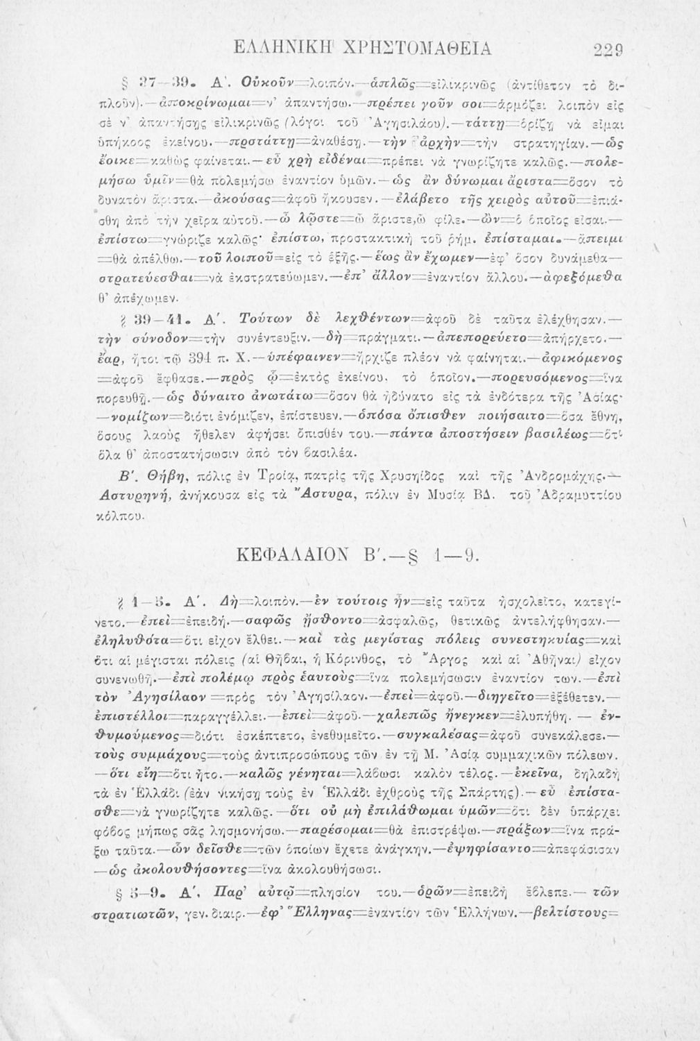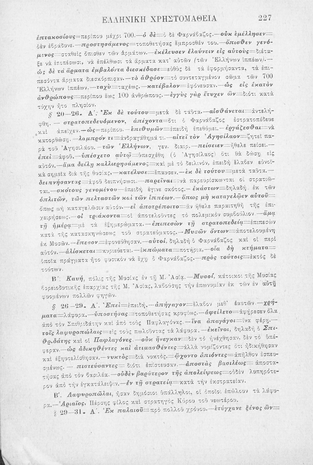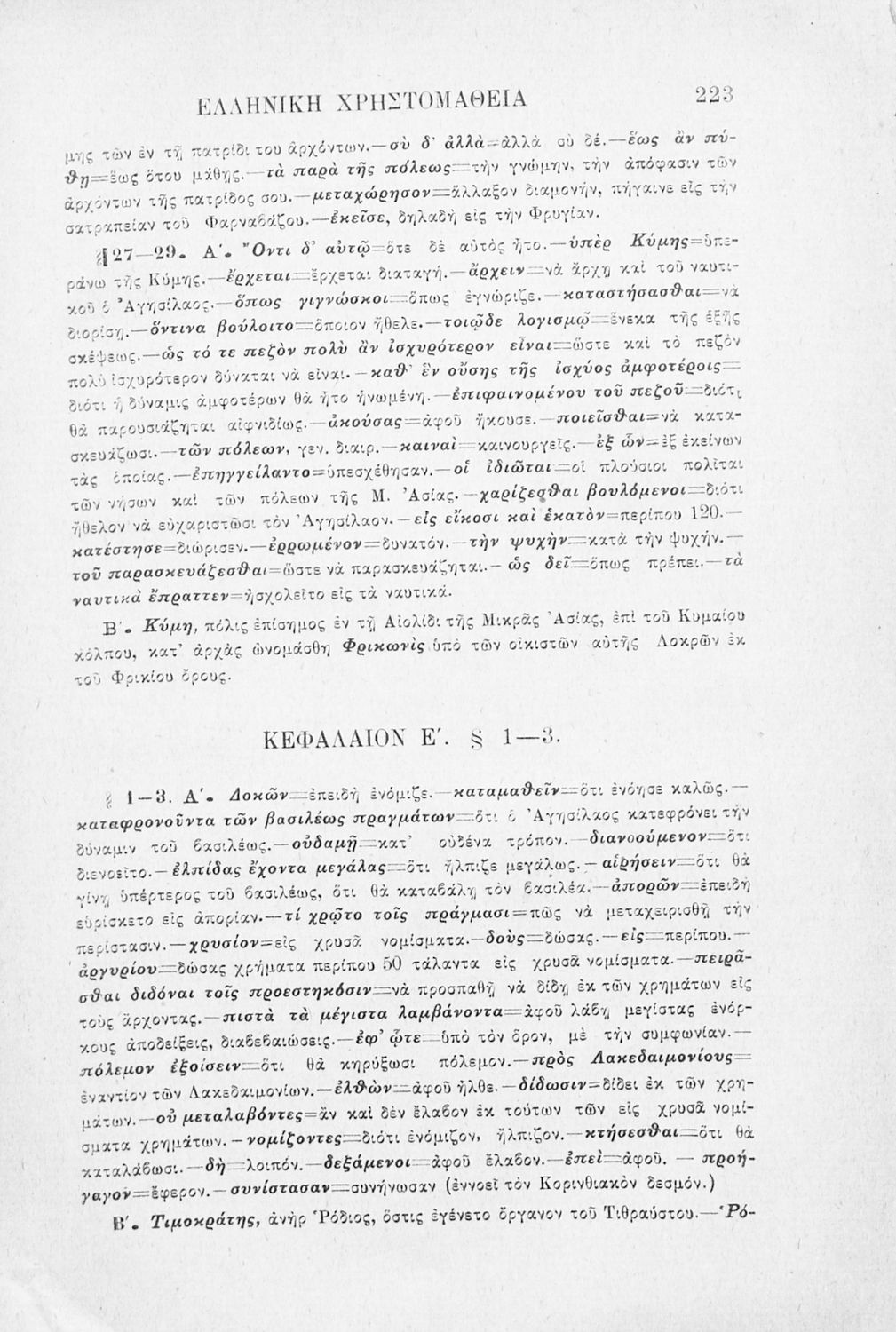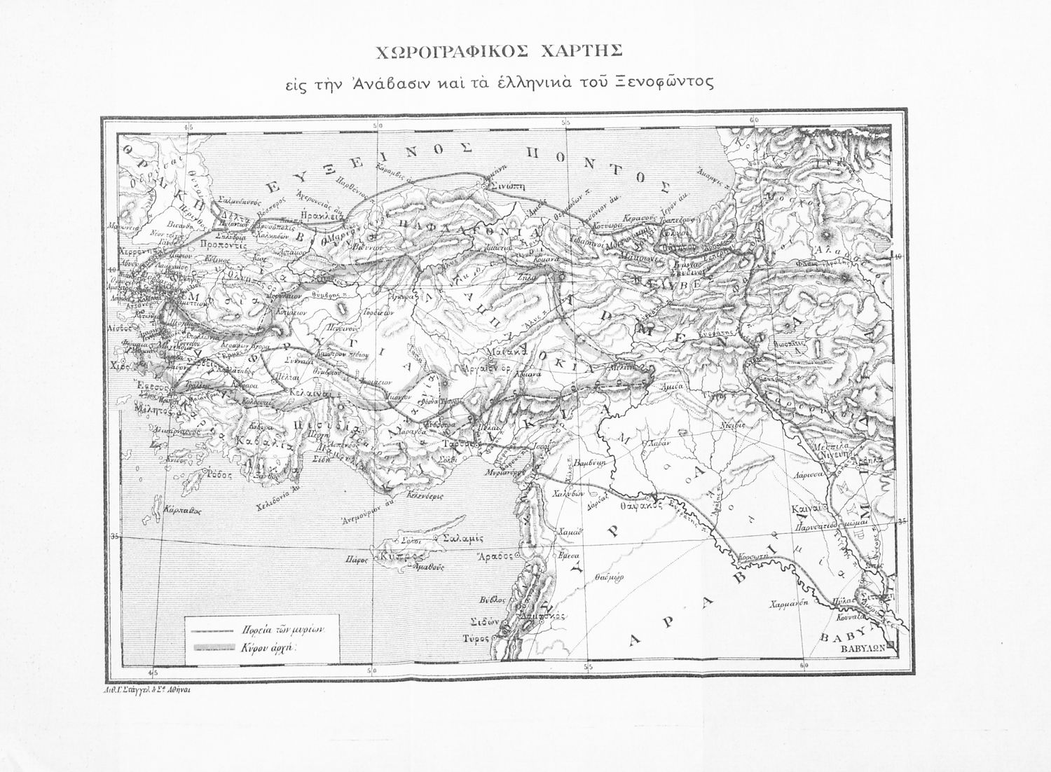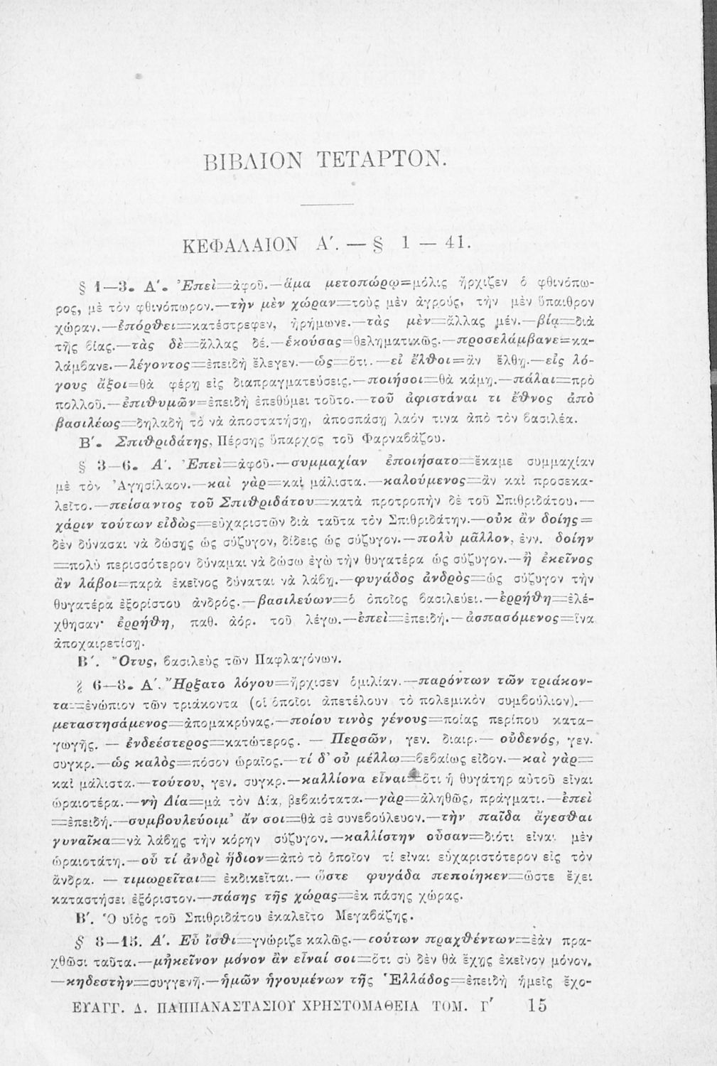 Ελληνική χρηστομάθεια τόμος Γ΄ εκλογαί εκ των τεσσάρων τελευταίων βιβλίων της Κύρου Αναβάσεως του Ξενοφώντος, εκ του Γ΄ και Δ΄ βιβλίου των Ελληνικών του αυτού και εκ του Λουκιανού το Ενύπνιον και Ανάχαρσιν προς χρήσιν των μαθητών της Γ΄ τάξεως του Ελληνικού Σχολείου