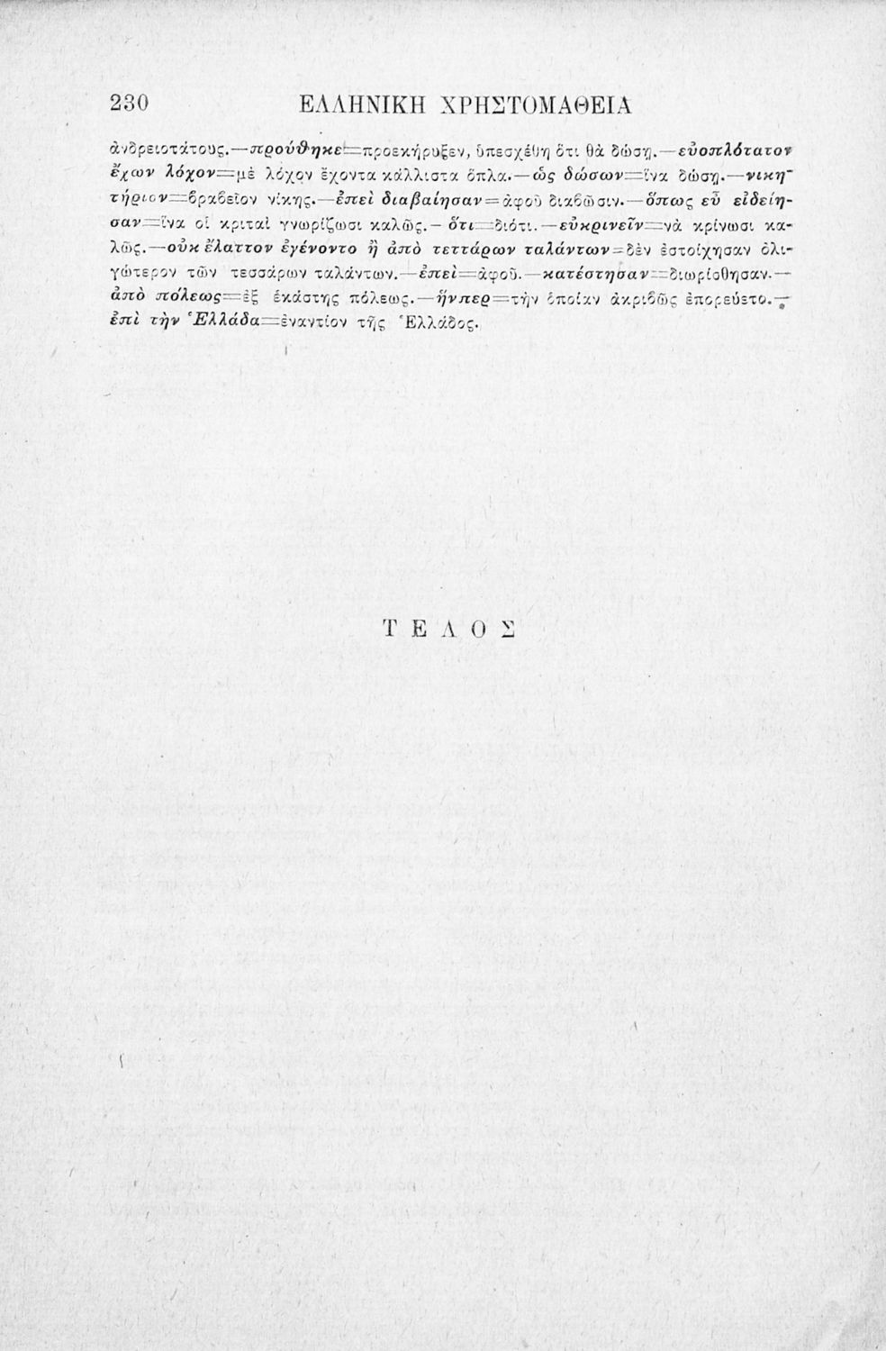 Τίτλος: Ελληνική χρηστομάθεια τόμος Γ΄ εκλογαί εκ των τεσσάρων τελευταίων βιβλίων της Κύρου Αναβάσεως του Ξενοφώντος, εκ του Γ΄ και Δ΄ βιβλίου των Ελληνικών του αυτού και εκ του Λουκιανού το Ενύπνιον και Ανάχαρσιν προς χρήσιν των μαθητών της Γ΄ τάξεως του Ελληνικού Σχολείου
