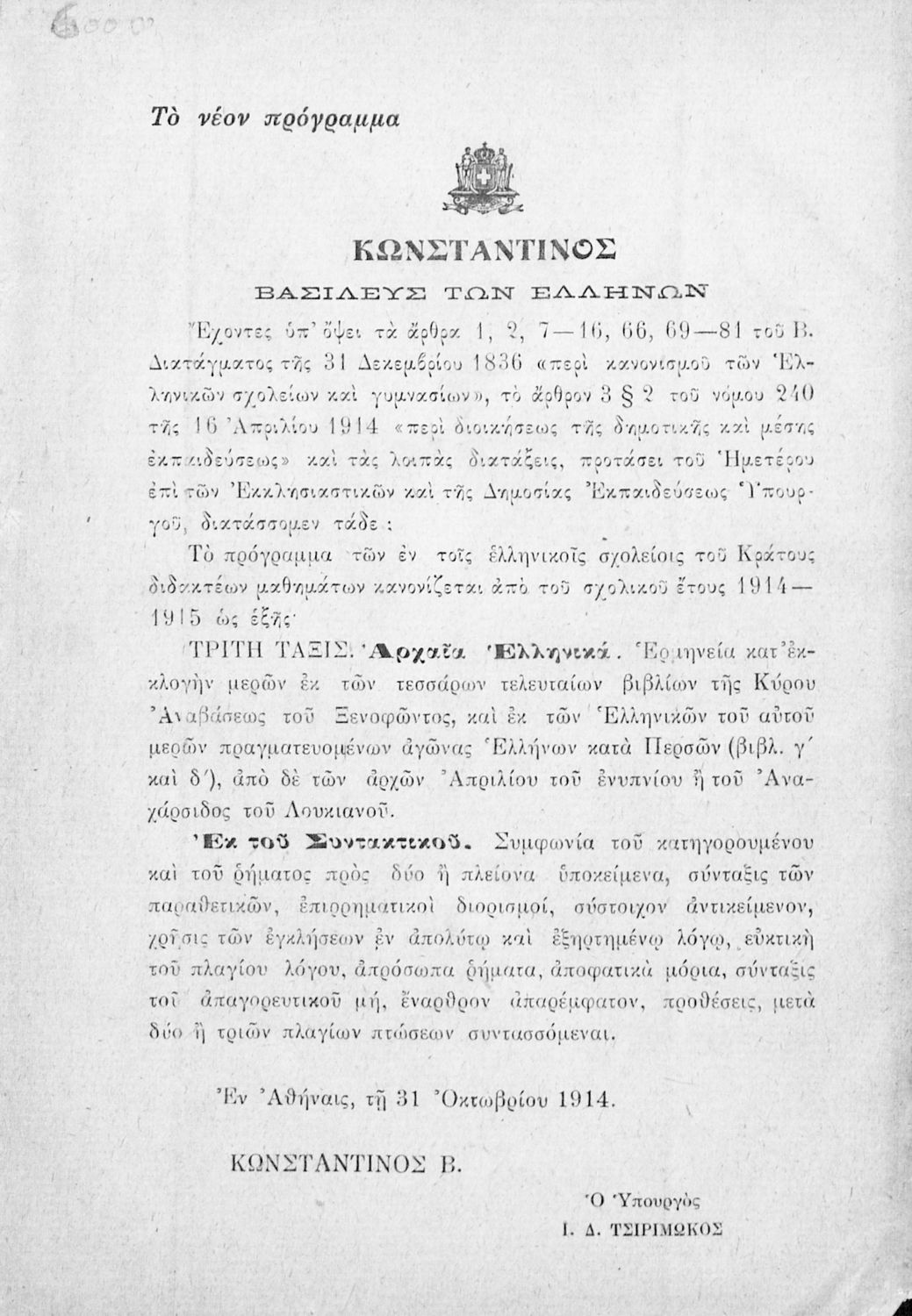 Τάξη:  Γ' Ελληνικού Σχολείου / Γ' Αστικού Σχολείου Θηλέων