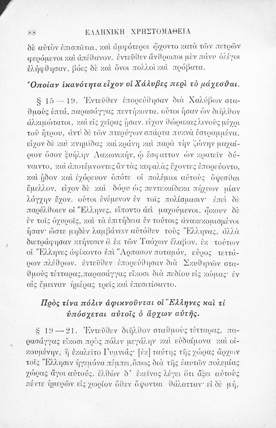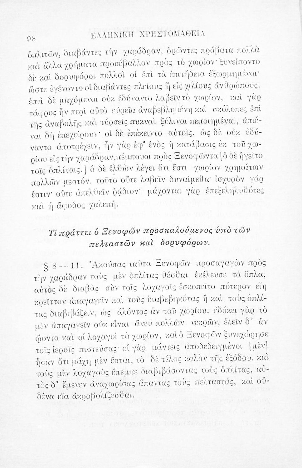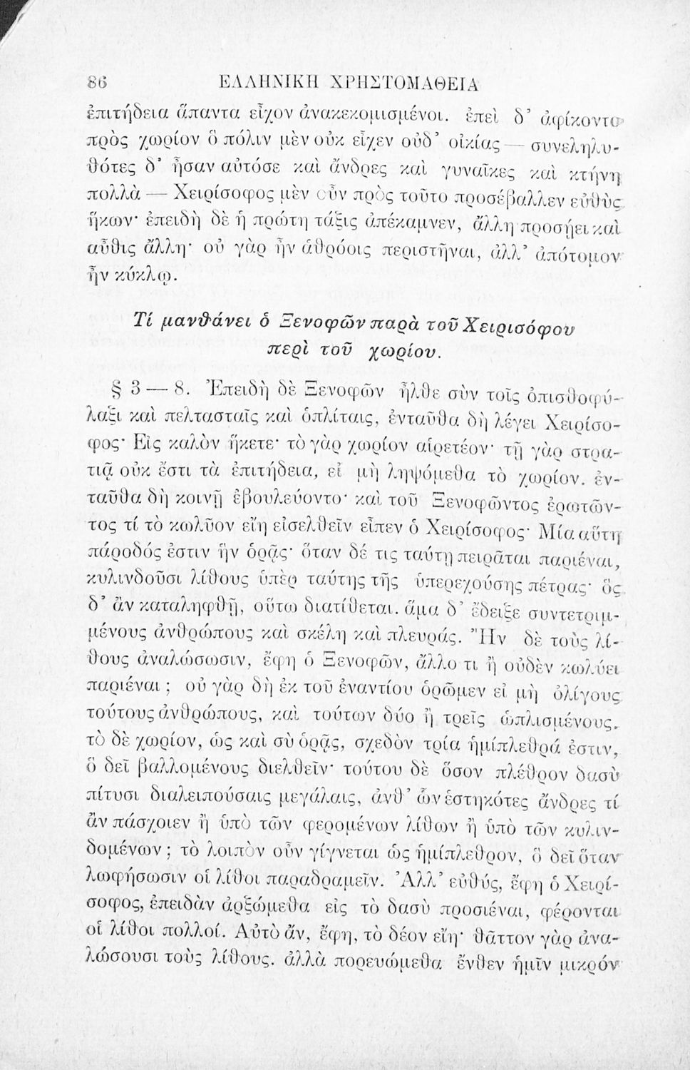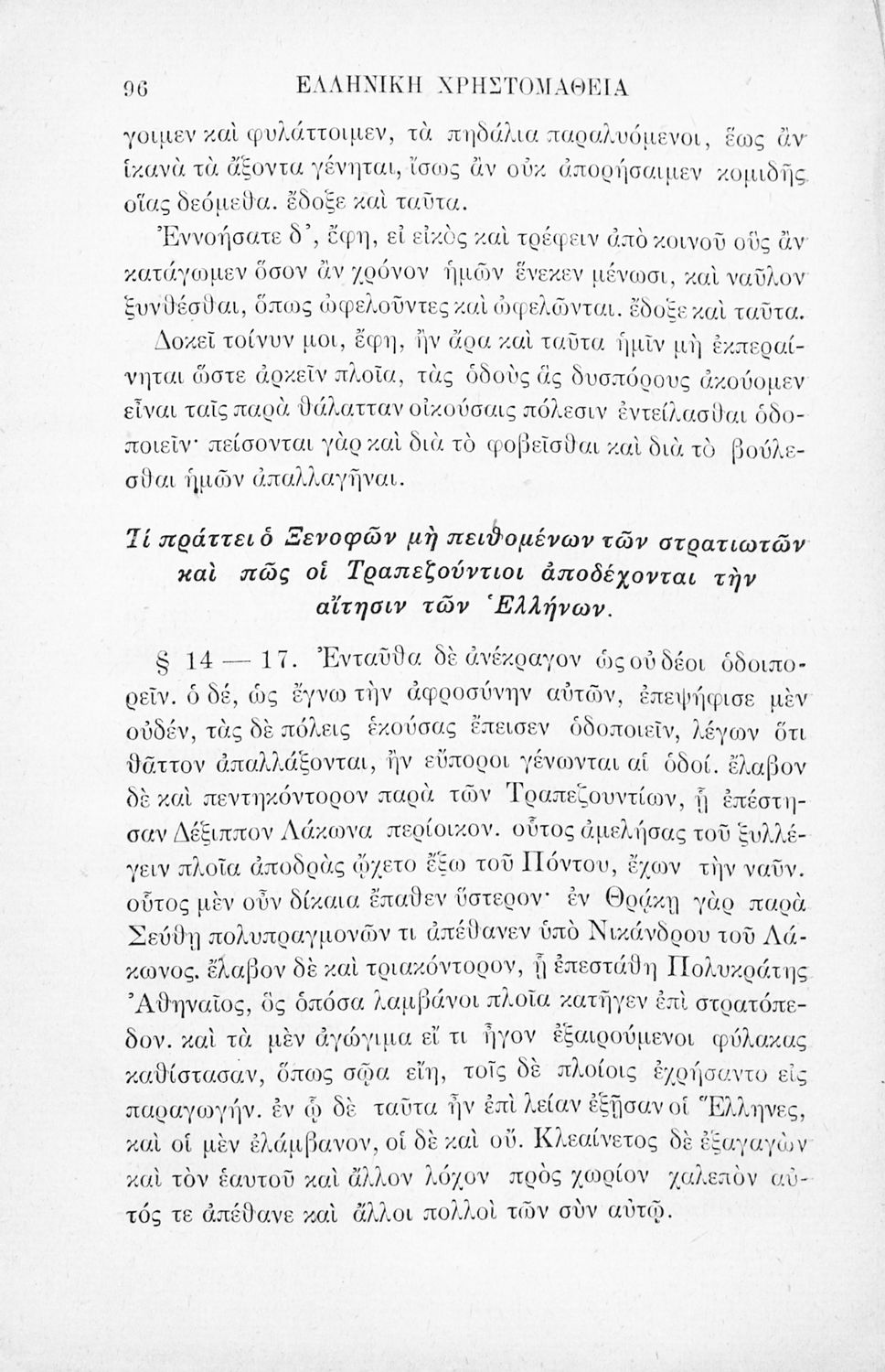 Ελληνική χρηστομάθεια τόμος Γ΄ εκλογαί εκ των τεσσάρων τελευταίων βιβλίων της Κύρου Αναβάσεως του Ξενοφώντος, εκ του Γ΄ και Δ΄ βιβλίου των Ελληνικών του αυτού και εκ του Λουκιανού το Ενύπνιον και Ανάχαρσιν προς χρήσιν των μαθητών της Γ΄ τάξεως του Ελληνικού Σχολείου