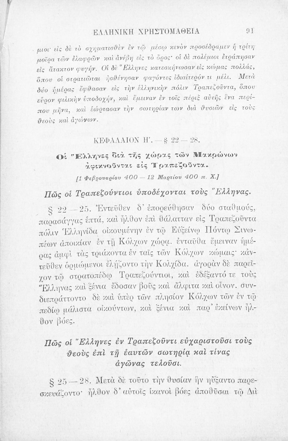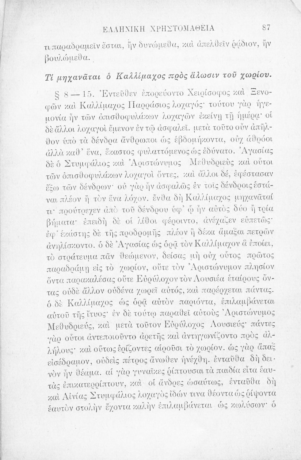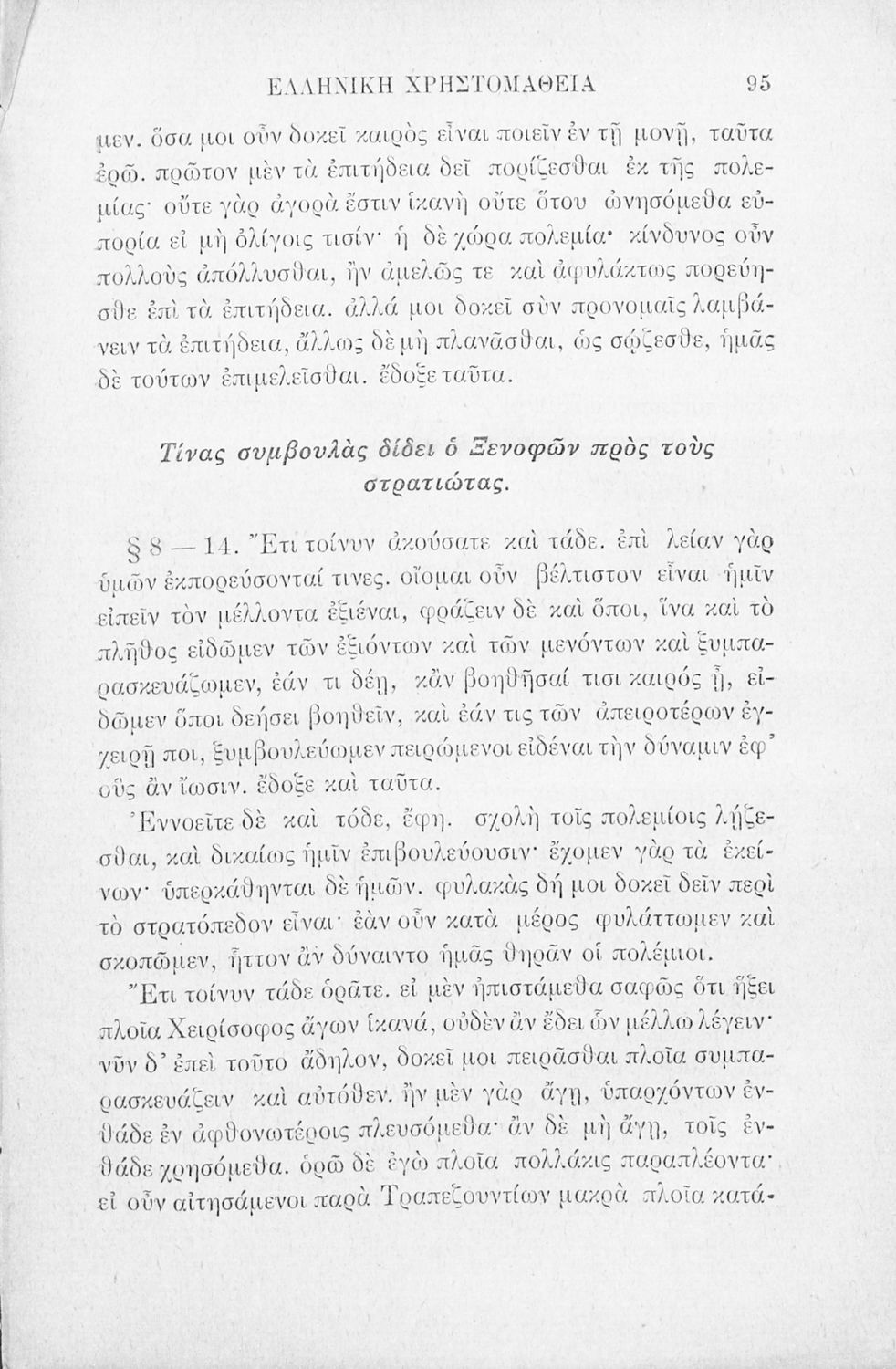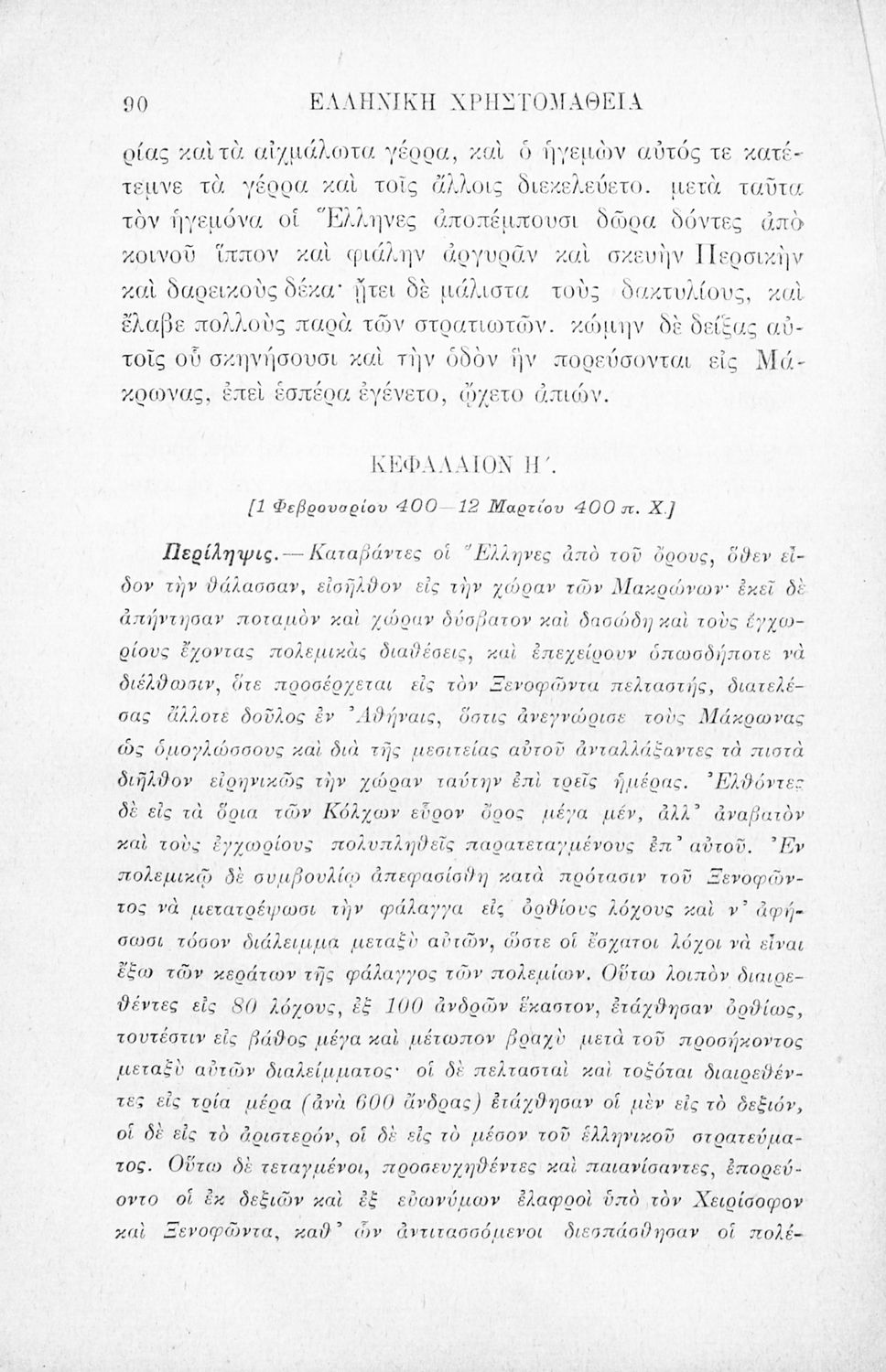 Ελληνική χρηστομάθεια τόμος Γ΄ εκλογαί εκ των τεσσάρων τελευταίων βιβλίων της Κύρου Αναβάσεως του Ξενοφώντος, εκ του Γ΄ και Δ΄ βιβλίου των Ελληνικών του αυτού και εκ του Λουκιανού το Ενύπνιον και Ανάχαρσιν προς χρήσιν των μαθητών της Γ΄ τάξεως του Ελληνικού Σχολείου