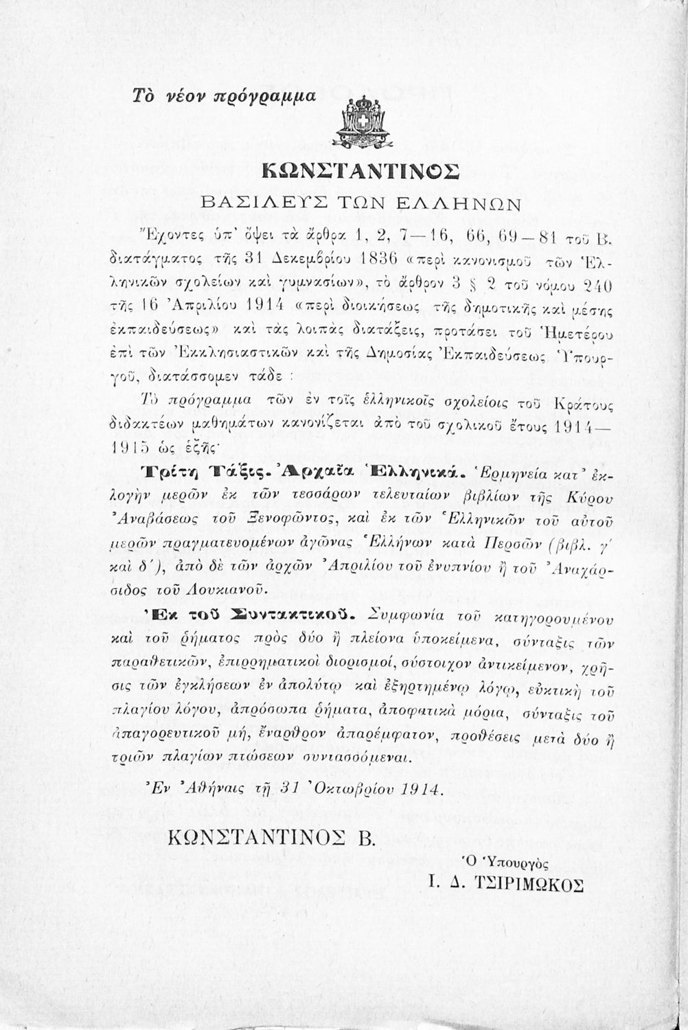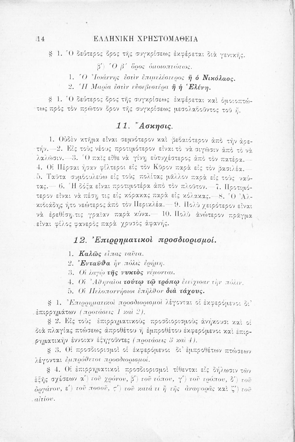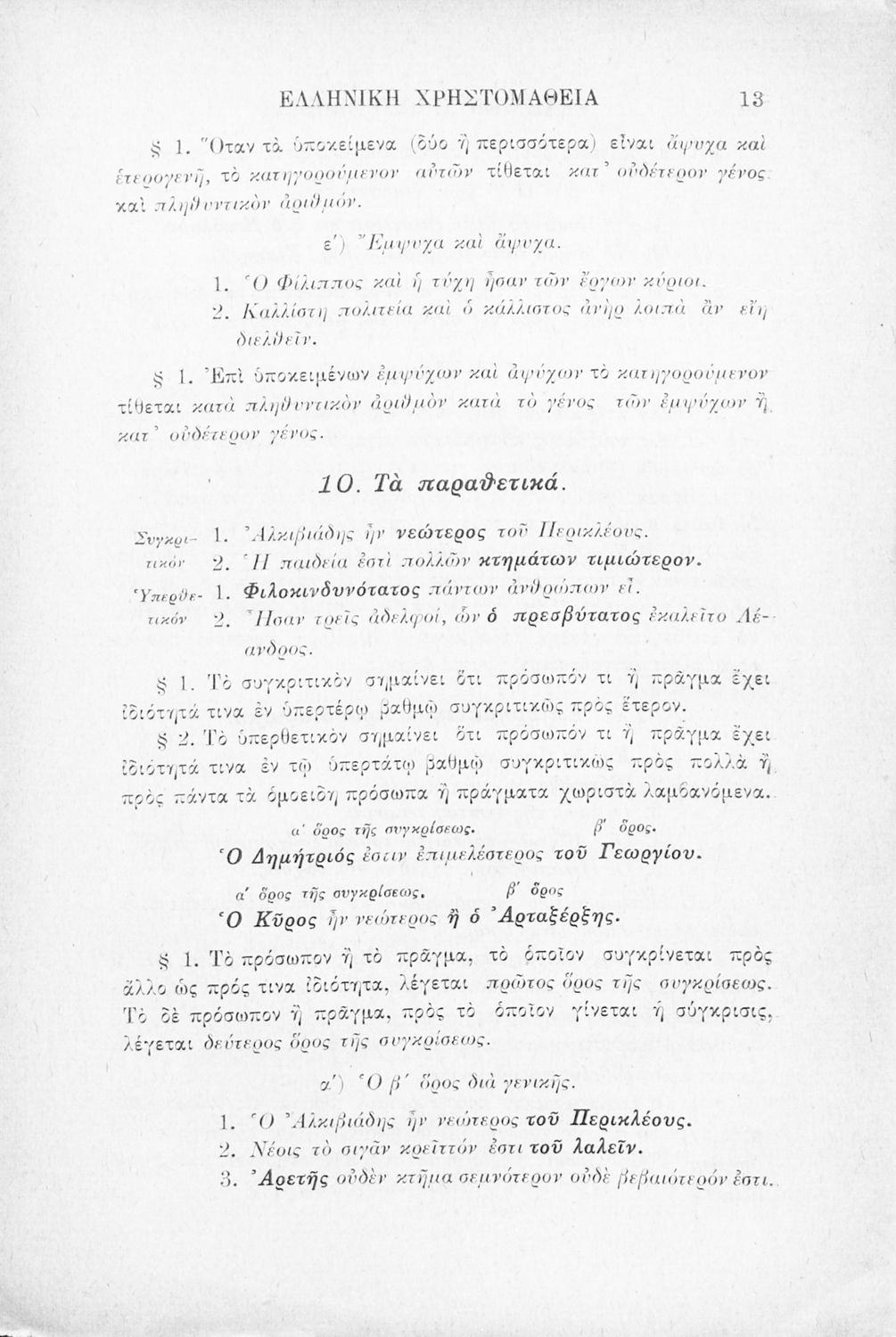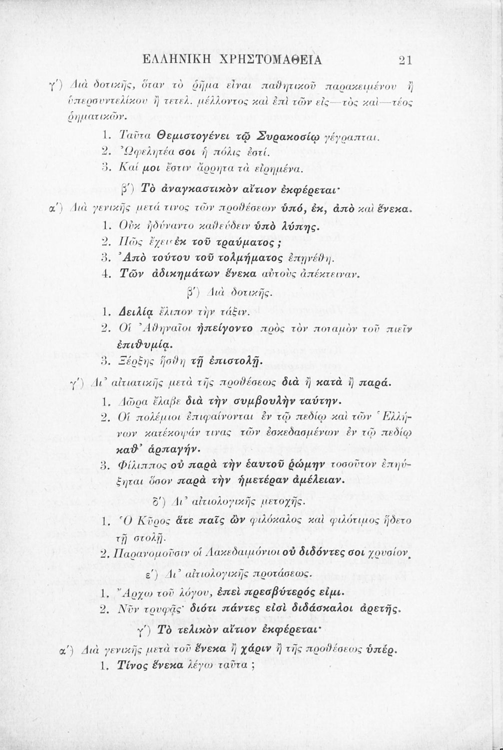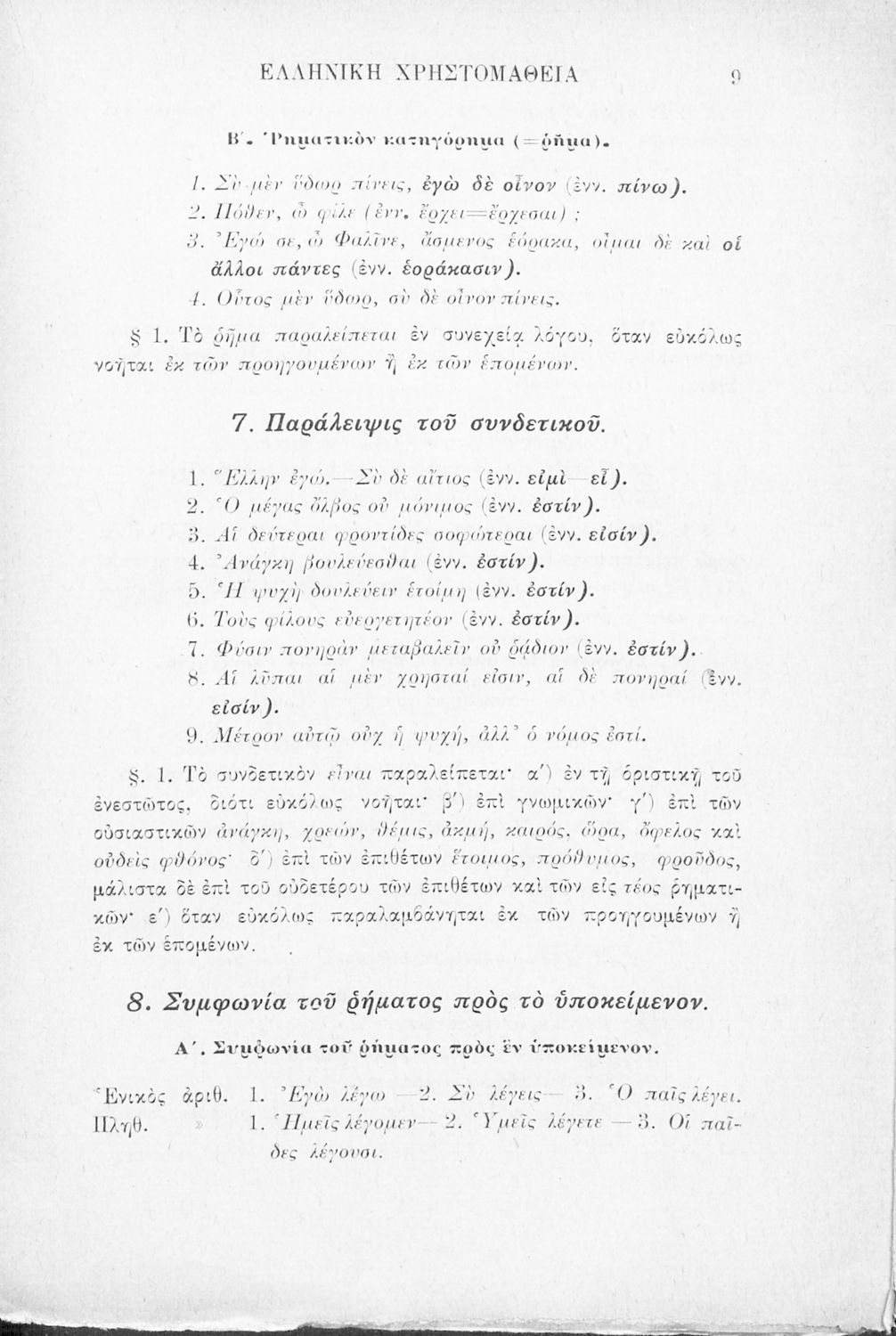 LDR 01883 2200205 4500 035 ## _a02-02099 040 ## _aΕλληνικό Λογοτεχνικό και Ιστορικό Αρχείο 041 ## _ael 100 ## _aΞενοφών _aΛουκιανός _aΕυάγγελος Παπαναστασίου (σχόλια) 110 ## _a1915 ΠΑΠ 245 0# _aΕλληνική χρηστομάθεια τόμος Γ΄ εκλογαί εκ των τεσσάρων τελευταίων βιβλίων της Κύρου Αναβάσεως του Ξενοφώντος, εκ του Γ΄ και Δ΄ βιβλίου των Ελληνικών του αυτού και εκ του Λουκιανού το Ενύπνιον και Ανάχαρσιν προς χρήσιν των μαθητών της Γ΄ τάξεως του Ελληνικού Σχολείου 260 ## _aΑθήνα _bΒιβλιοπωλείο Ιωάννη Ν. Σιδέρη _c1915 300 ## _a232 _bΧάρτης (έγχρωμος), Σκίτσα (ασπρόμαυρα) 520 ## _aΣχολικό εγχειρίδιο Αρχαίων Ελληνικών Γ' Ελληνικού Σχολείου που περιλαμβάνει γραμματική της αρχαίας ελληνικής, αποσπάσματα από το έργο του Ξενοφώντα Ελληνικά και τα έργα του Λουκιανού Ενύπνιον και Ανάχαρσις, βιογραφικά σημειώματα των συγγραφέων, ερμηνευτικές και πραγματολογικές σημειώσεις. 521 ## _aΓ' Ελληνικού Σχολείου 522 ## _aΕλλάδα 546 ## _aΚαθαρεύουσα 563 ## _aΜαλακό Εξώφυλλο 583 ## _c1914 650 #4 _aΑγωγή του πολίτη _aΠελοποννησιακός πόλεμος _aΡητορική _aΣόλωνας _aΦιλοσοφία