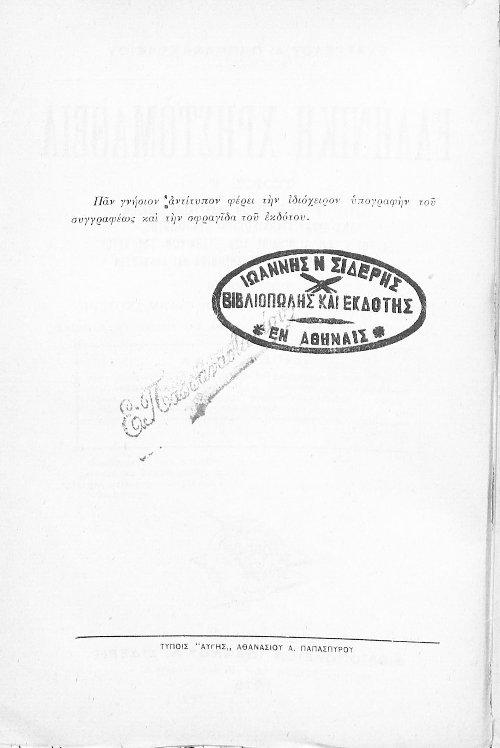 Εντοπισμός πρωτοτύπου: Ελληνικό Λογοτεχνικό και Ιστορικό Αρχείο Κωδικός βιβλιοθήκης: 1915 ΠΑΠ |