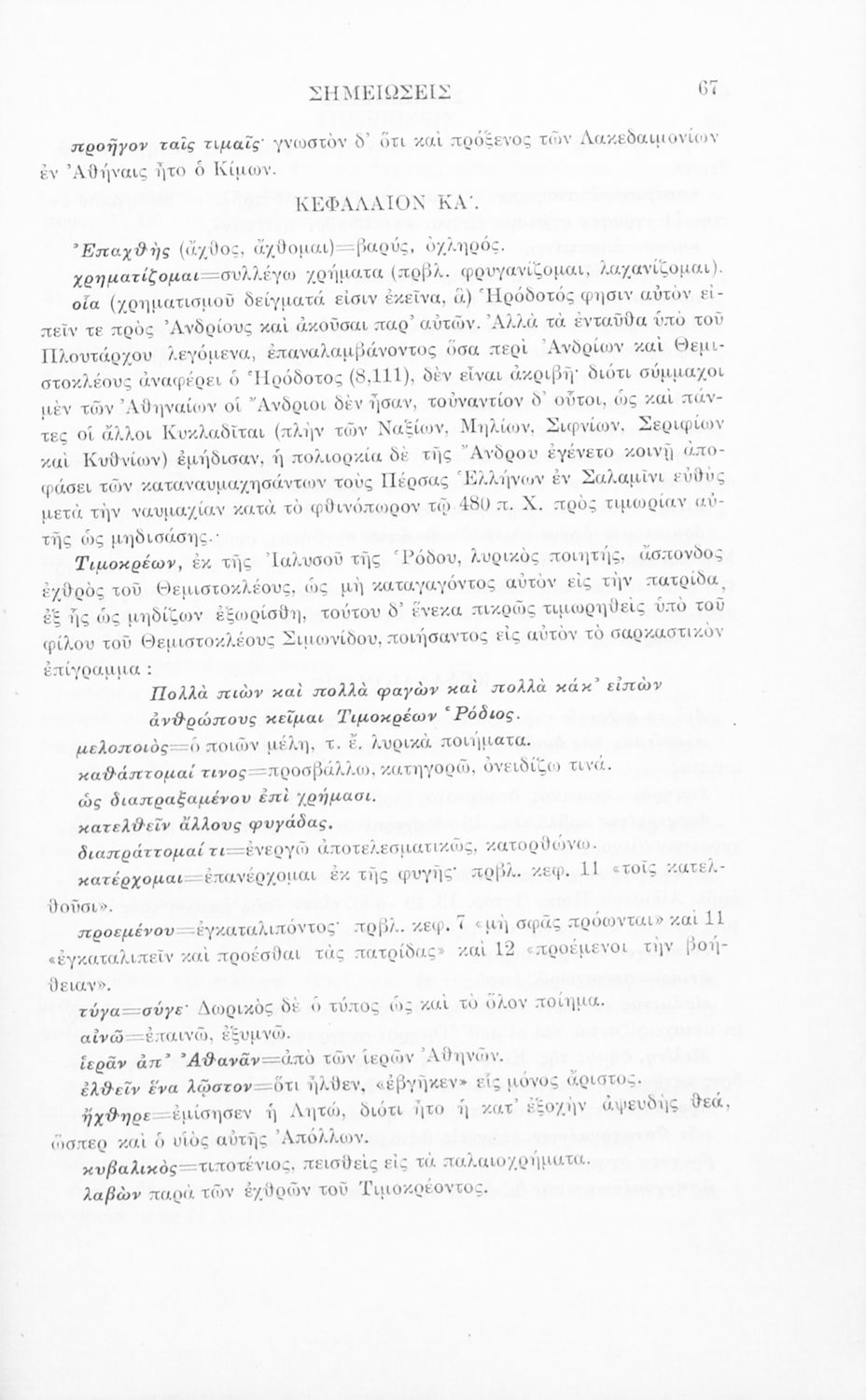 Βαθμίδα εκπαίδευσης: Δευτεροβάθμια Μάθημα: Αρχαία Ελληνικά Γλώσσα: Καθαρεύουσα Παρουσίαση περιεχομένου: Σχολικό εγχειρίδιο Αρχαίων Ελληνικών Γυμνασίου που περιλαμβάνει το έργο του Πλούταρχου Θεμιστοκλής, εισαγωγή στη ζωή και το έργο του Πλούταρχου και ερμηνευτικά λεξικολογικά σχόλια. |