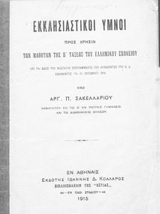 Κωδικός αναγνώρισης: 02-02104 Τίτλος: Εκκλησιαστικοί ύμνοι προς χρήσιν των μαθητών της Β΄ τάξεως του Ελληνικού Σχολείου Συγγραφέας: Αργύριος Π. Σακελλαρίου Μέγεθος και υπόστρωμα: Σχολικό εγχειρίδιο, σκληρό εξώφυλλο, 46 σελίδες. |