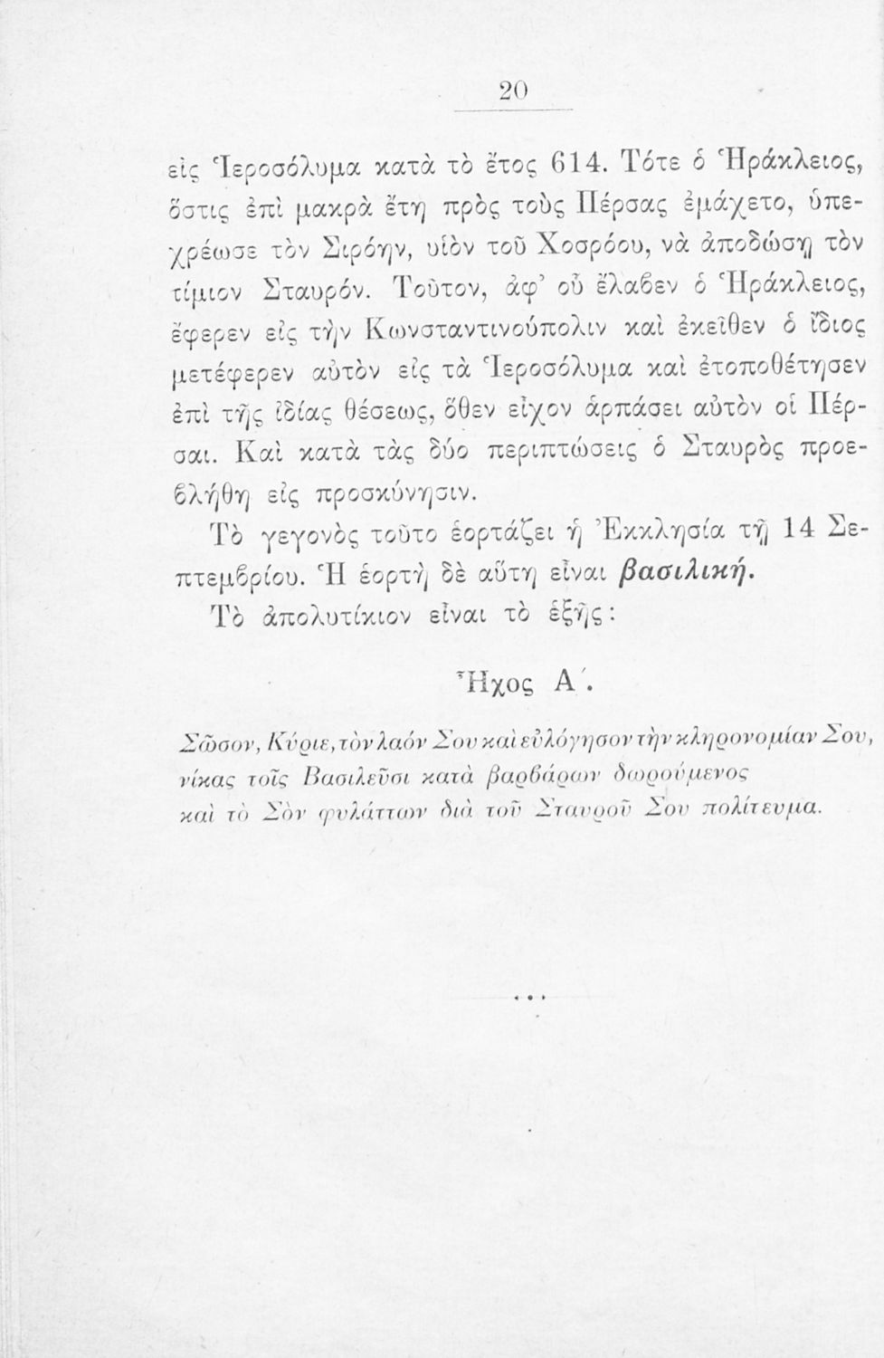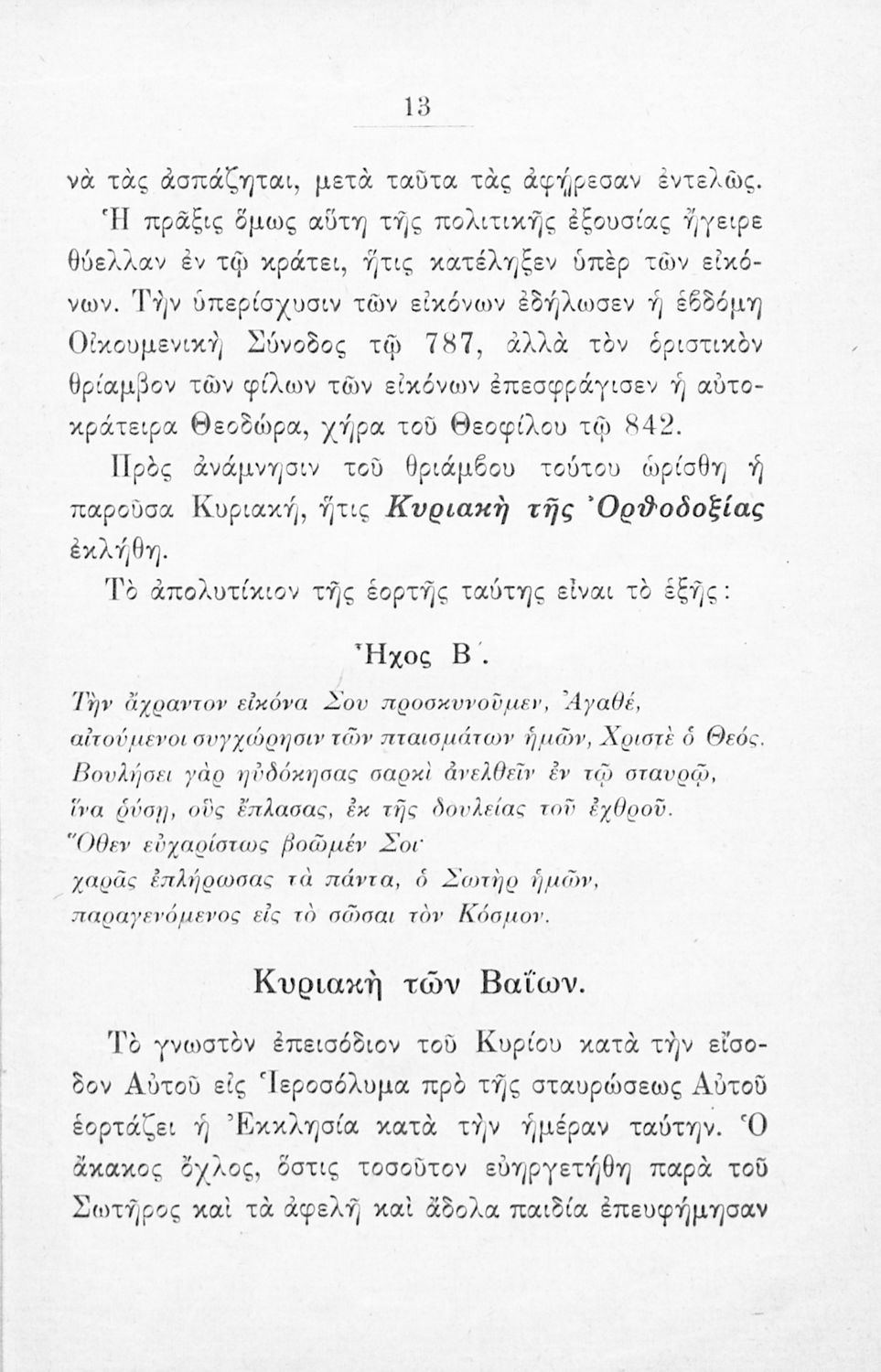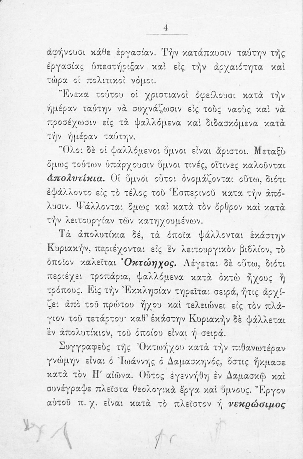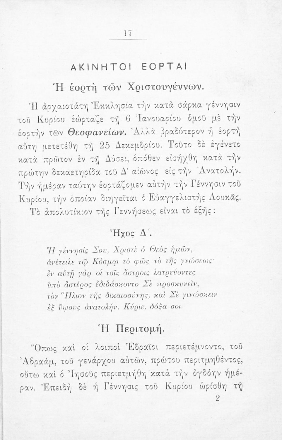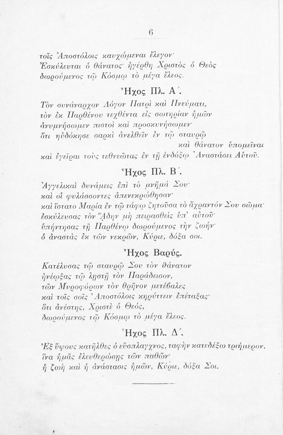 Σχολικό εγχειρίδιο Θρησκευτικών Β' Ελληνικού Σχολείου που περιλαμβάνει εκκλησιαστικούς ύμνους, απολυτίκια και αναστάσιμα εξαποστειλάρια και ερμηνευτικές σημειώσεις.