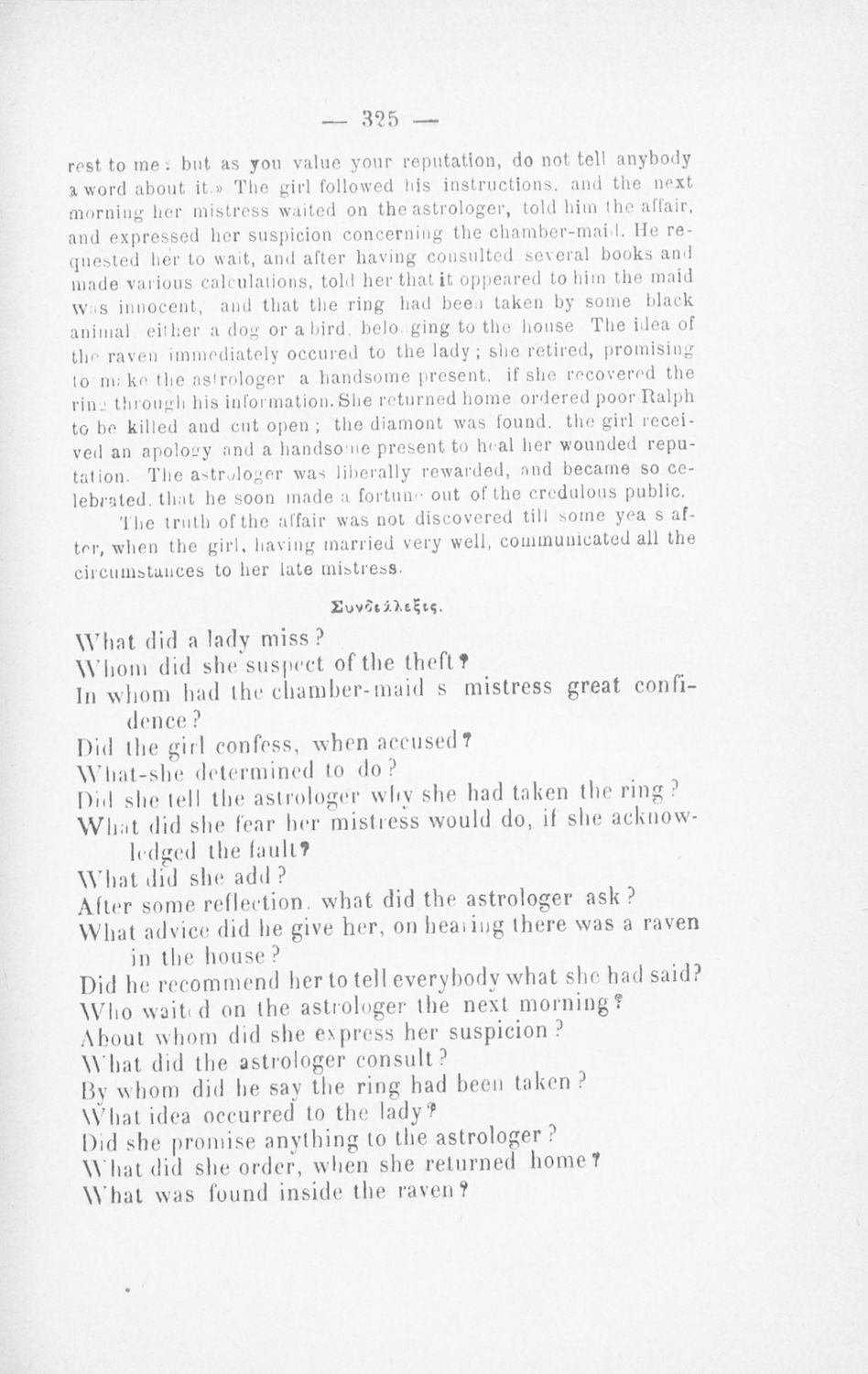 Παιδαγωγικό βοήθημα για το μάθημα των Αγγλικών. Το εγχειρίδιο περιλαμβάνει τους βασικούς κανόνες εκμάθησης της αγγλικής γλώσσας (συντακτικού και γραμματικής) και χωρίζεται σε 2 κύρια μέρη. Το πρώτο μέρος ασχολείται με την προφορά των γραμμάτων, με τα άρθρα, τα επιρρήματα, τις αντωνυμίες κ.α. Το δεύτερο μέρος εξειδικεύει την ύλη του πρώτου μέρους σε επιμέρους και ειδικότερα ζητήματα και δίδει συγκεκριμένα παραδείγματα γραφής επιστολών και γραμμάτων αλληλογραφίας στην αγγλική γλώσσα. Το εγχειρίδιο ολοκληρώνεται με αγγλοελληνικό και ελληνοαγγλικό λεξιλόγιο.