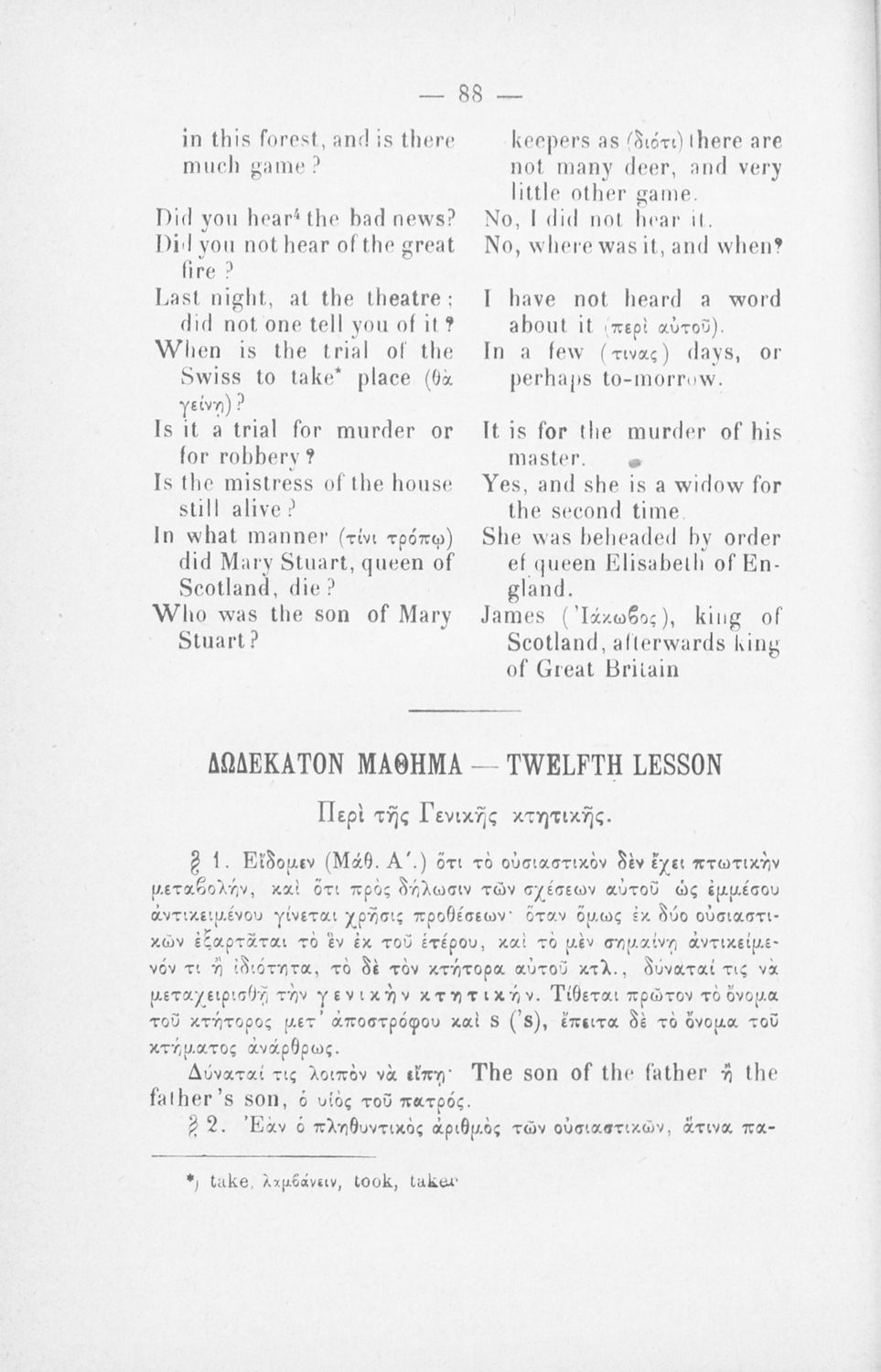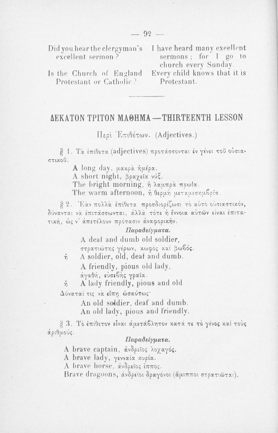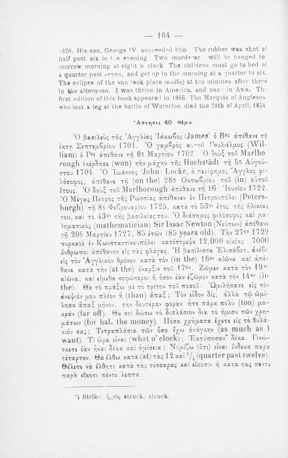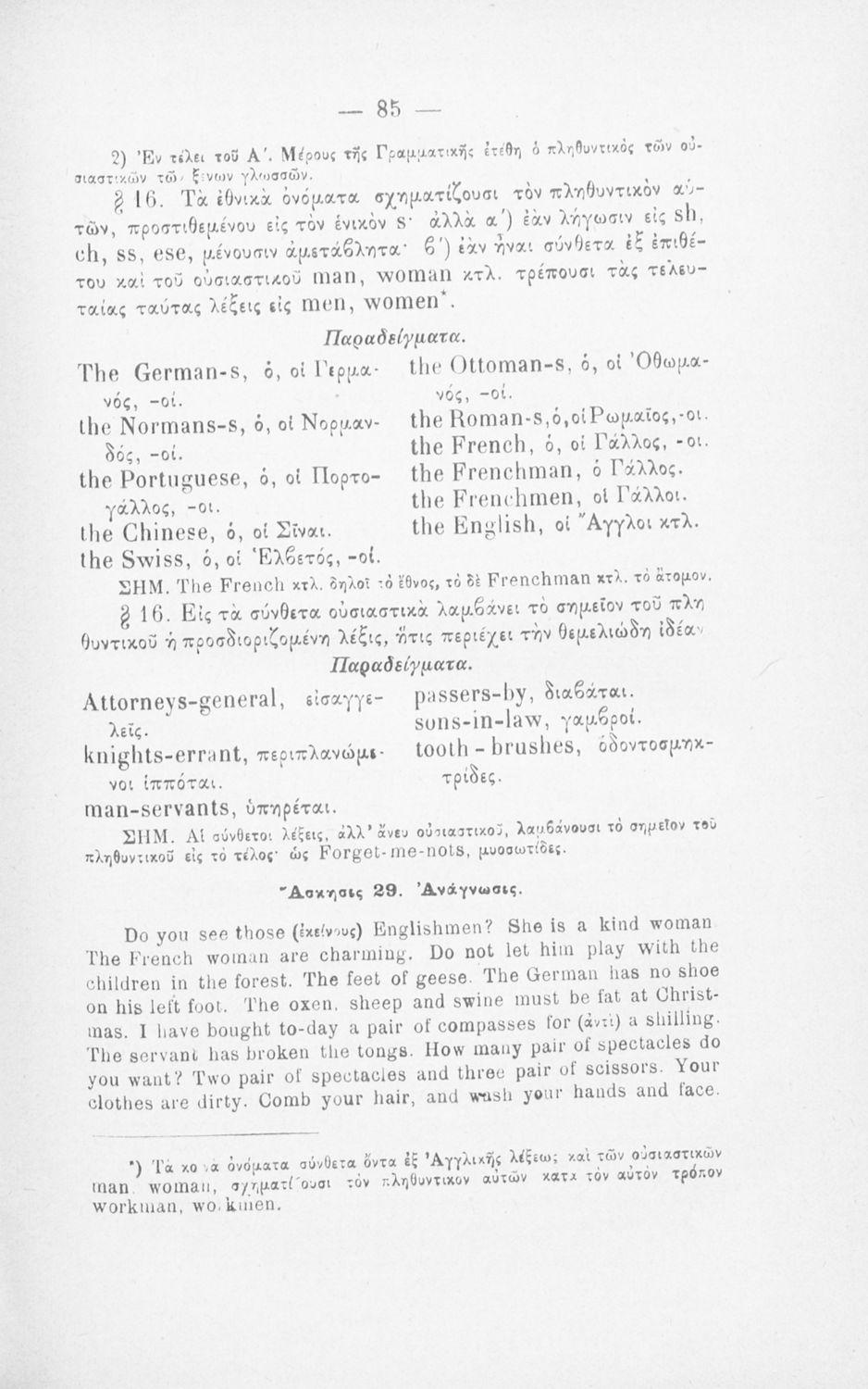 520 ## _aΠαιδαγωγικό βοήθημα για το μάθημα των Αγγλικών. Το εγχειρίδιο περιλαμβάνει τους βασικούς κανόνες εκμάθησης της αγγλικής γλώσσας (συντακτικού και γραμματικής) και χωρίζεται σε 2 κύρια μέρη. Το πρώτο μέρος ασχολείται με την προφορά των γραμμάτων, με τα άρθρα, τα επιρρήματα, τις αντωνυμίες κ.α. Το δεύτερο μέρος εξειδικεύει την ύλη του πρώτου μέρους σε επιμέρους και ειδικότερα ζητήματα και δίδει συγκεκριμένα παραδείγματα γραφής επιστολών και γραμμάτων αλληλογραφίας στην αγγλική γλώσσα. Το εγχειρίδιο ολοκληρώνεται με αγγλοελληνικό και ελληνοαγγλικό λεξιλόγιο.