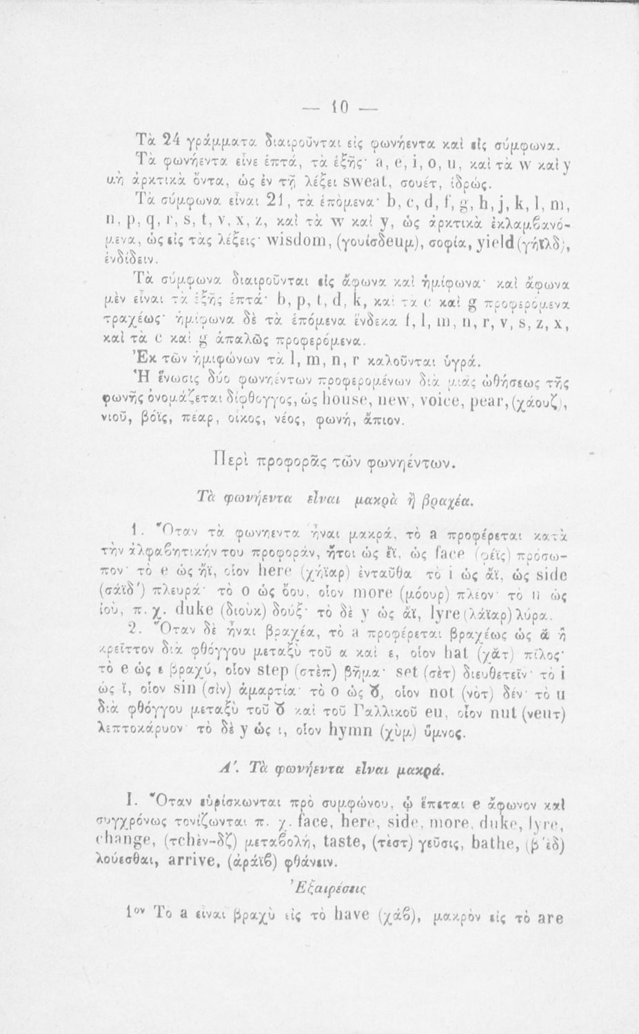 Παιδαγωγικό βοήθημα για το μάθημα των Αγγλικών. Το εγχειρίδιο περιλαμβάνει τους βασικούς κανόνες εκμάθησης της αγγλικής γλώσσας (συντακτικού και γραμματικής) και χωρίζεται σε 2 κύρια μέρη. Το πρώτο μέρος ασχολείται με την προφορά των γραμμάτων, με τα άρθρα, τα επιρρήματα, τις αντωνυμίες κ.α. Το δεύτερο μέρος εξειδικεύει την ύλη του πρώτου μέρους σε επιμέρους και ειδικότερα ζητήματα και δίδει συγκεκριμένα παραδείγματα γραφής επιστολών και γραμμάτων αλληλογραφίας στην αγγλική γλώσσα. Το εγχειρίδιο ολοκληρώνεται με αγγλοελληνικό και ελληνοαγγλικό λεξιλόγιο.