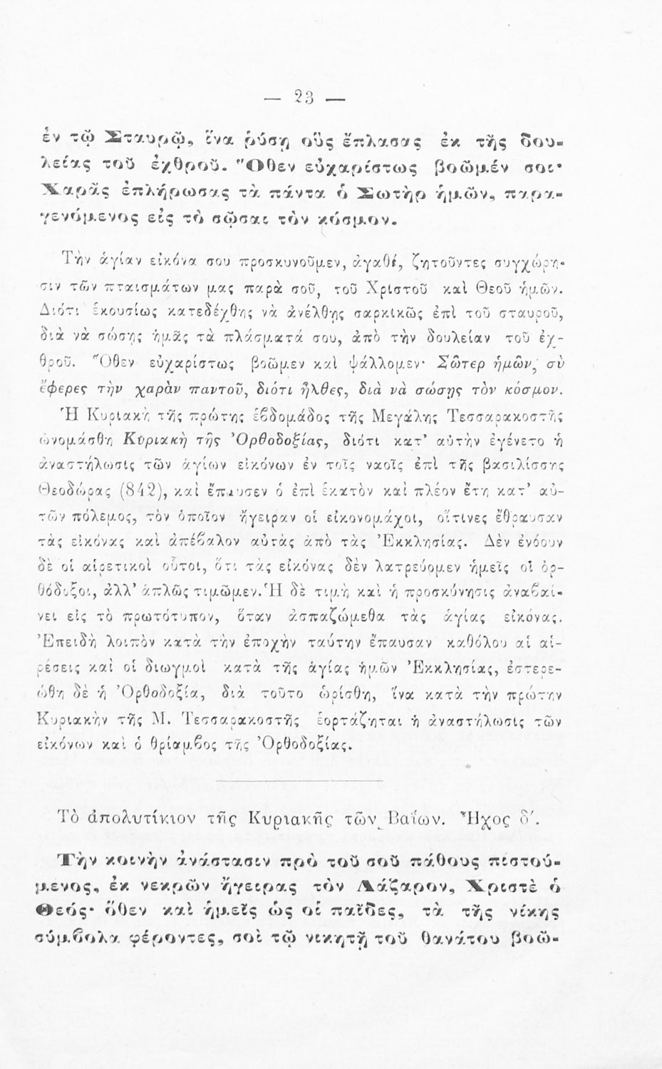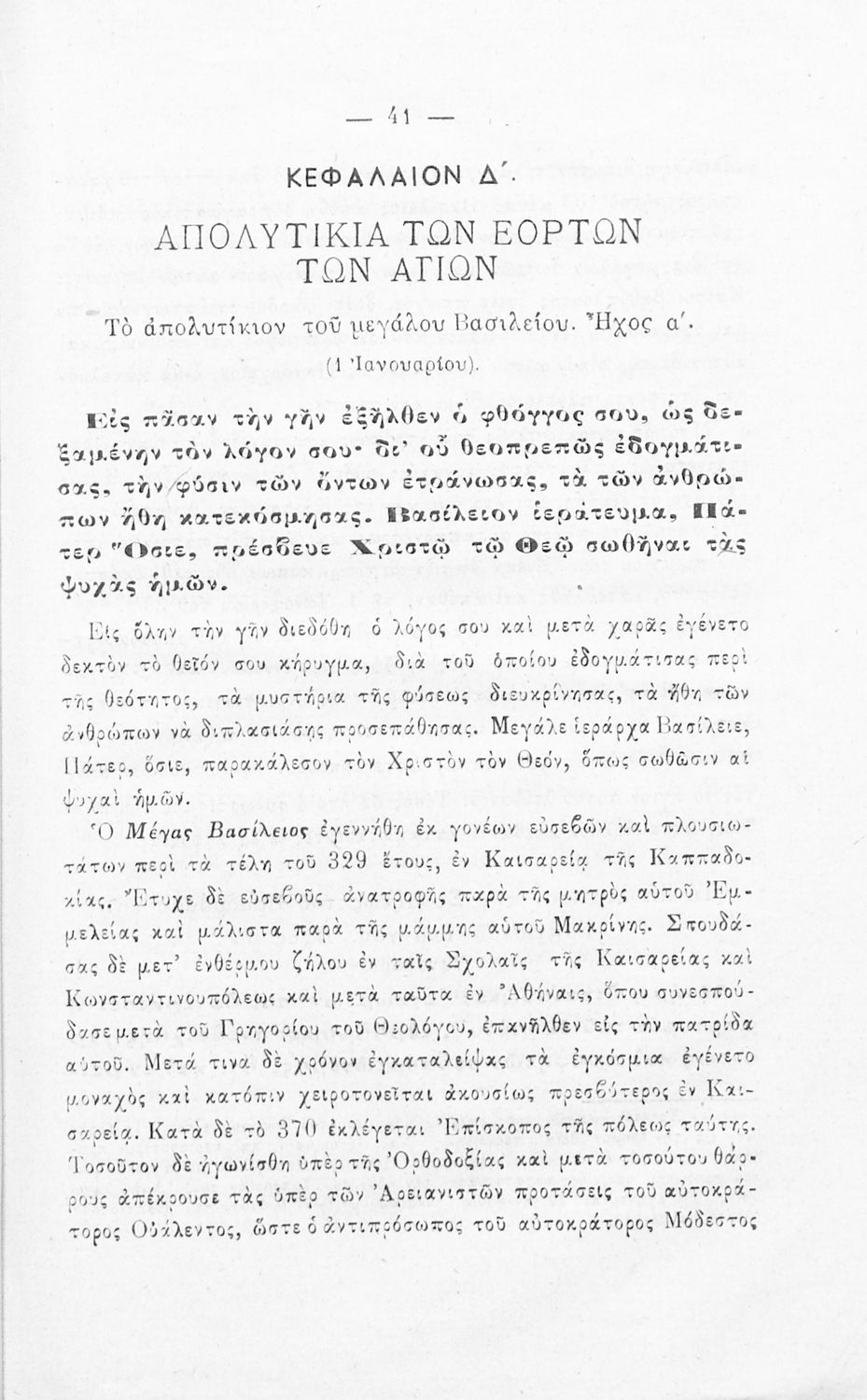 Σχολικό εγχειρίδιο Θρησκευτικών για τις Α΄, Β΄, Γ' Ελληνικού Σχολείου που περιλαμβάνει εισαγωγή στα απολυτίκια, απολυτίκια σε διάφορους ήχους και για διάφορες εορτές και ερμηνευτικές σημειώσεις