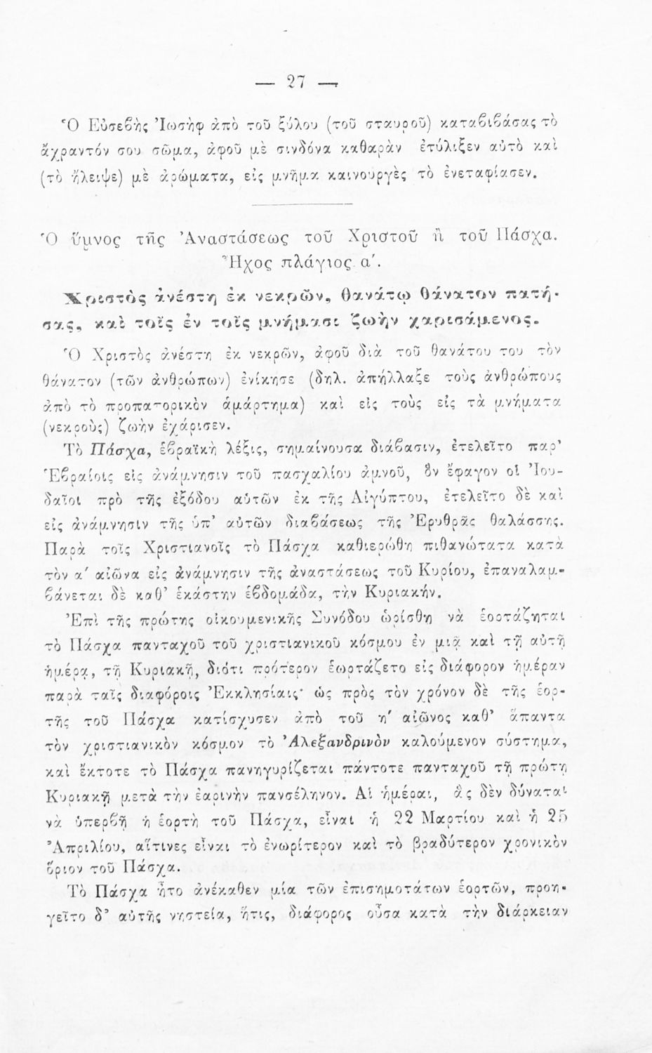 Σχολικό εγχειρίδιο Θρησκευτικών Α΄, Β΄, Γ' Ελληνικού Σχολείου που περιλαμβάνει εισαγωγή στα λειτουργικά άσματα, εξαποστειλάρια, απολυτίκια και ερμηνευτικές σημειώσεις.