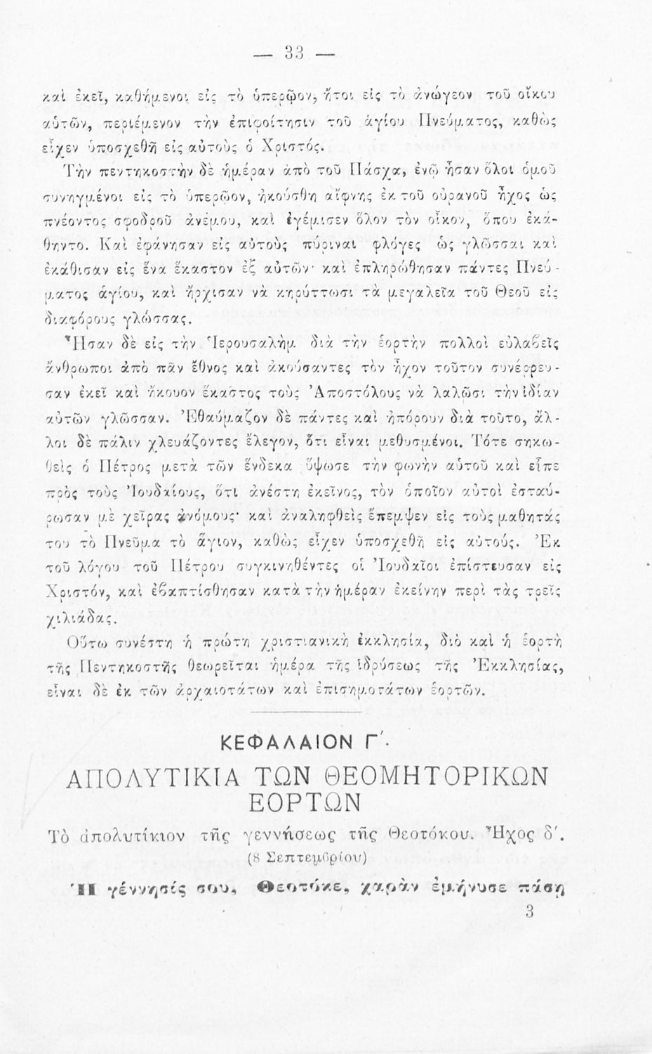 Τίτλος: Τα Απολυτίκια ήτοι συλλογή και εξήγησις των Απολυτικίων, της Οκτωήχου, των δεσποτικών και θεομητορικών εορτών και των εορτών των Αγίων διά την Α΄, Β΄ και Γ΄ τάξιν των Ελληνικών Σχολείων και Παρθεναγωγείων