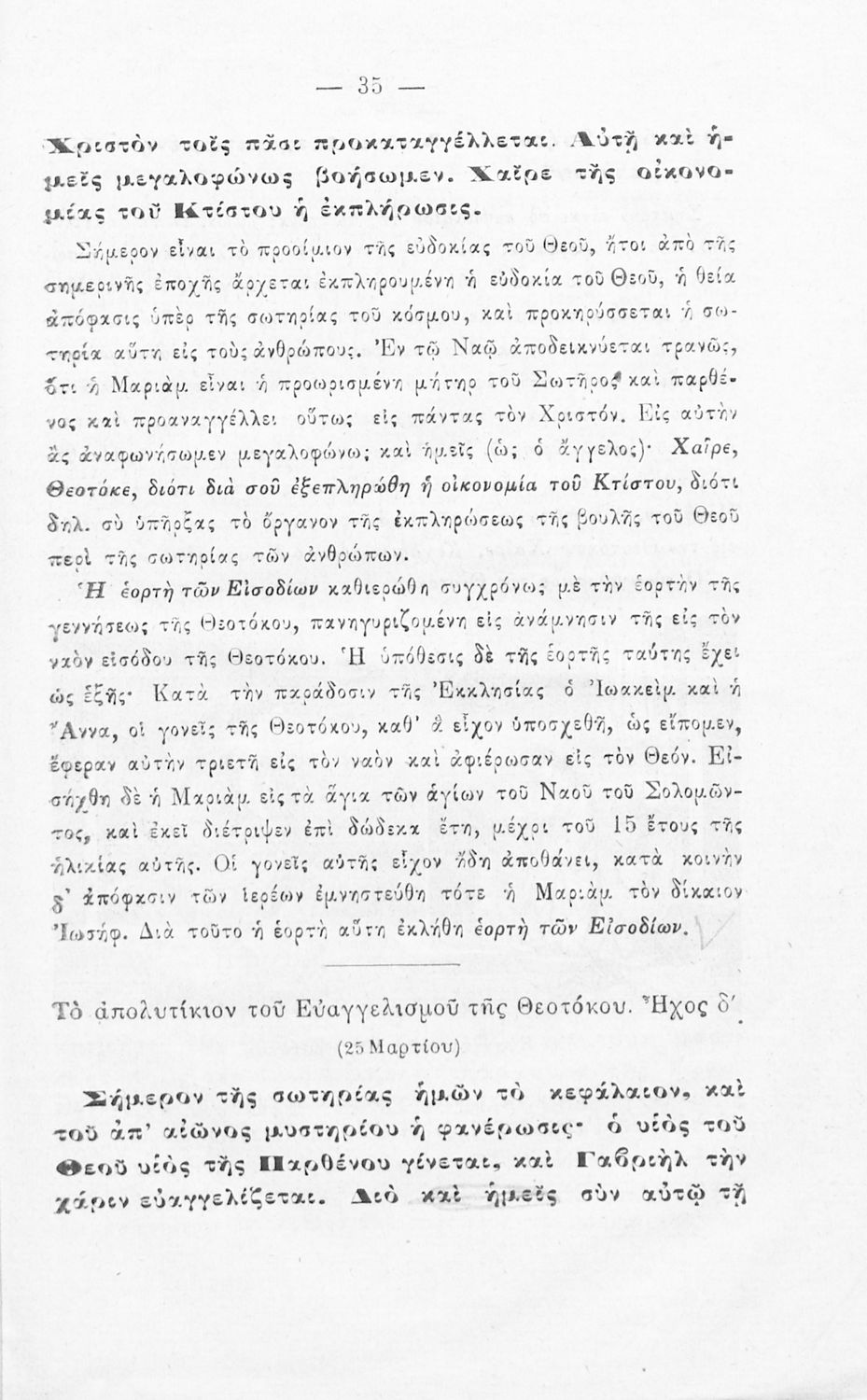 Σχολικό εγχειρίδιο Θρησκευτικών για τις τρεις τάξεις των Ελληνικών Σχολείων. Πρόκειται για βιβλίο που περιέχει συλλογή και εξήγηση από απολυτίκια των δεσποτικών και θεομητορικών εορτών.