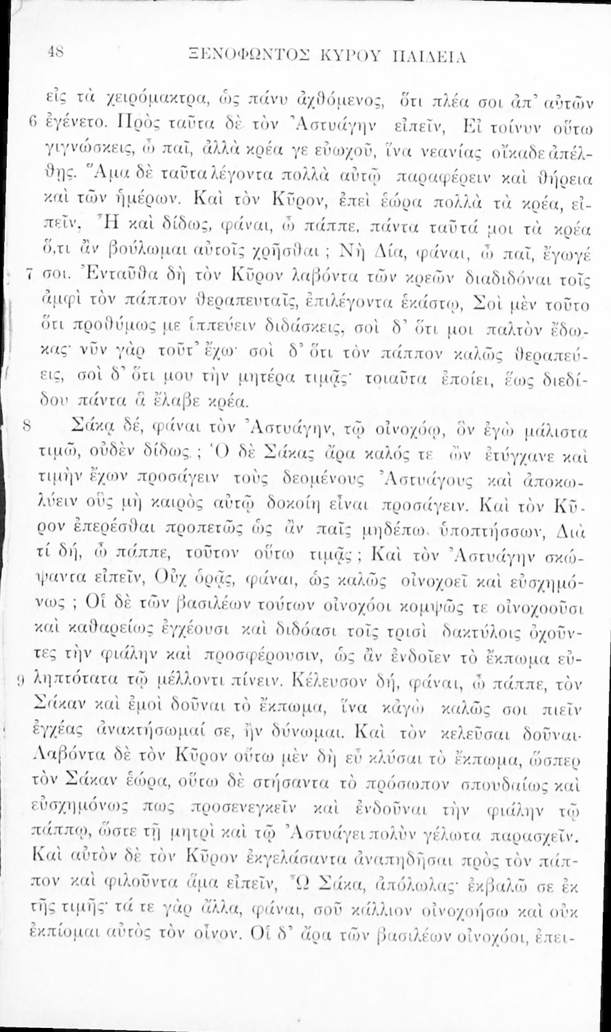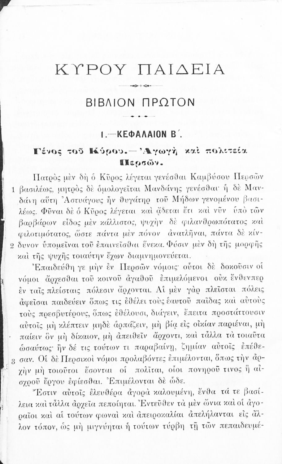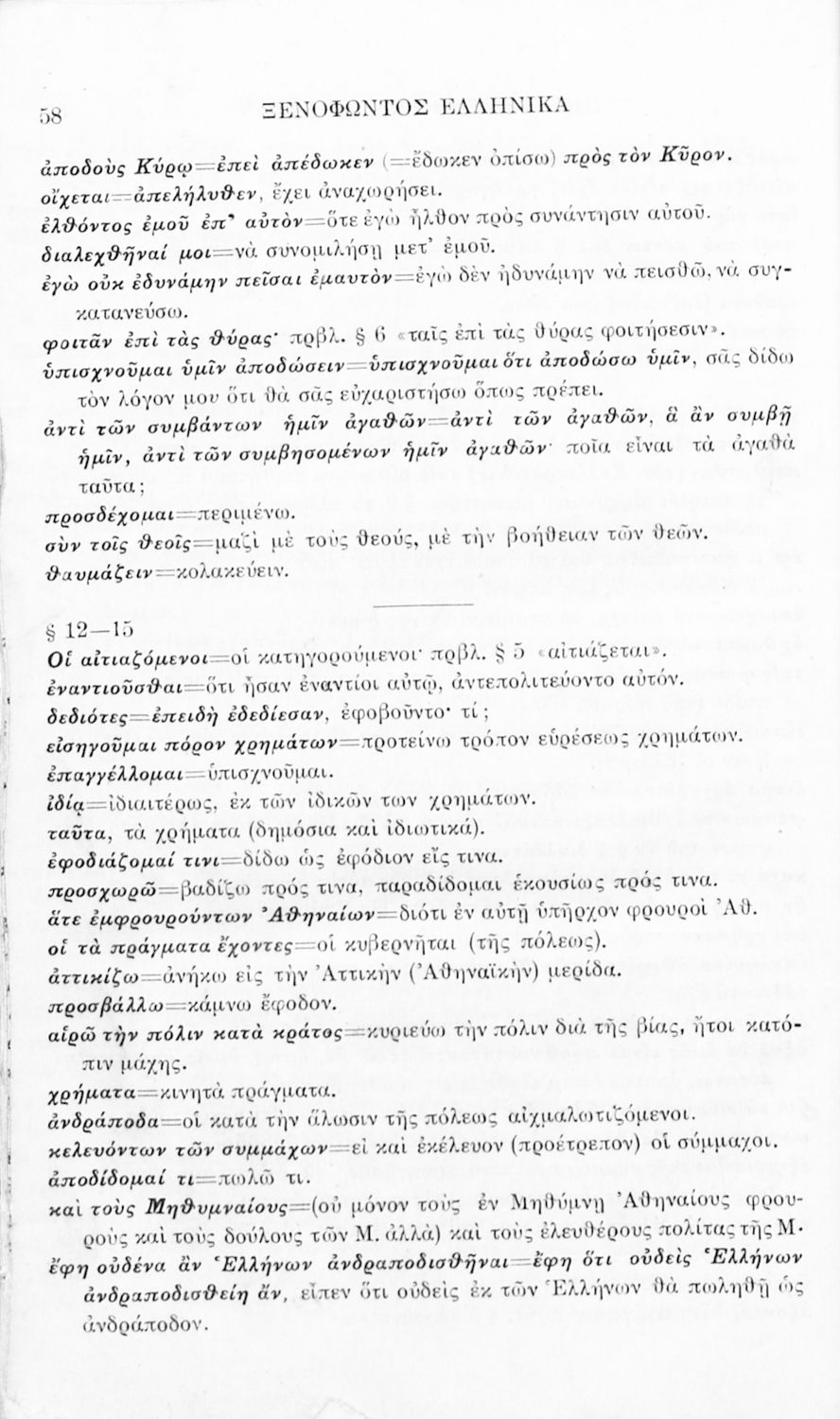 Σχολικό εγχειρίδιο Αρχαίων Ελληνικών για τα Ελληνικά Σχολεία και Παρθεναγωγεία που περιλαμβάνει αποσπάσματα από τα έργα του Ξενοφώντα Ελληνικά και Κύρου Παιδεία και λεξικολογικές παρατηρήσεις.