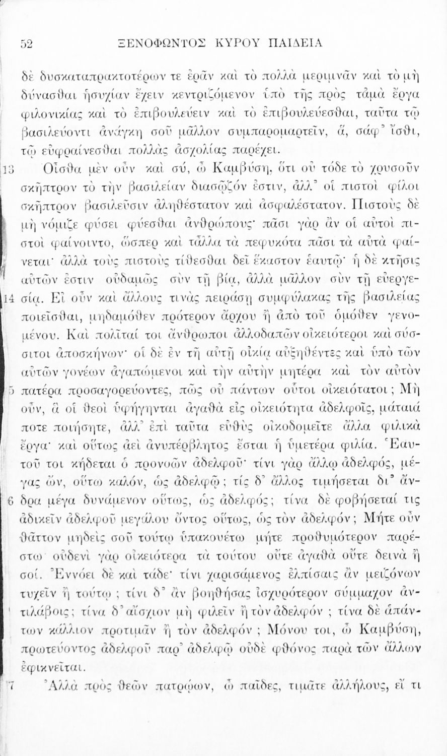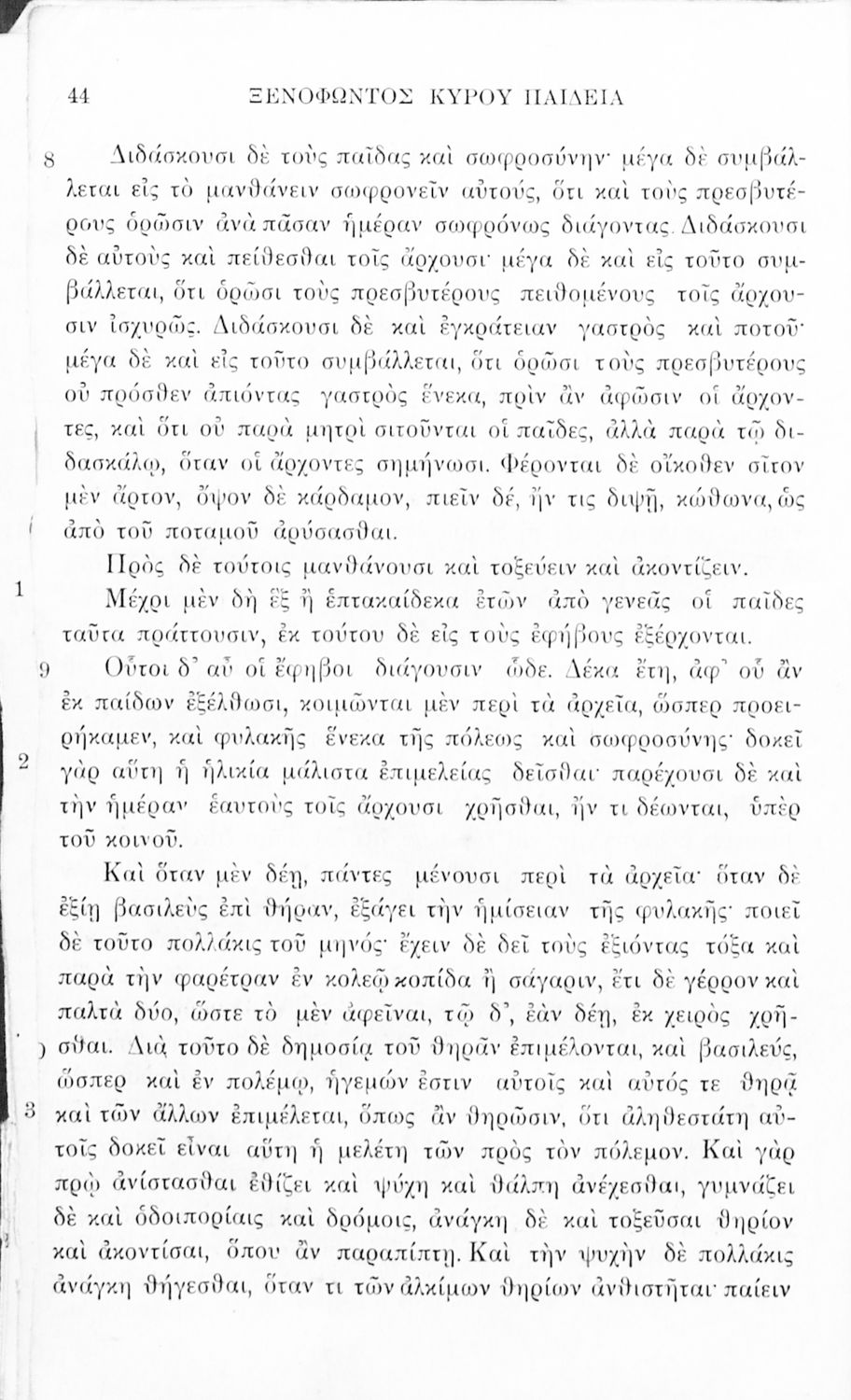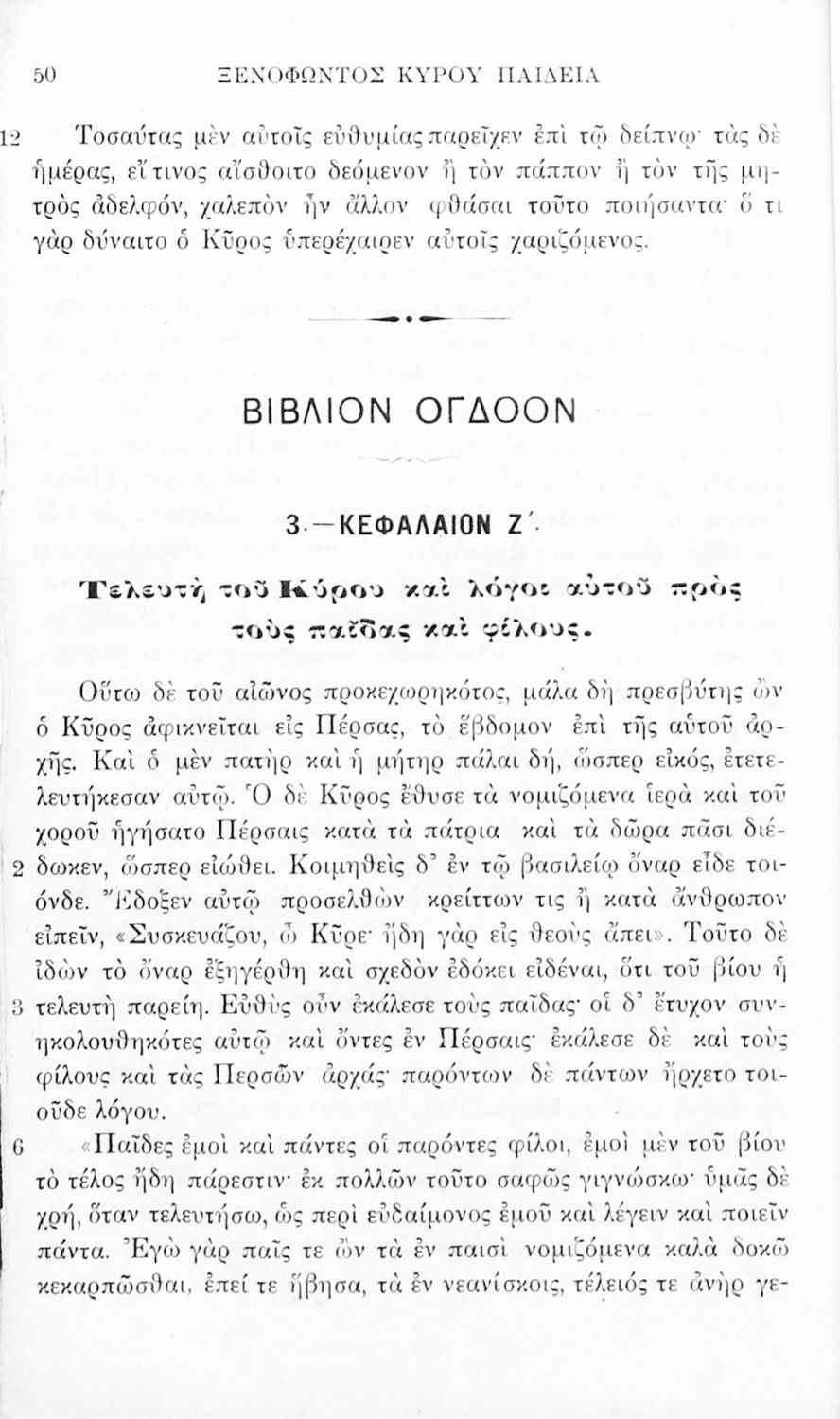 Σχολικό εγχειρίδιο Αρχαίων Ελληνικών για τα Ελληνικά Σχολεία και Παρθεναγωγεία που περιλαμβάνει αποσπάσματα από τα έργα του Ξενοφώντα Ελληνικά και Κύρου Παιδεία και λεξικολογικές παρατηρήσεις.