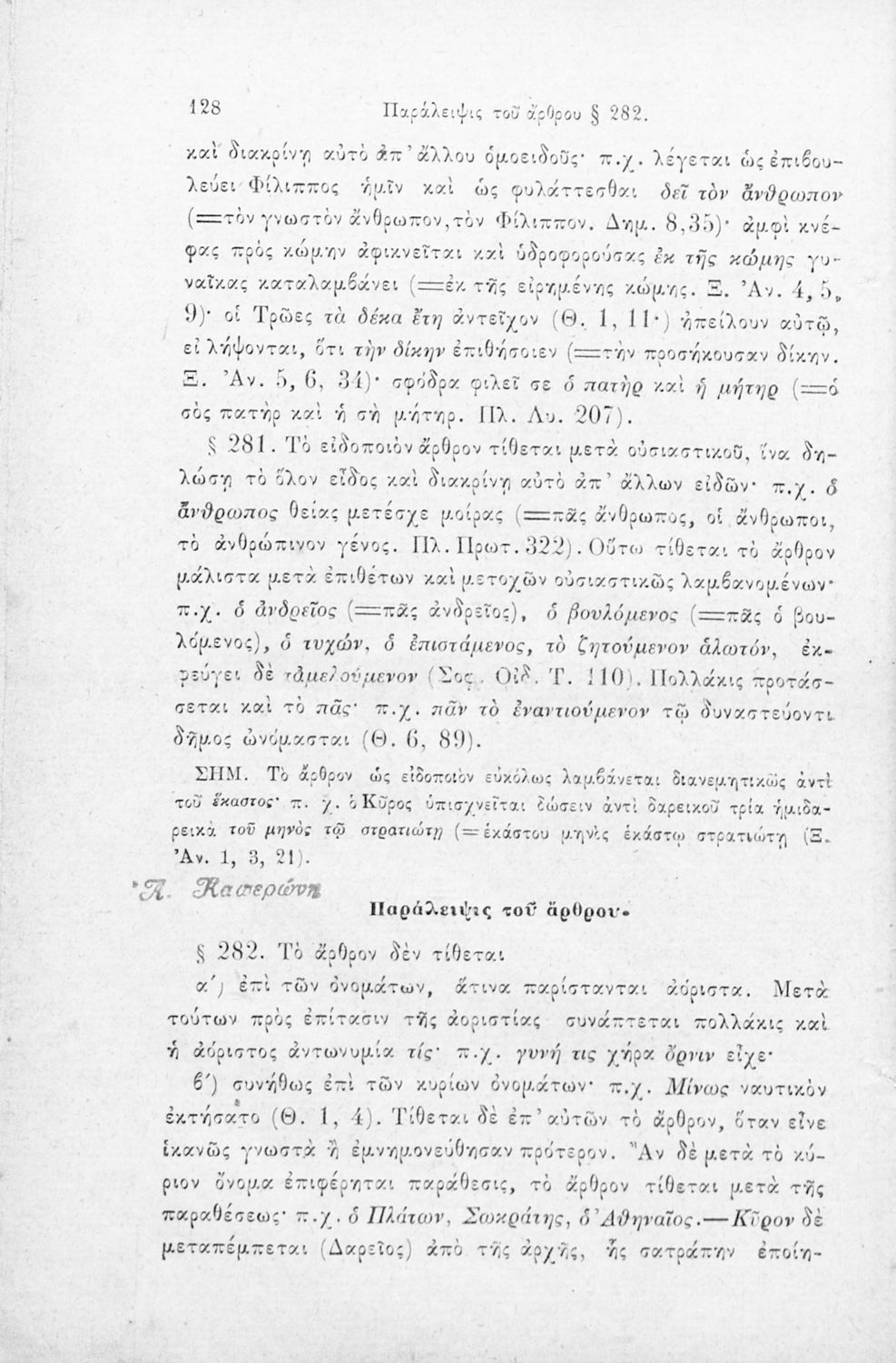 Σχολικό εγχειρίδιο Αρχαίων Ελληνικών για τα Ελληνικά Σχολεία, Παρθεναγωγεία και Γυμνάσια που περιέχει τους κανόνες γραμματικής και είναι χωρισμένο σε φθογγολογικό, τυπολογικό και ετυμολογικό μέρος.