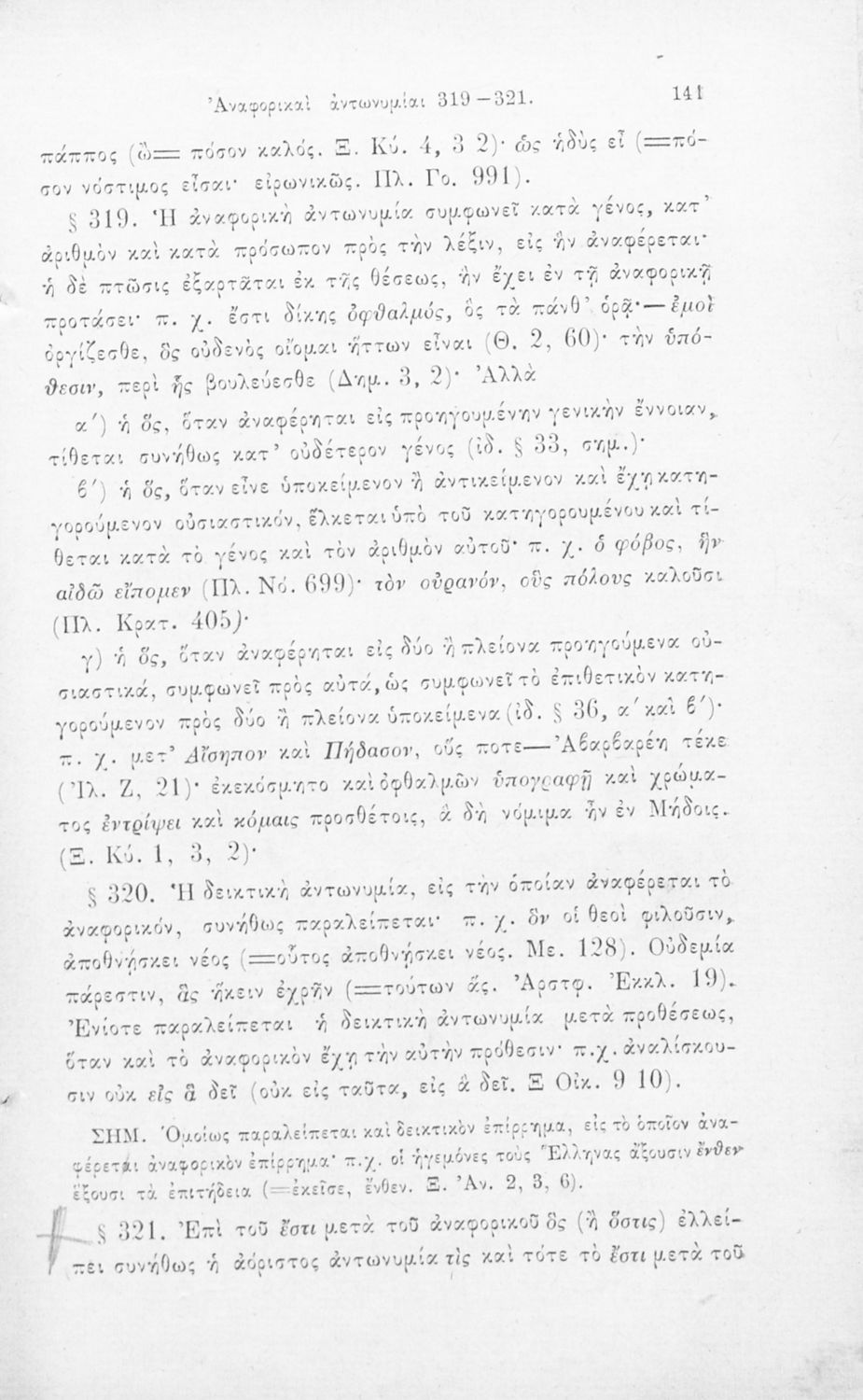 Σχολικό εγχειρίδιο Αρχαίων Ελληνικών για τα Ελληνικά Σχολεία και τα Ανώτερα Παρθεναγωγεία που εξετάζει τα μέρη του λόγου και την σύνταξή τους.