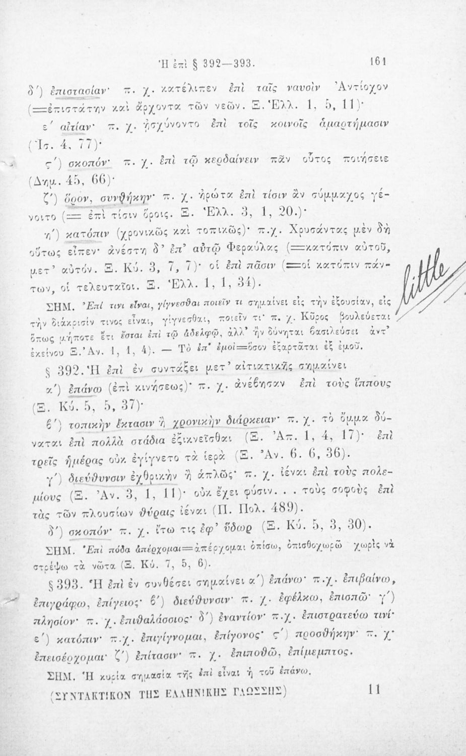 Μαθητικό βοήθημα Αρχαίων Ελληνικών για τα Ελληνικά Σχολεία, Παρθεναγωγεία και Γυμνάσια που περιλαμβάνει γραμματική της αρχαίας ελληνικής και κατάλογο ανωμάλων ρημάτων.