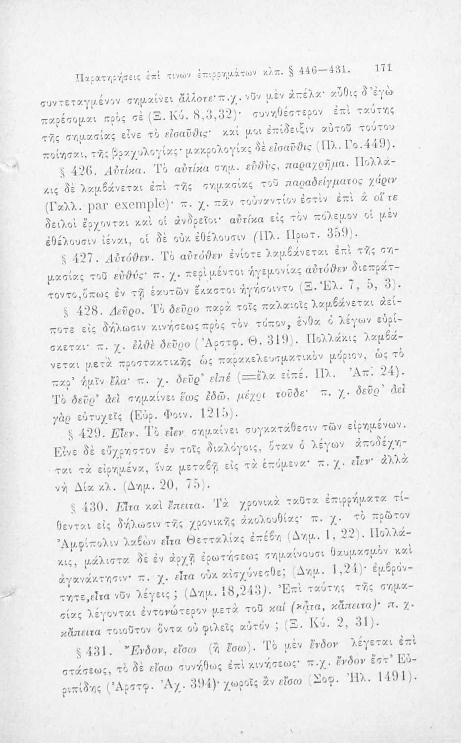 Σχολικό εγχειρίδιο Αρχαίων Ελληνικών για τα Ελληνικά Σχολεία και τα Ανώτερα Παρθεναγωγεία που εξετάζει τα μέρη του λόγου και την σύνταξή τους.