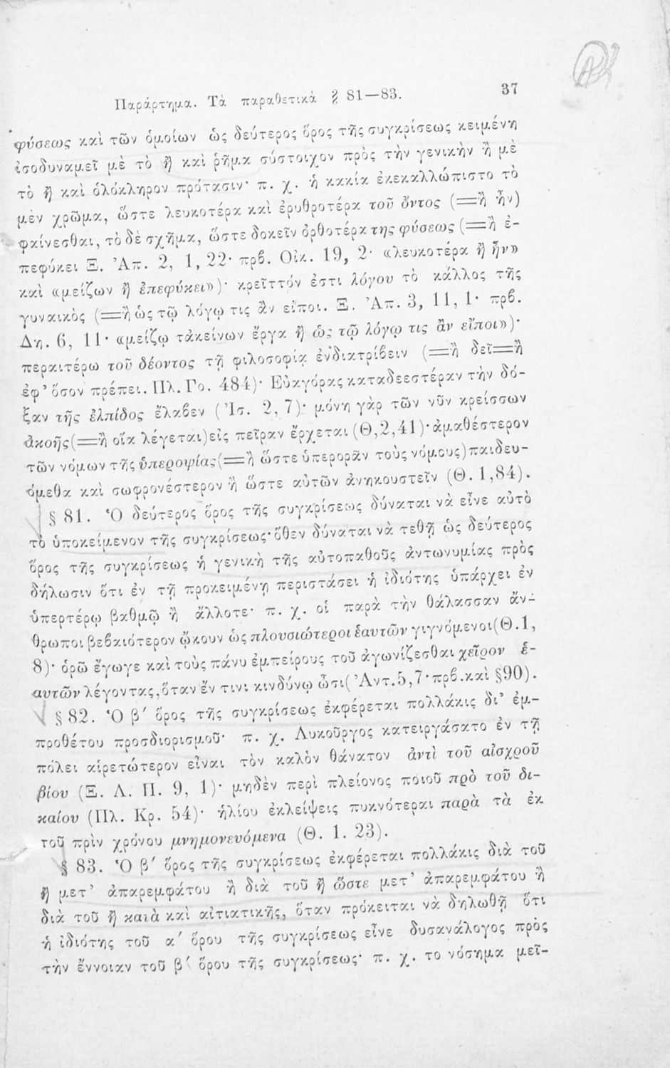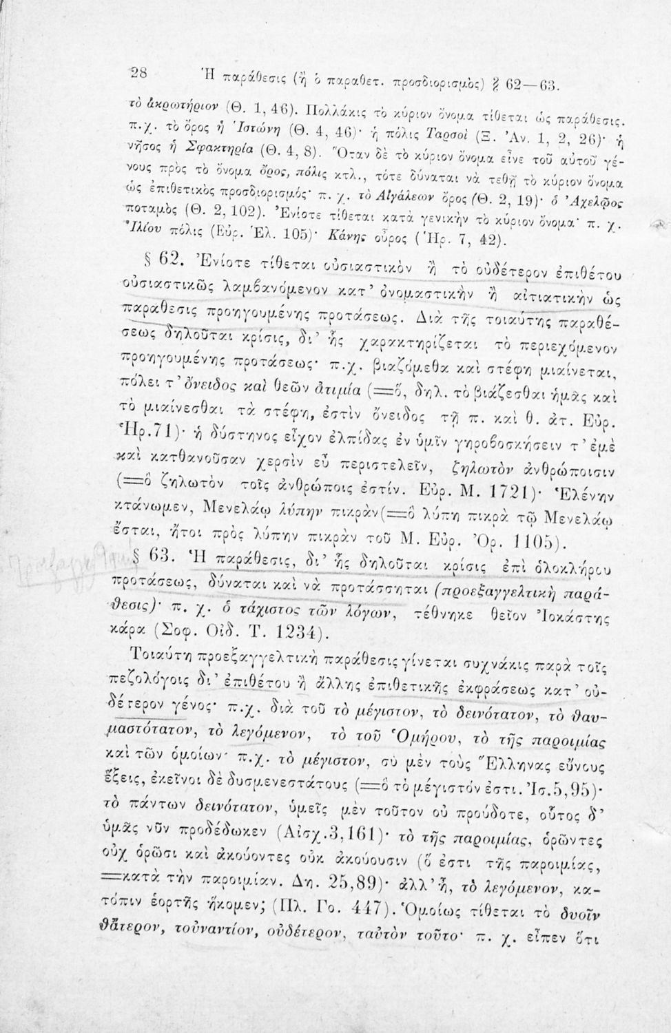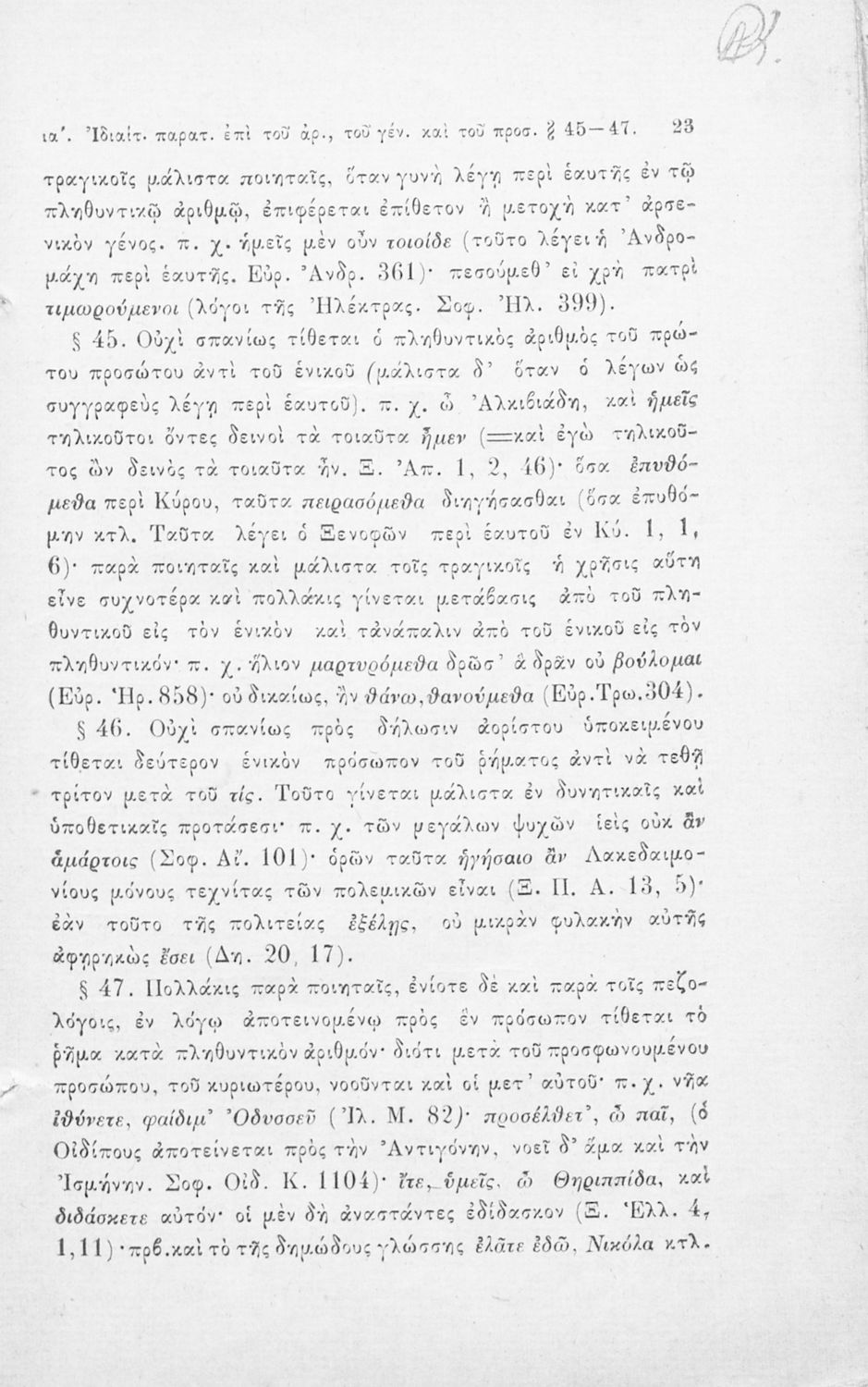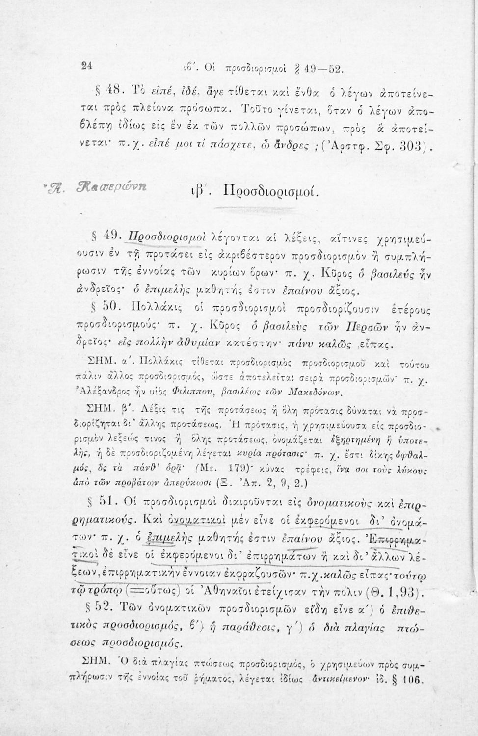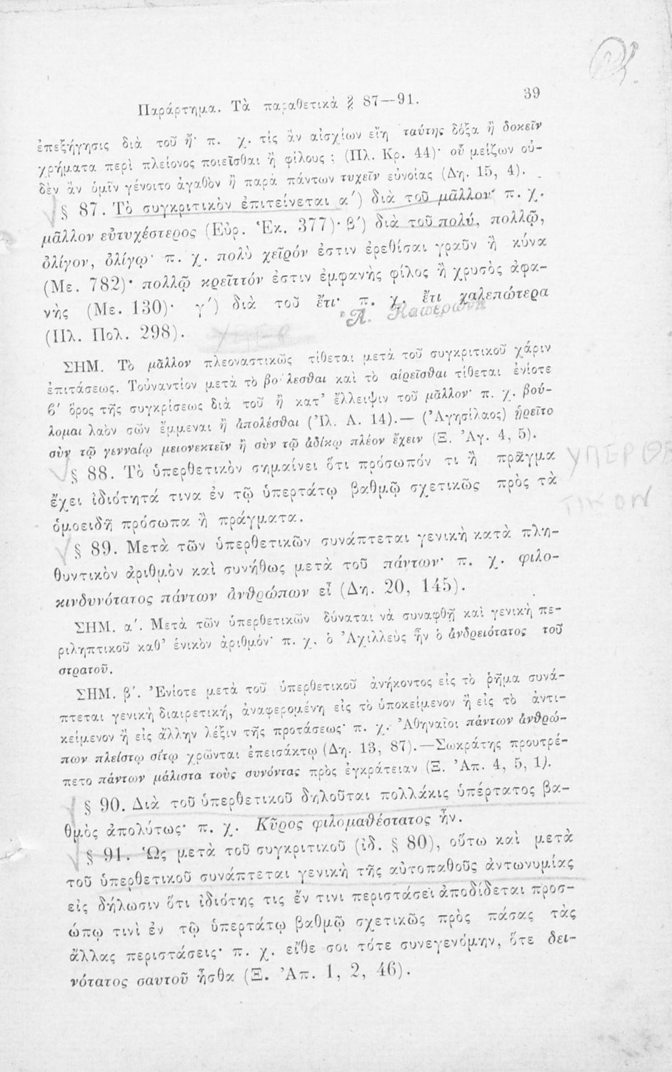 Σχολικό εγχειρίδιο Αρχαίων Ελληνικών για τα Ελληνικά Σχολεία και τα Ανώτερα Παρθεναγωγεία που εξετάζει τα μέρη του λόγου και την σύνταξή τους.