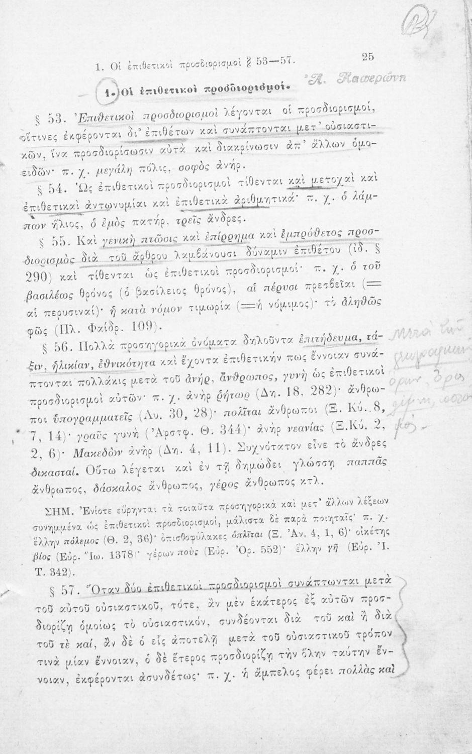 Σχολικό εγχειρίδιο Αρχαίων Ελληνικών για τα Ελληνικά Σχολεία, Παρθεναγωγεία και Γυμνάσια που περιέχει τους κανόνες γραμματικής και είναι χωρισμένο σε φθογγολογικό, τυπολογικό και ετυμολογικό μέρος.