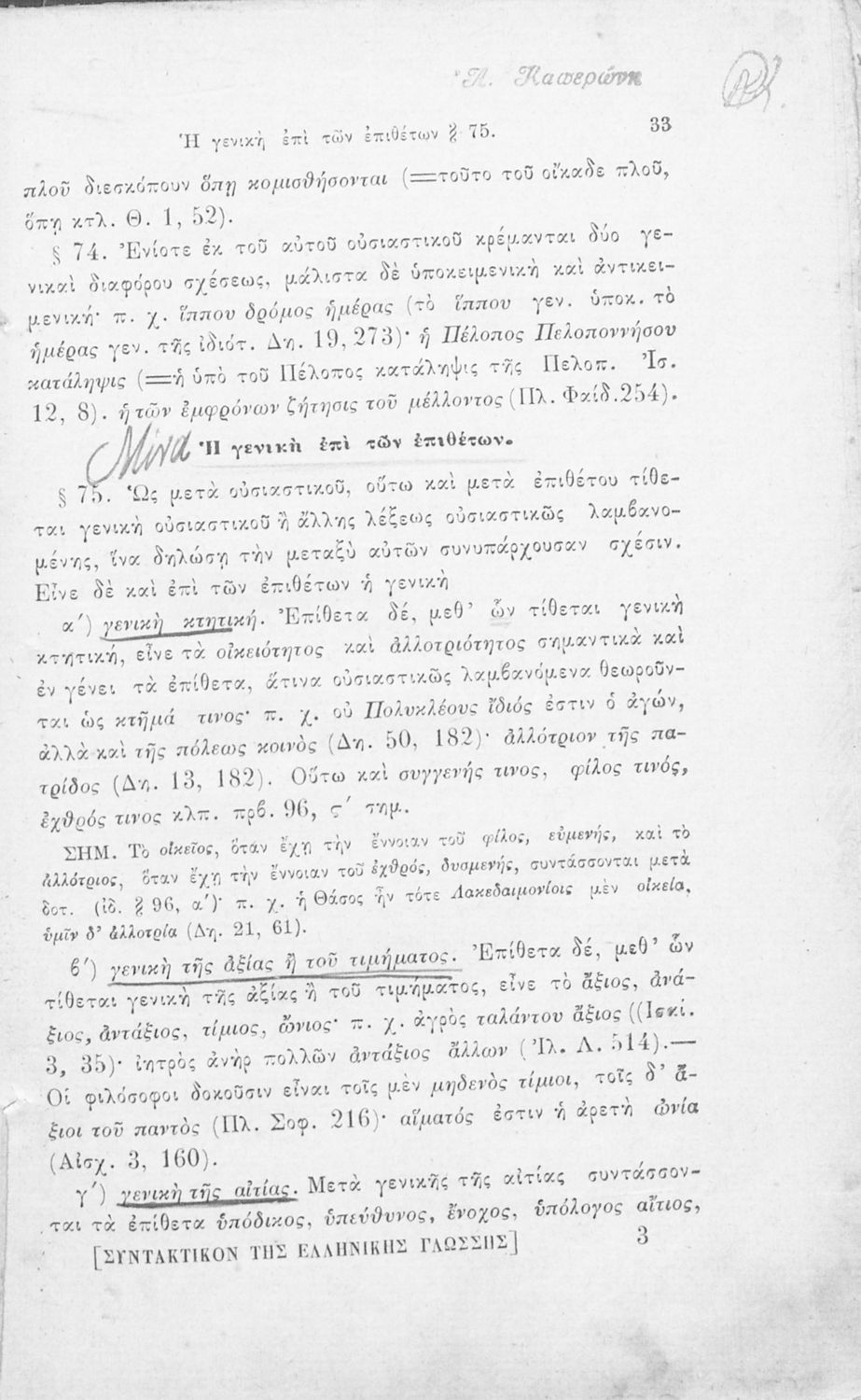 Συντακτικόν της ελληνικής γλώσσης μάλιστα δε της αττικής διαλέκτου προς χρήσιν των Γυμνασίων